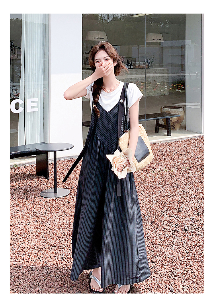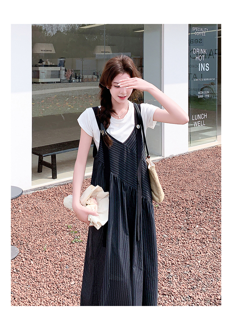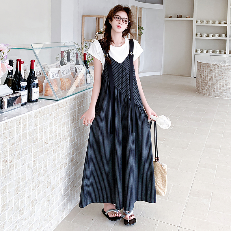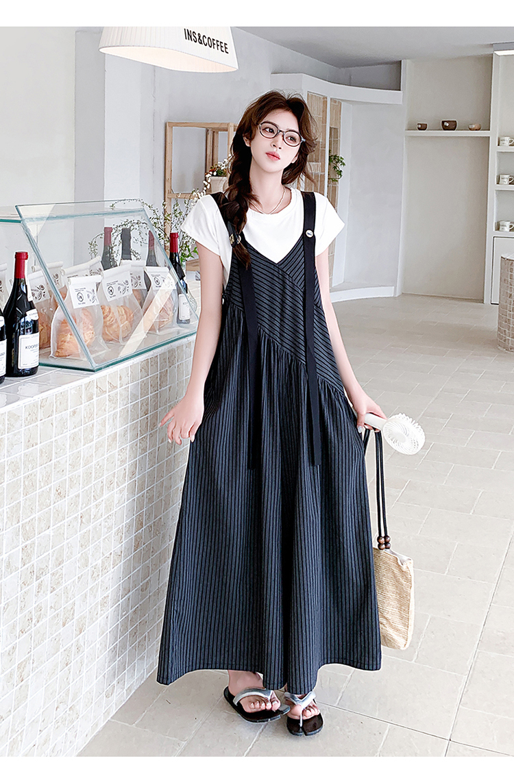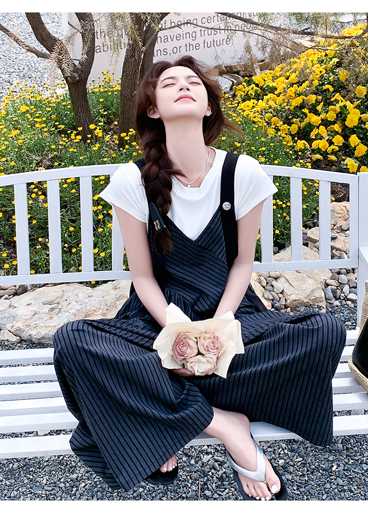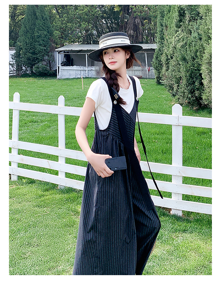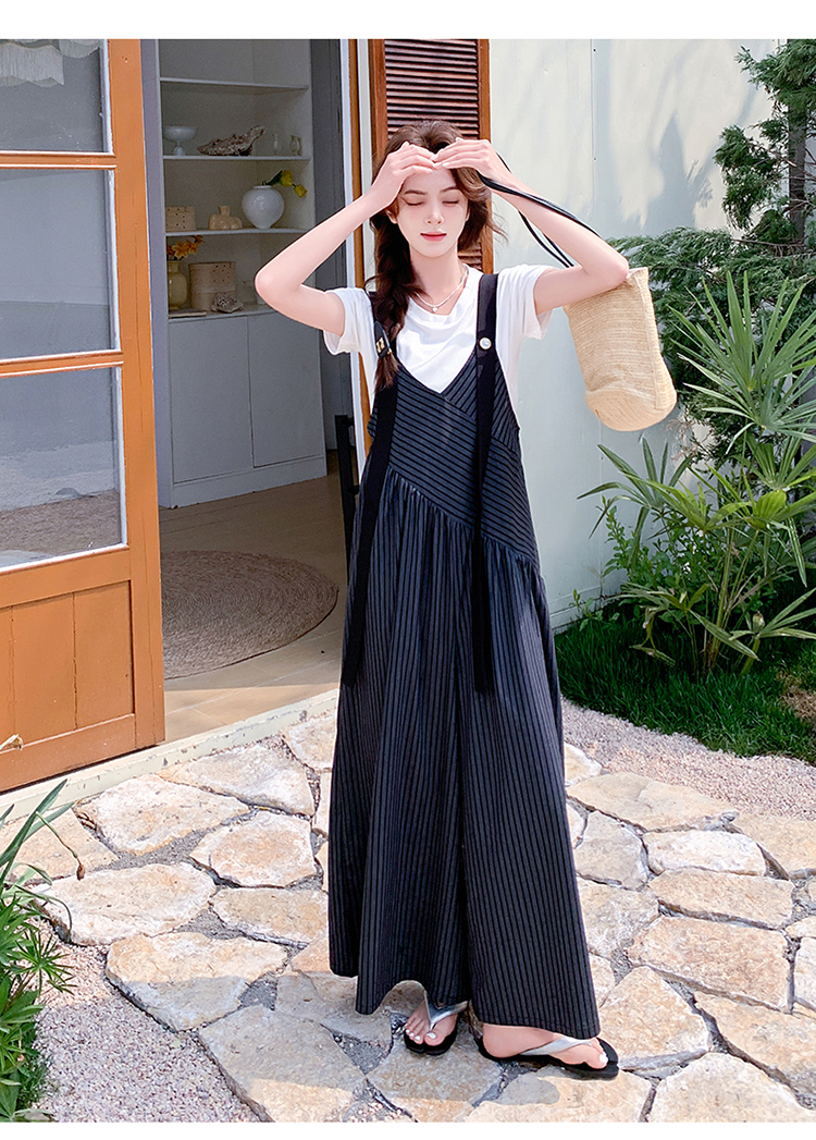 獨家訂製│個性休閒風豎條紋大闊腿吊帶褲(07A1503)