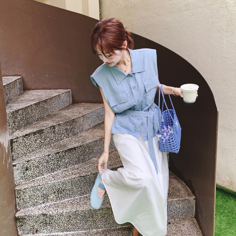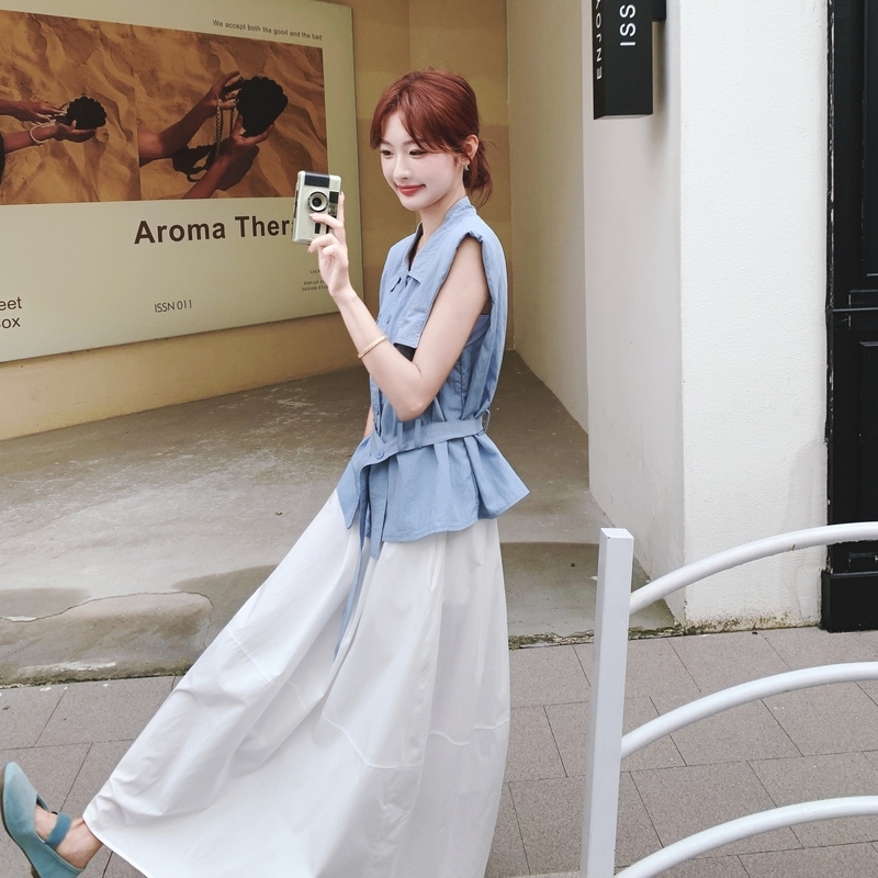 獨家訂製│2件式 翻領繫帶上衣+A字裙(07A1513)