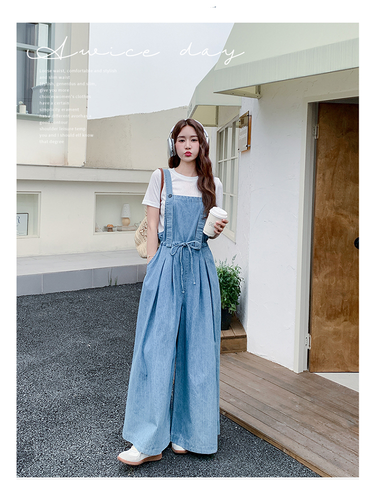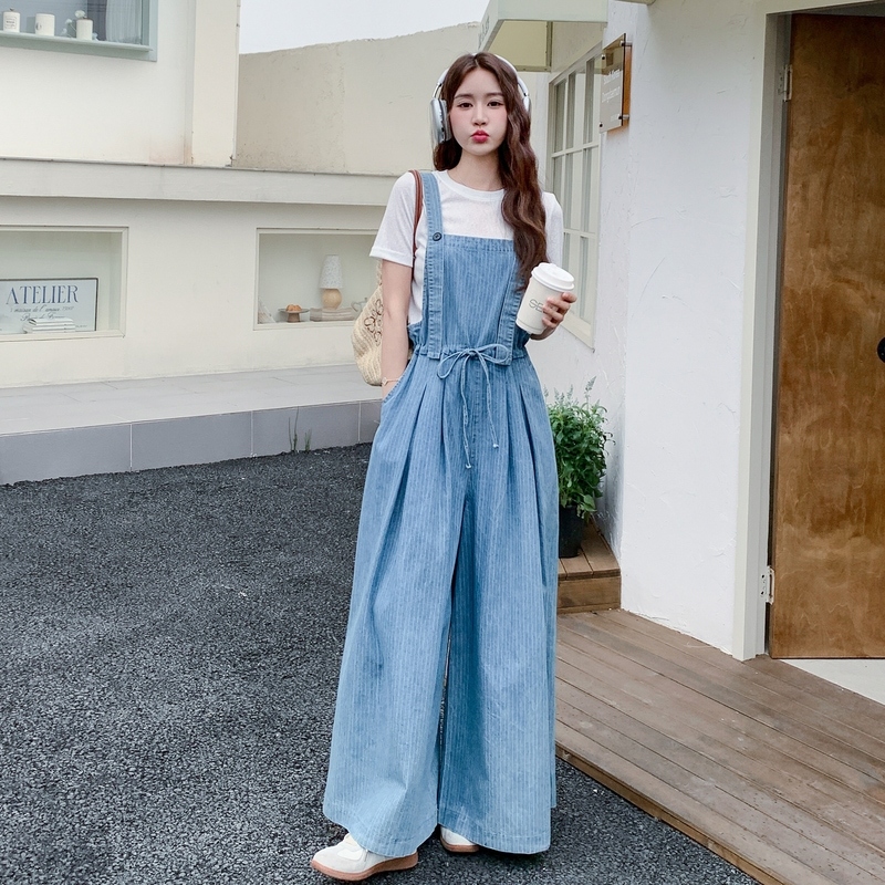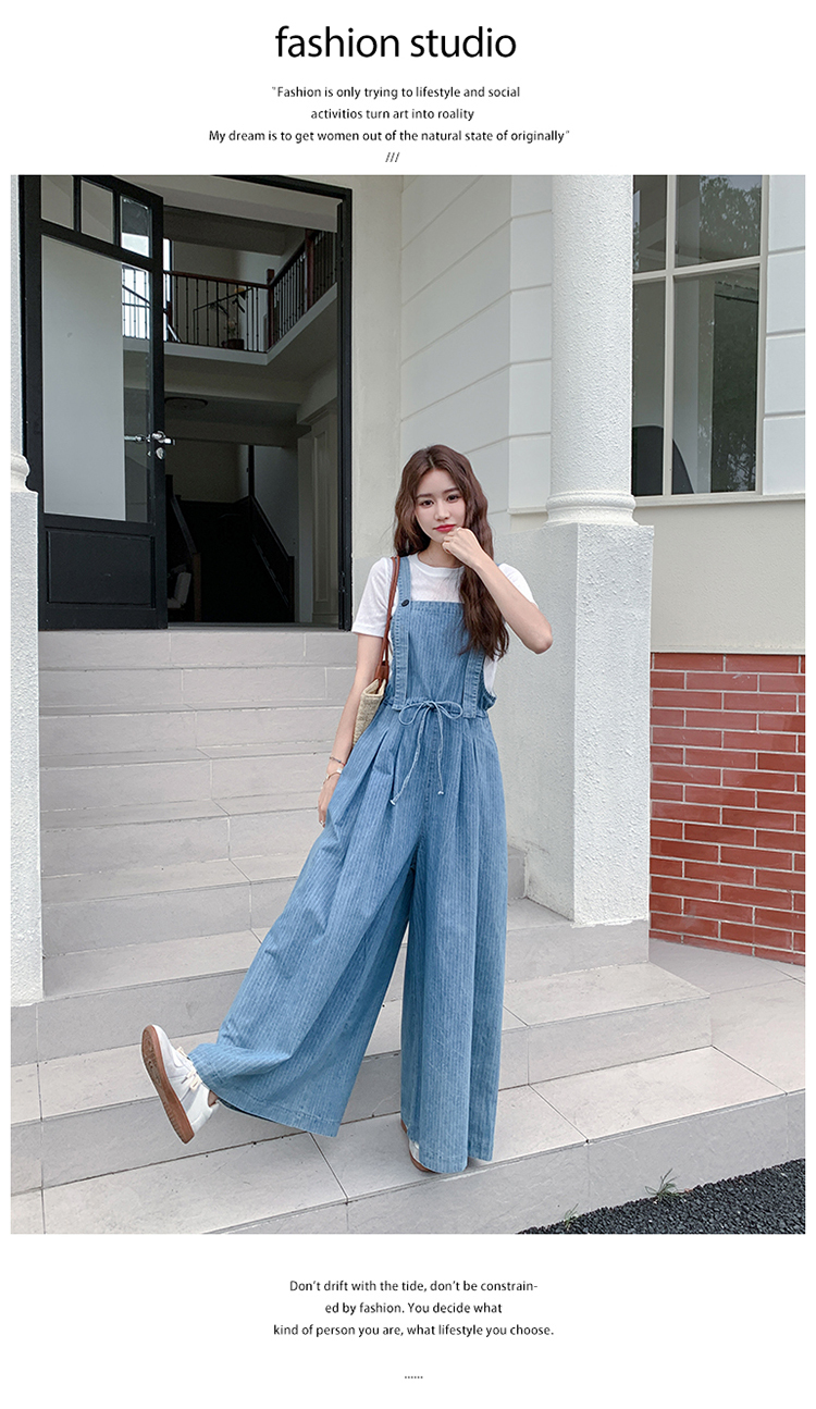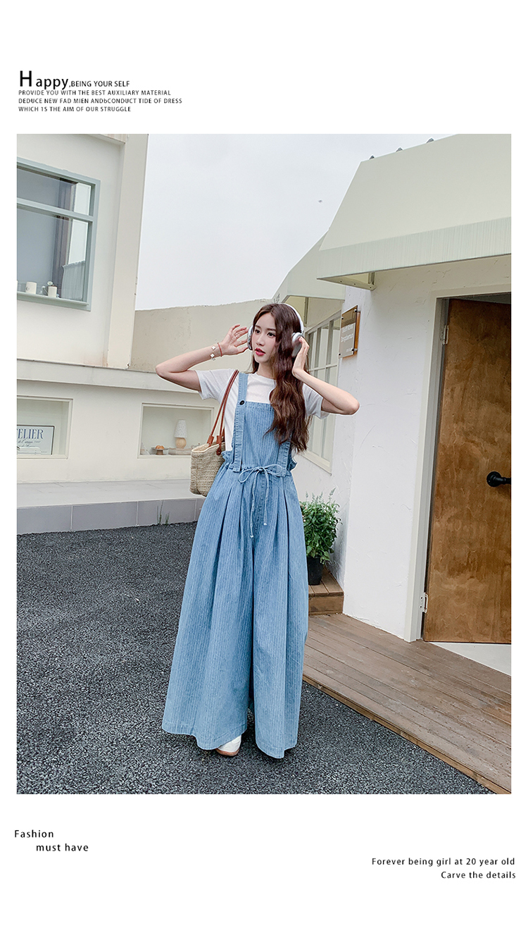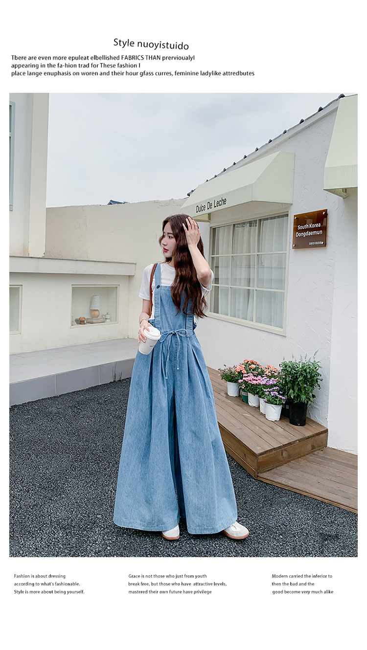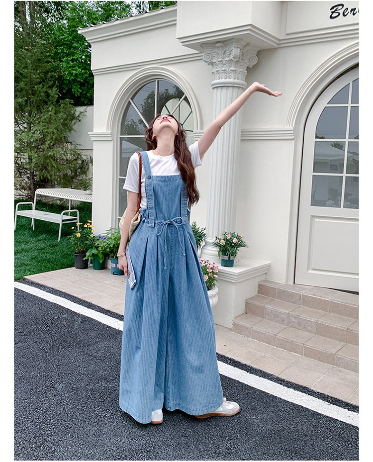 獨家訂製│舒適休閒感收腰抽繩大闊腿吊帶褲(07A1519)