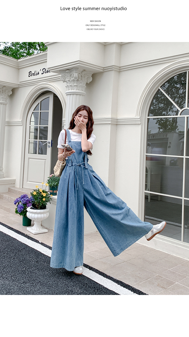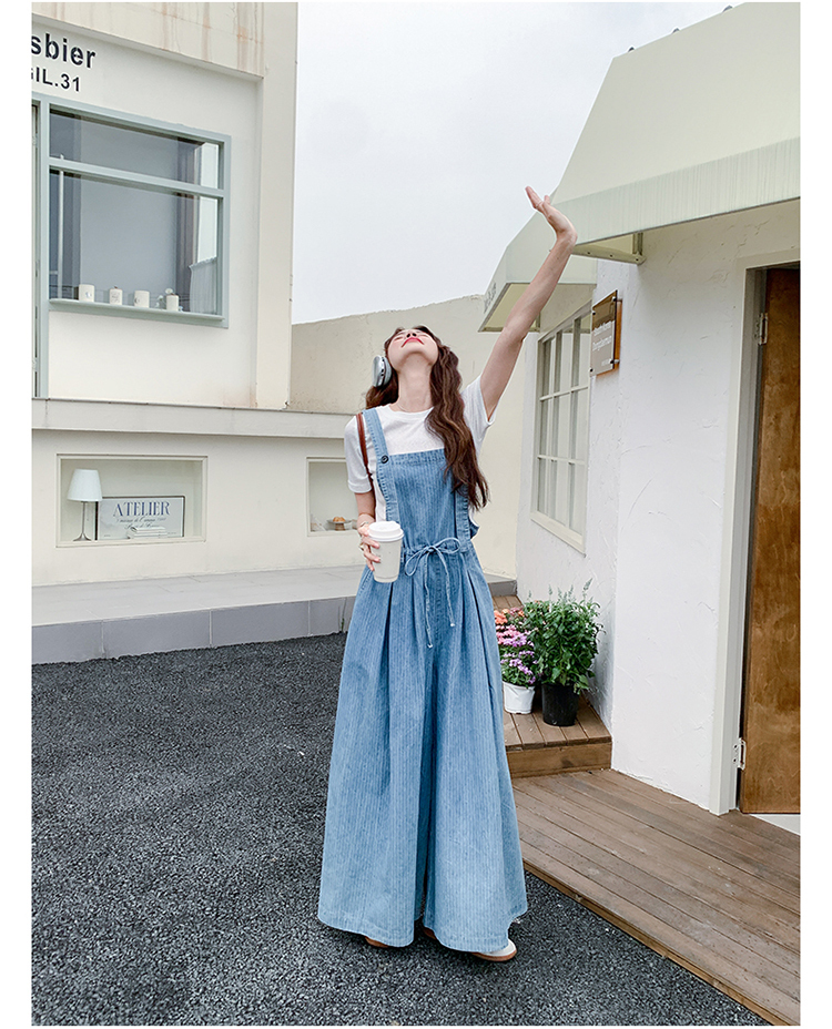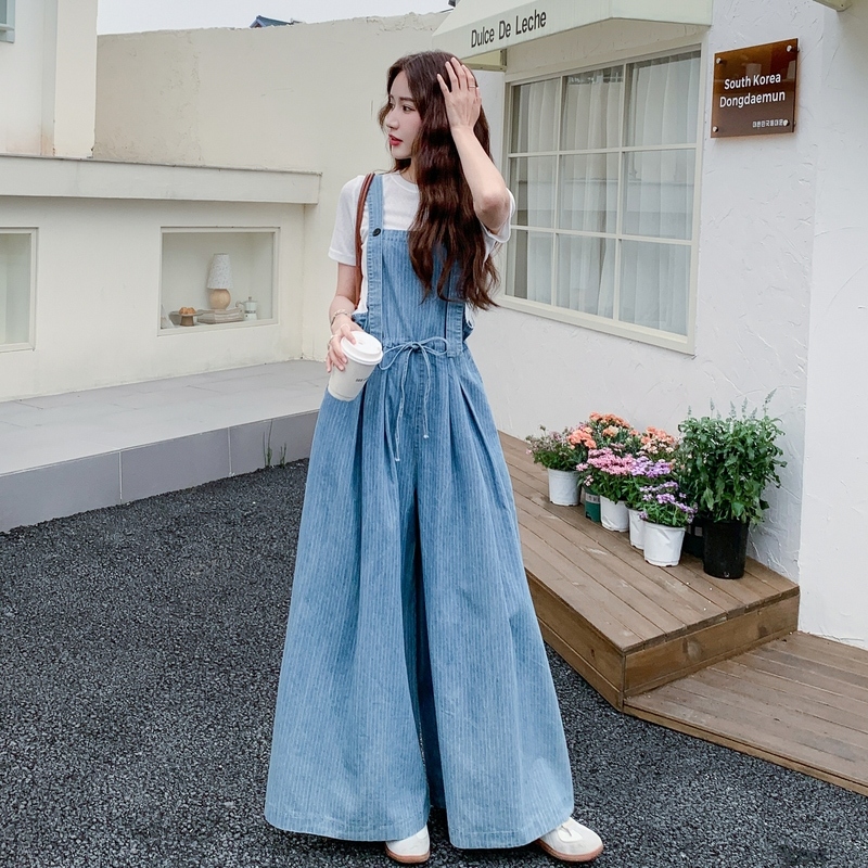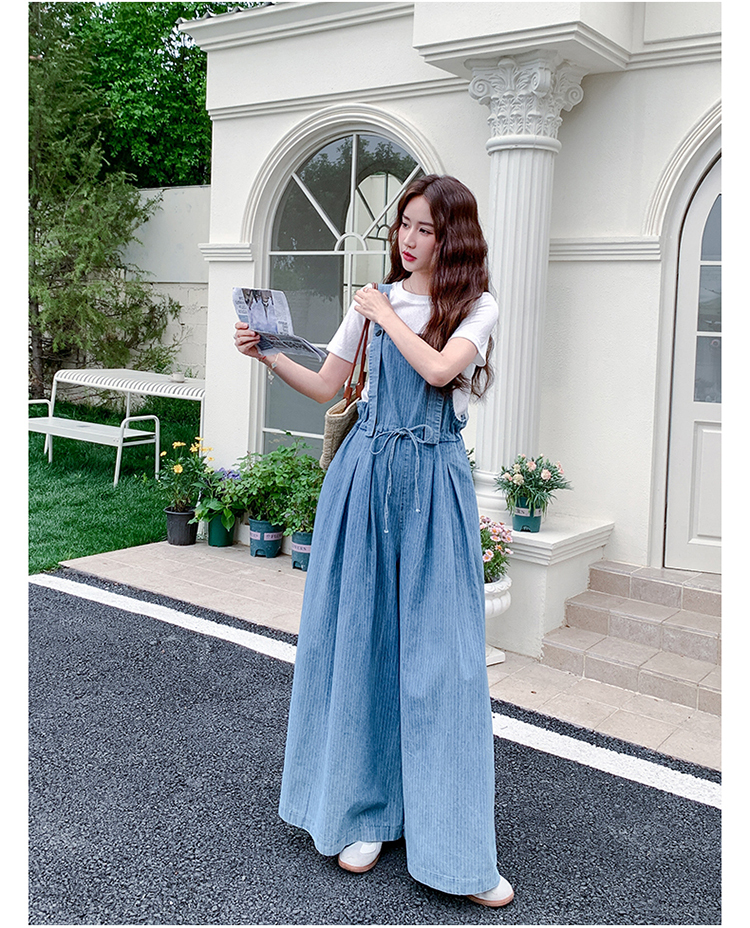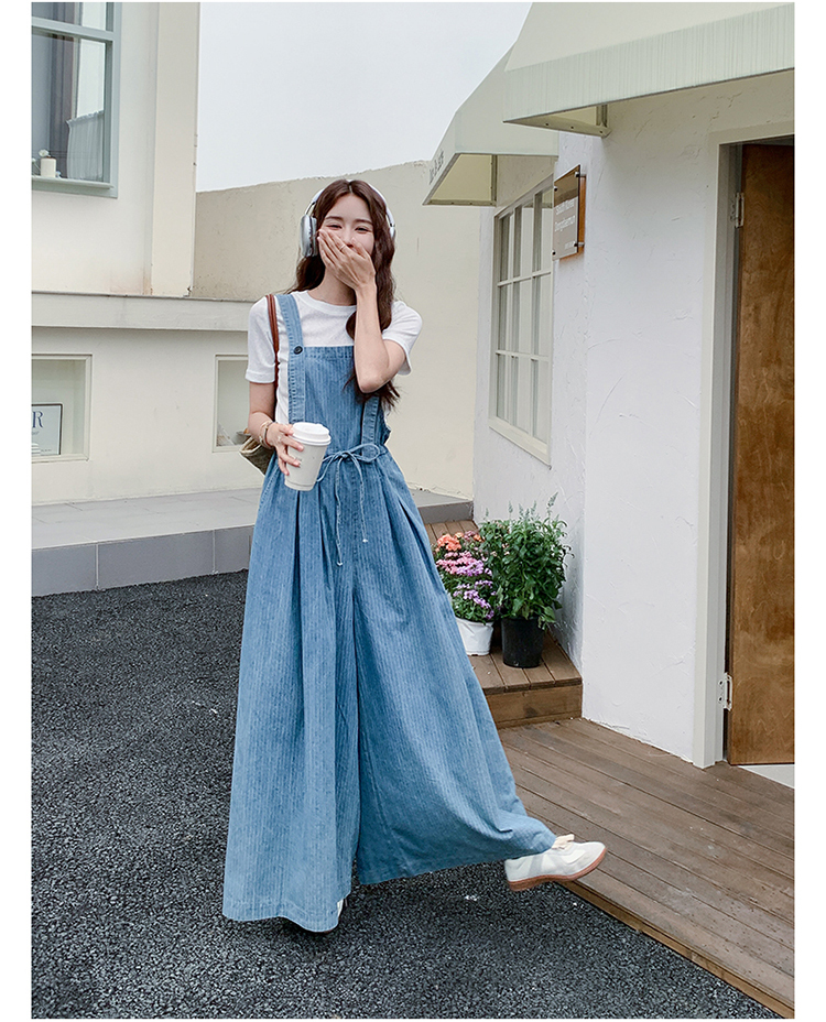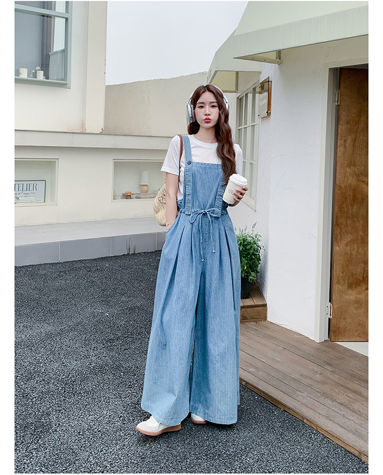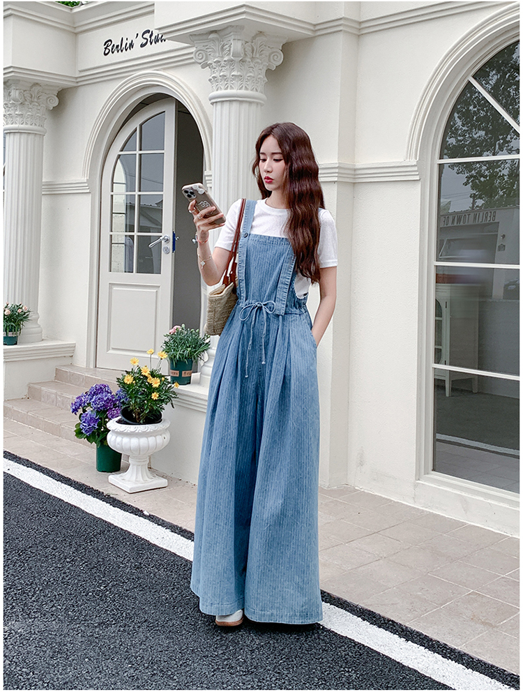 獨家訂製│舒適休閒感收腰抽繩大闊腿吊帶褲(07A1519)