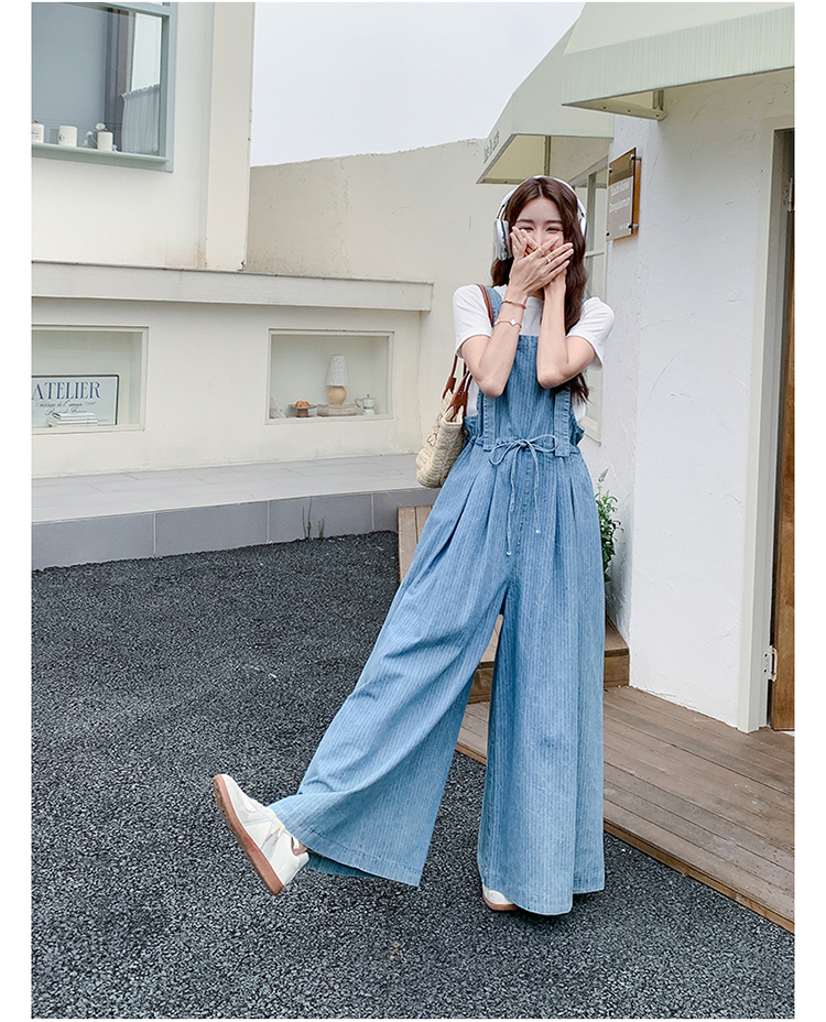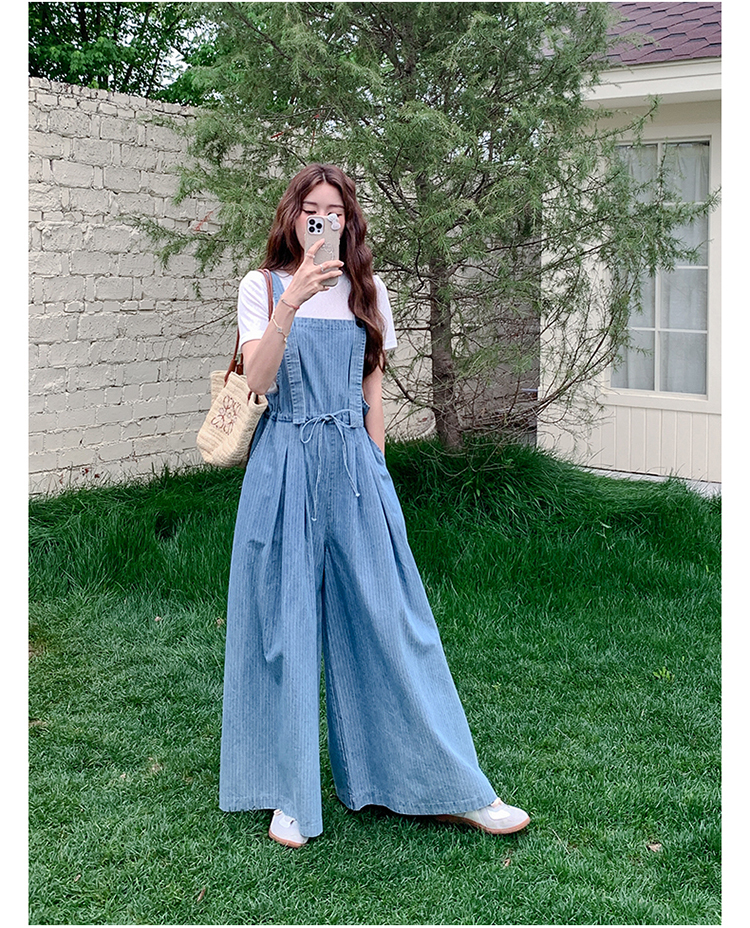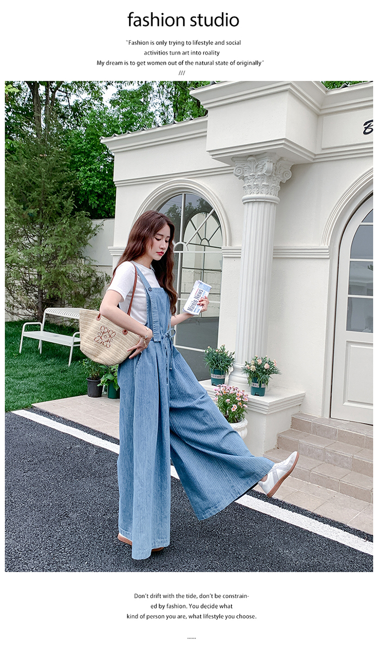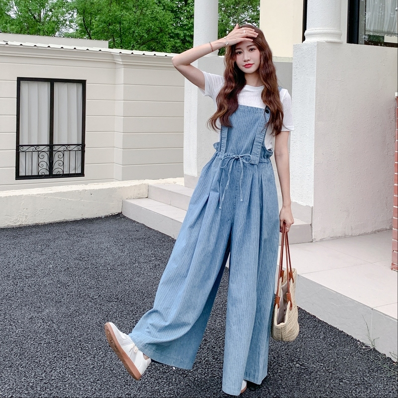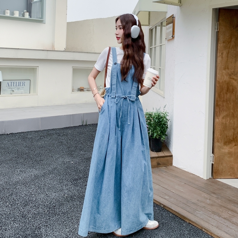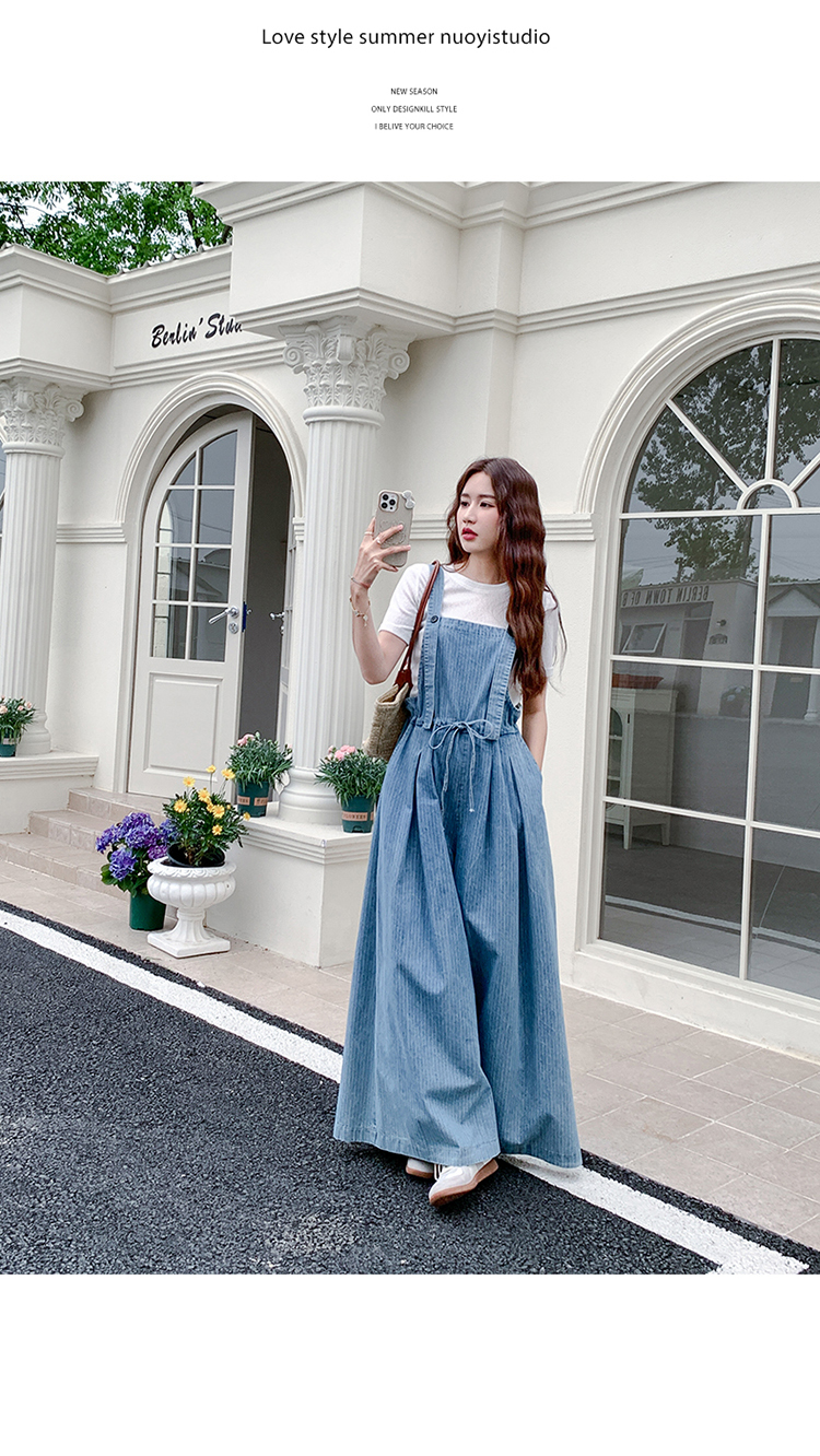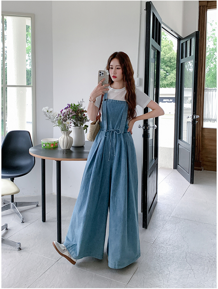 獨家訂製│舒適休閒感收腰抽繩大闊腿吊帶褲(07A1519)