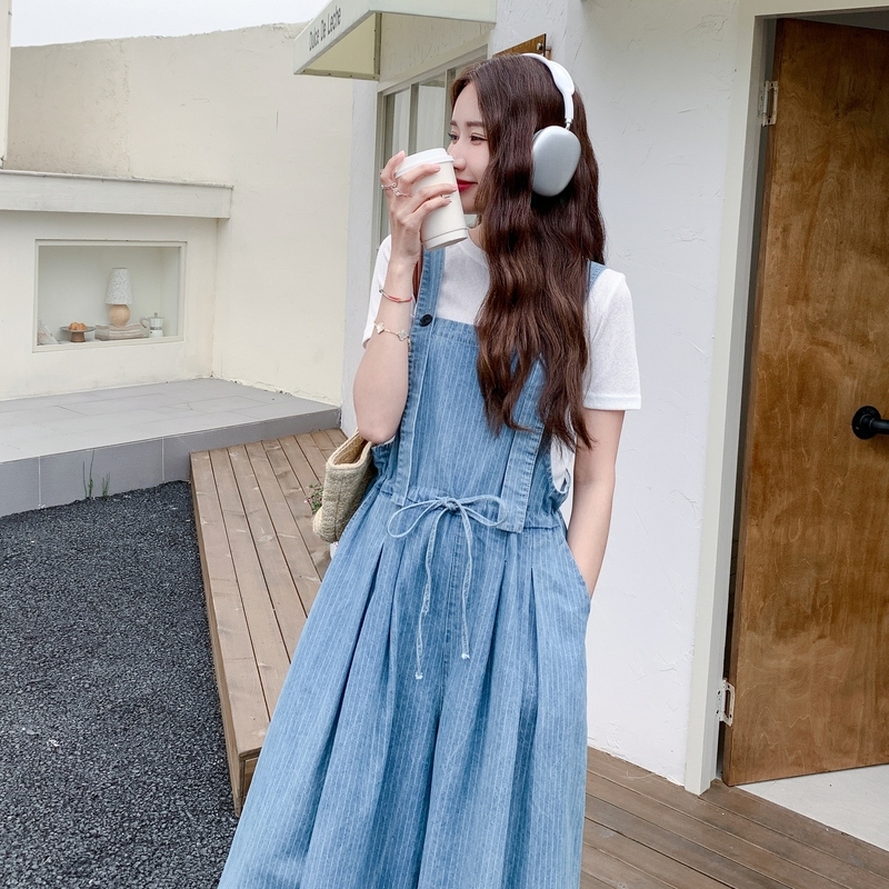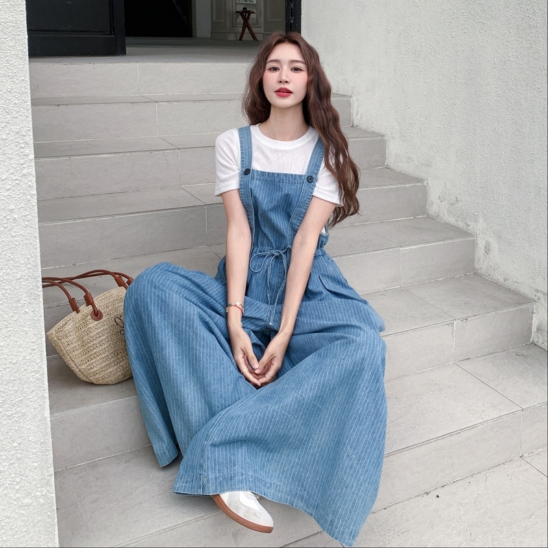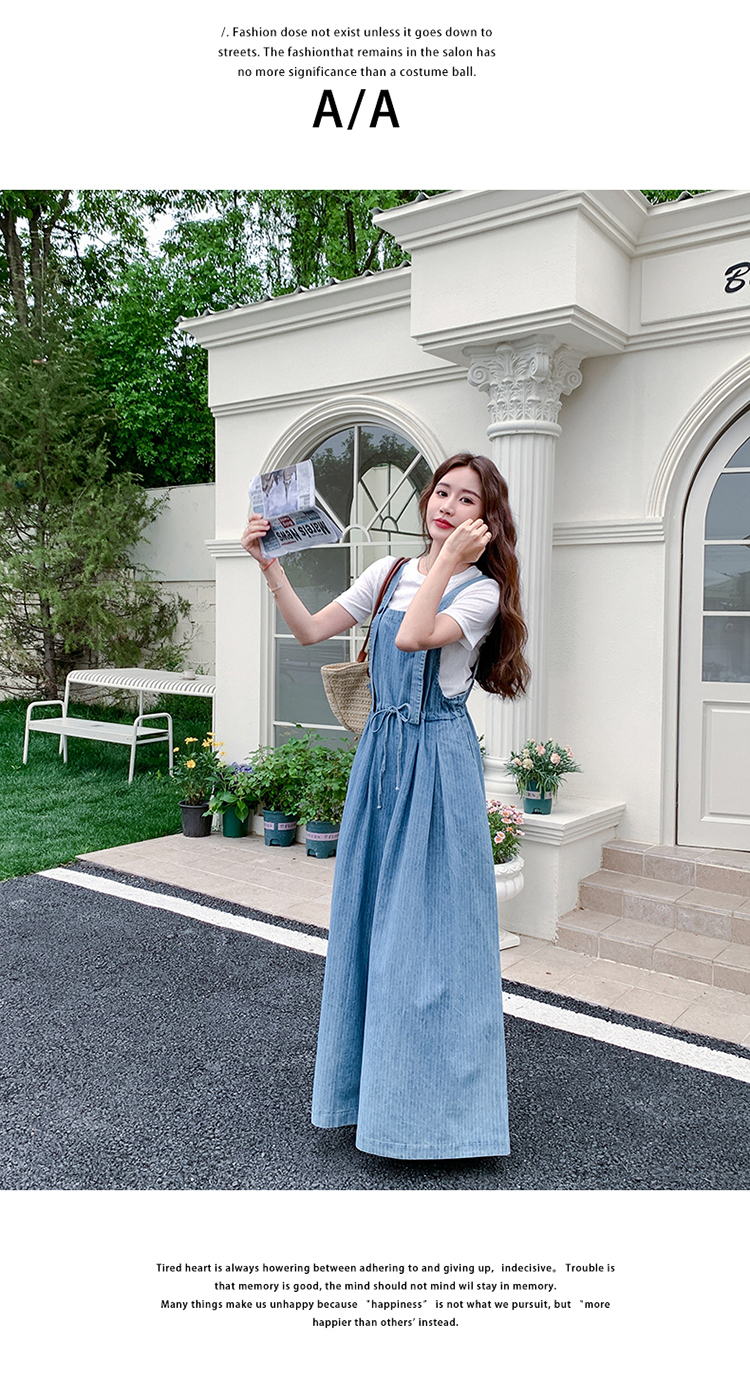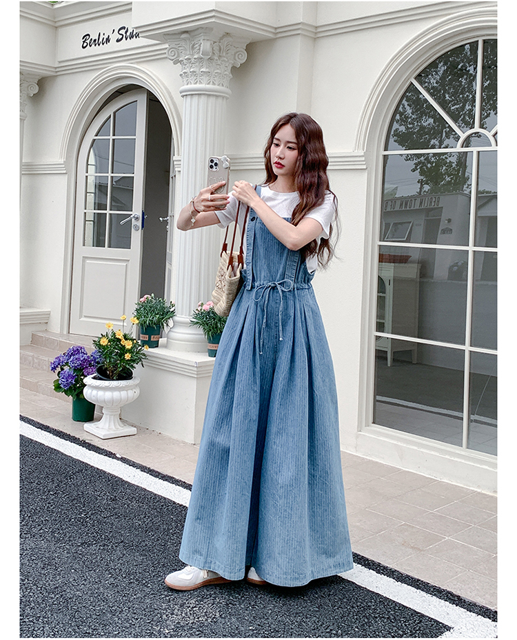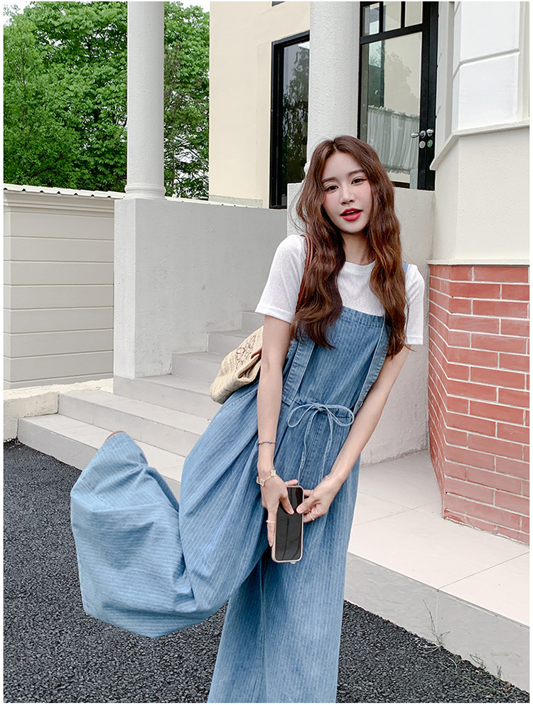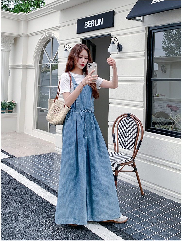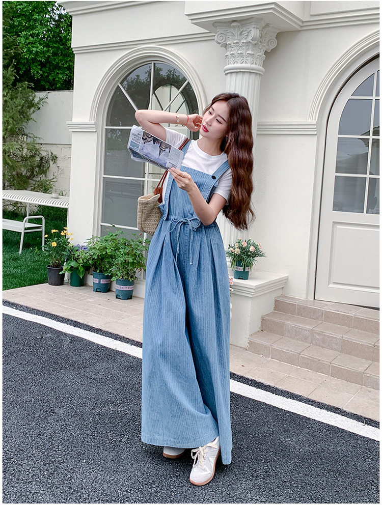 獨家訂製│舒適休閒感收腰抽繩大闊腿吊帶褲(07A1519)