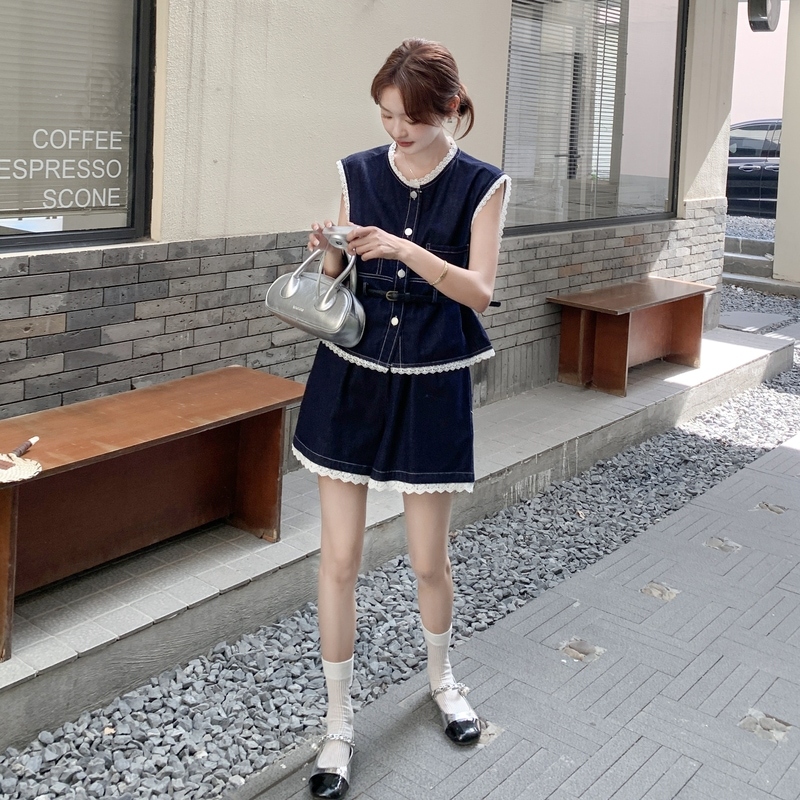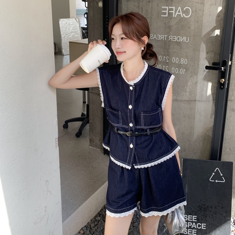 🔺面料:牛仔+蕾絲