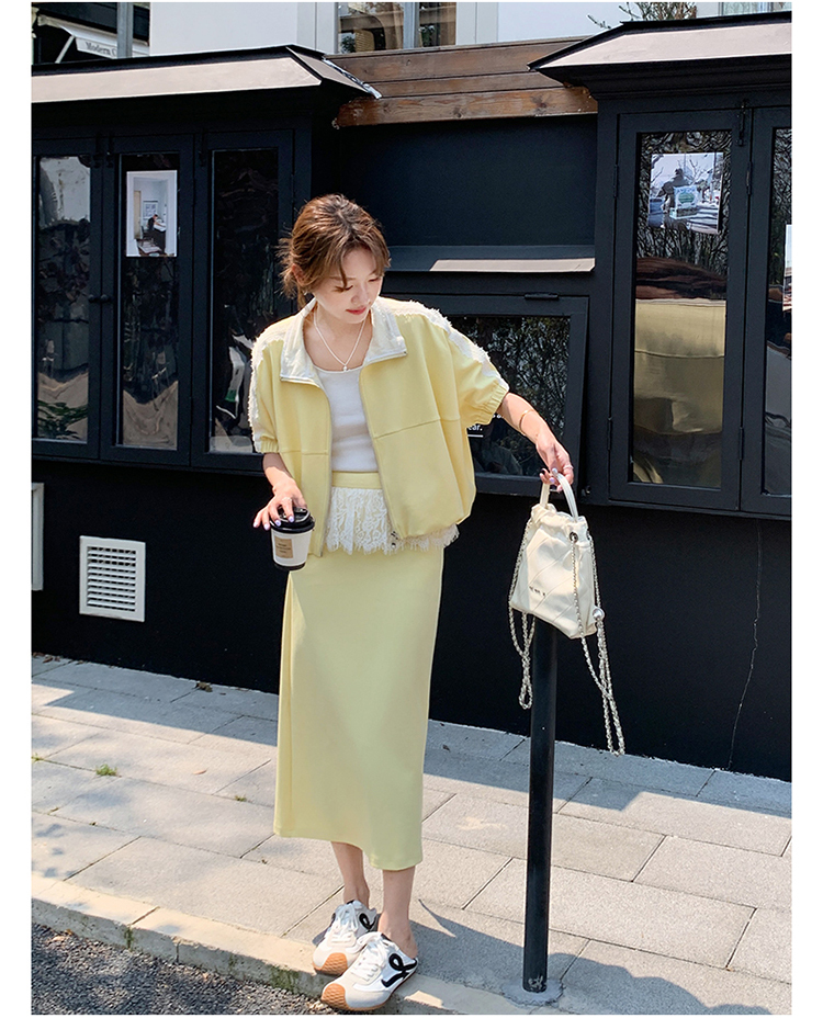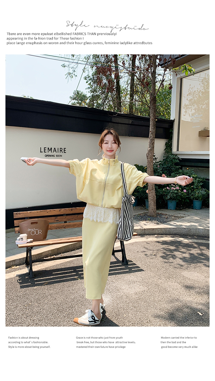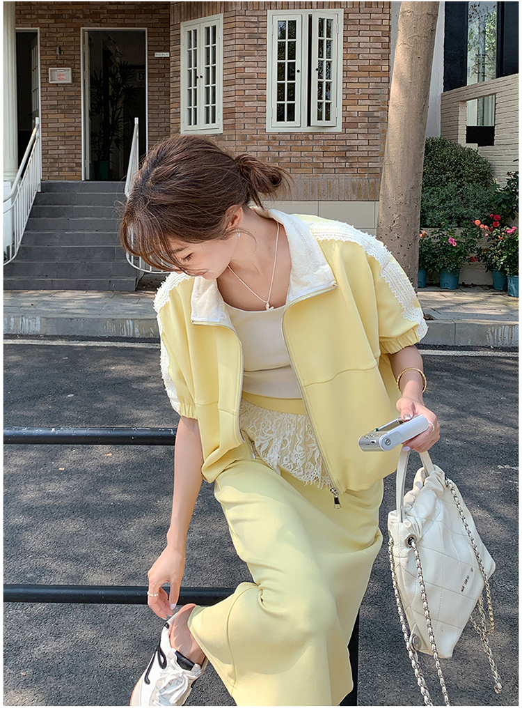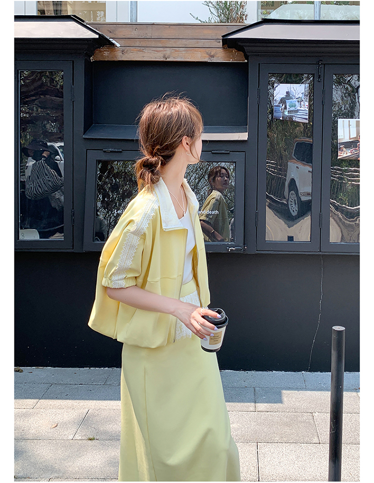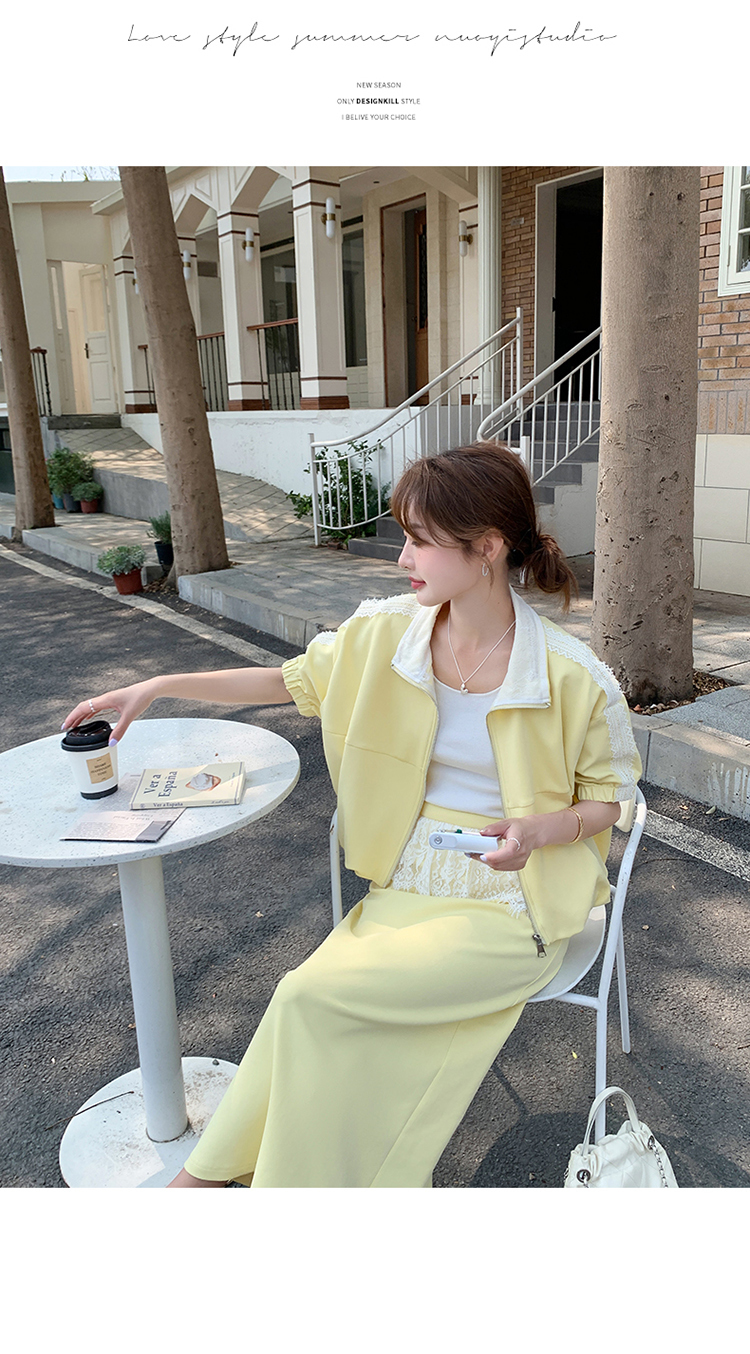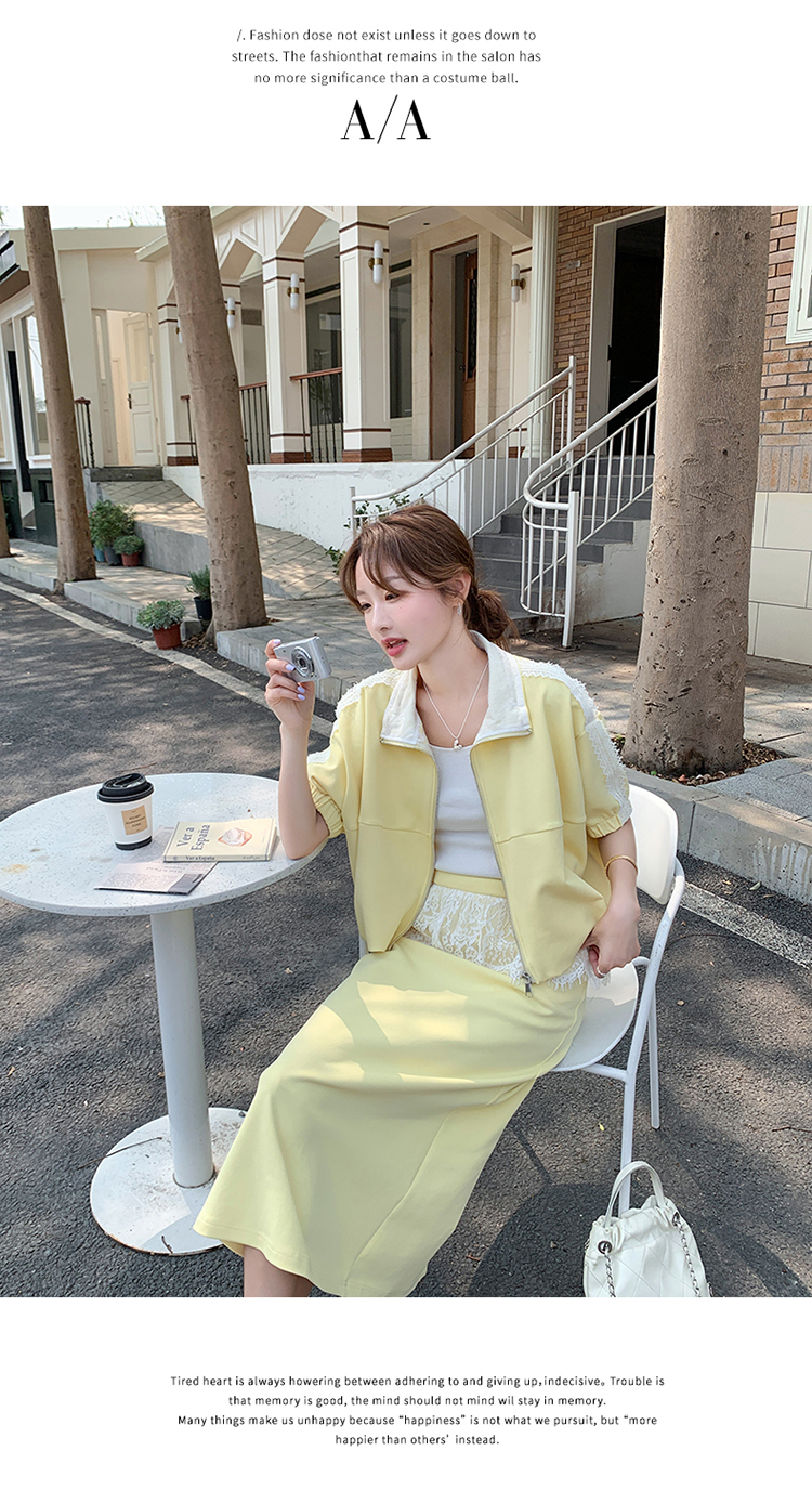 獨家訂製│2件式 蕾絲拼接短袖外套+蕾絲拼接A字裙(07A1540)