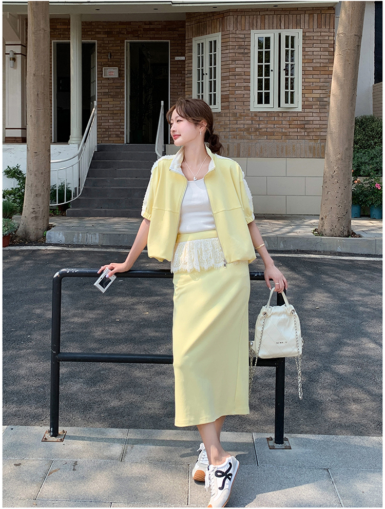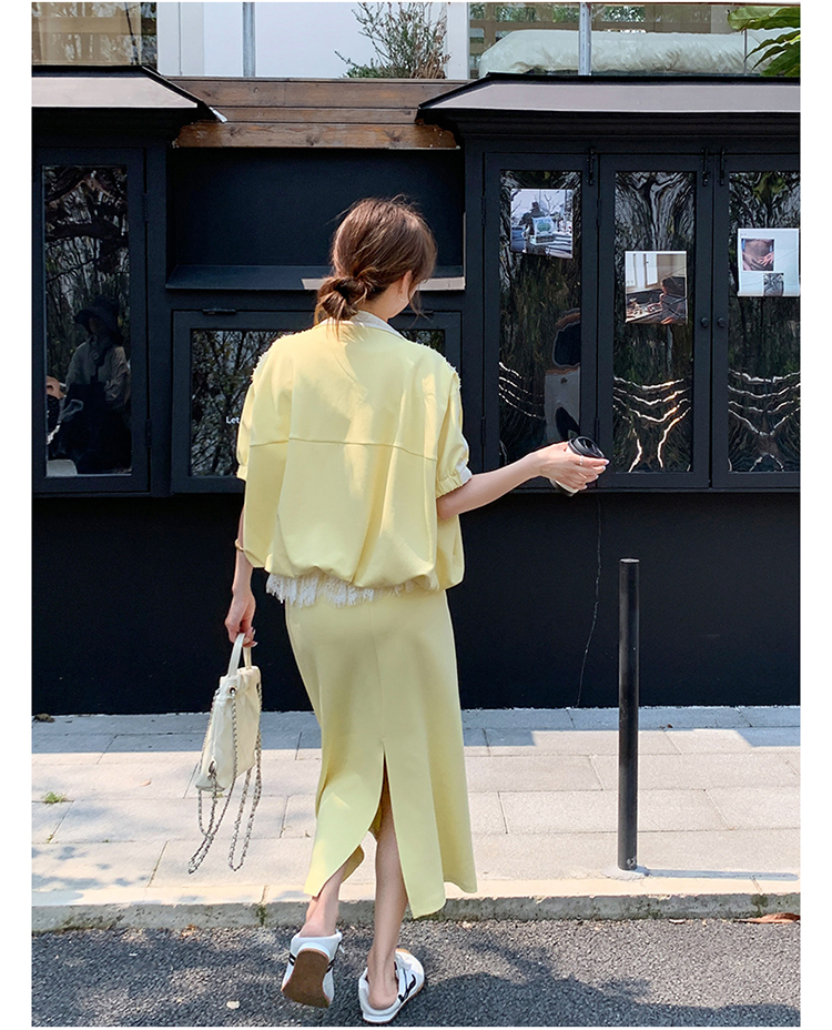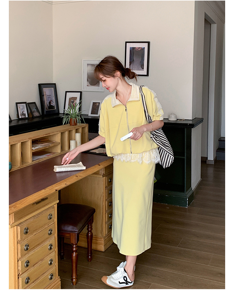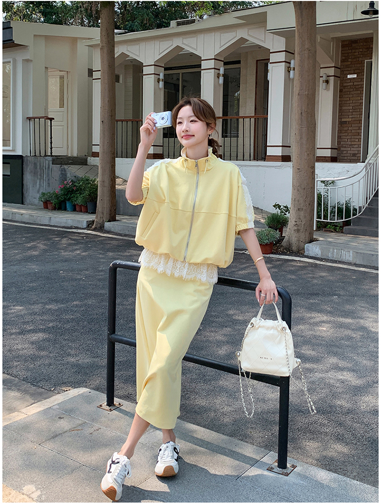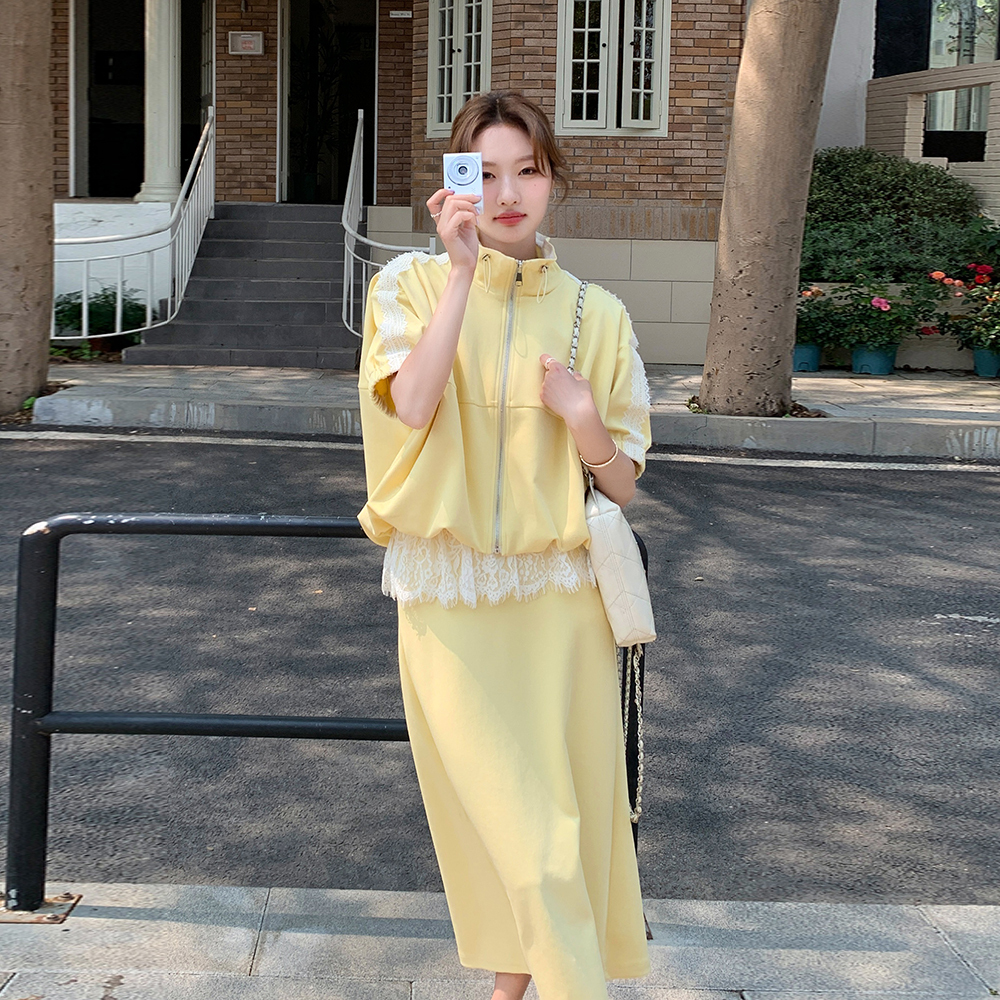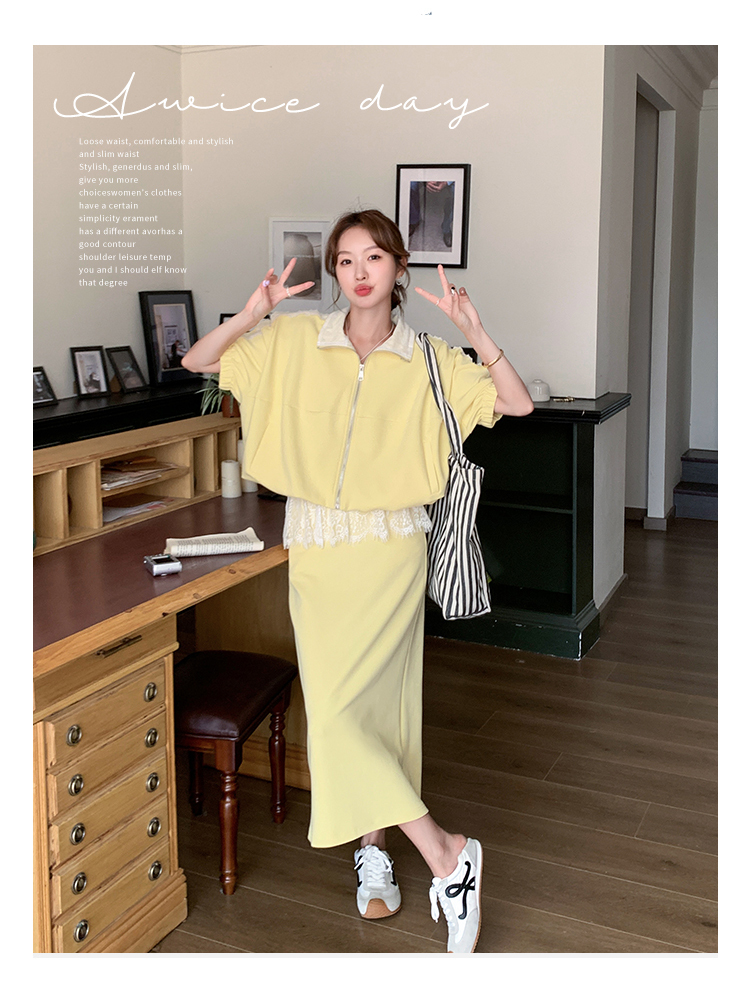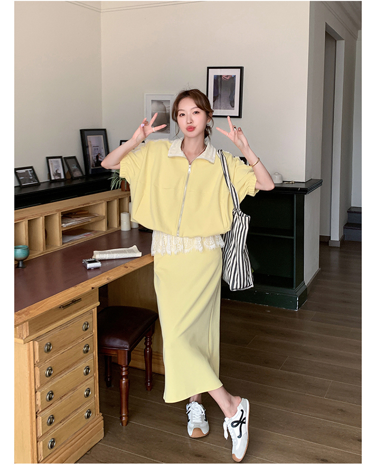 獨家訂製│2件式 蕾絲拼接短袖外套+蕾絲拼接A字裙(07A1540)