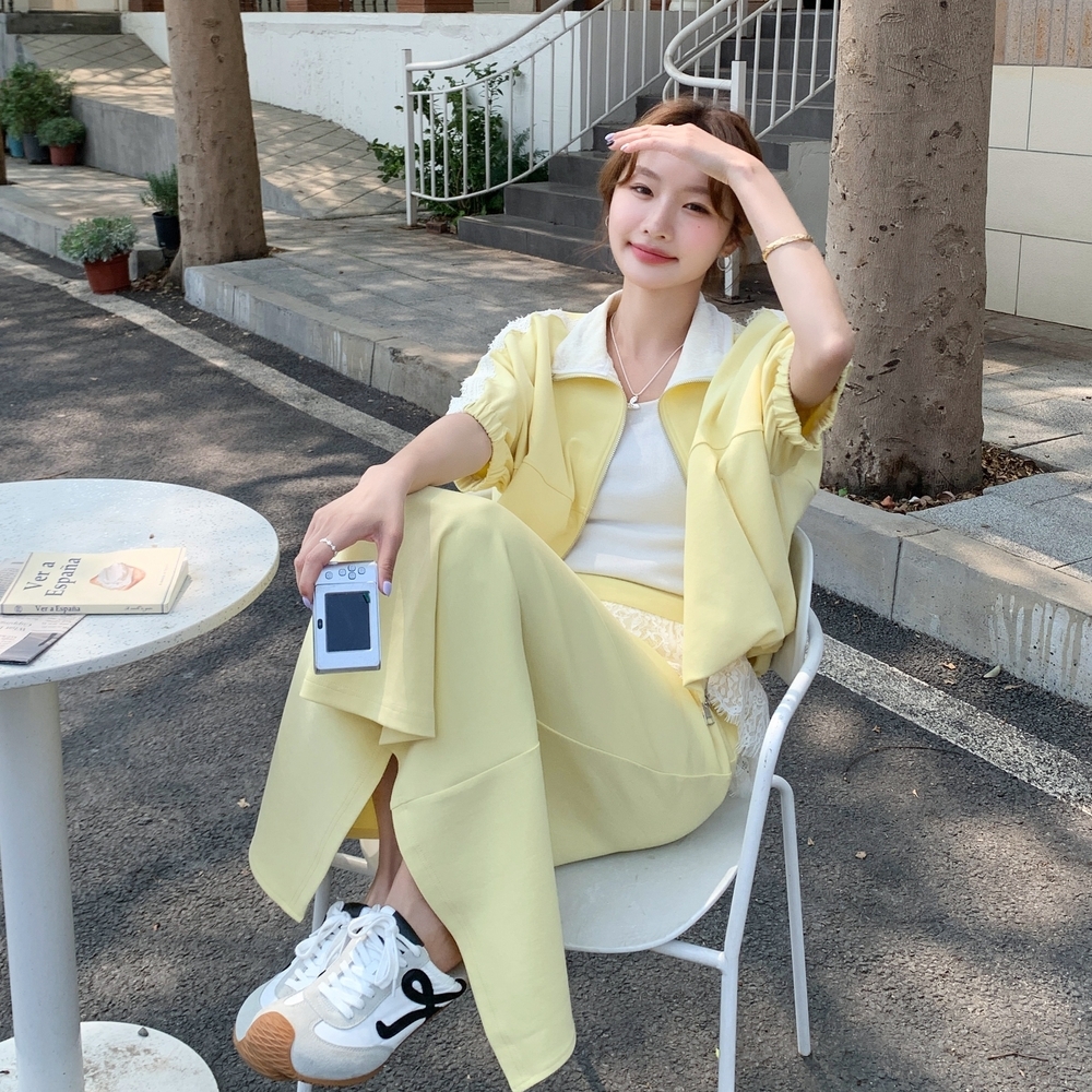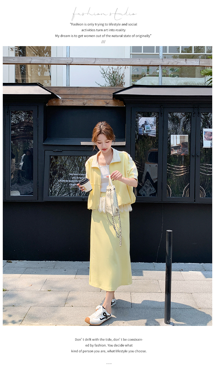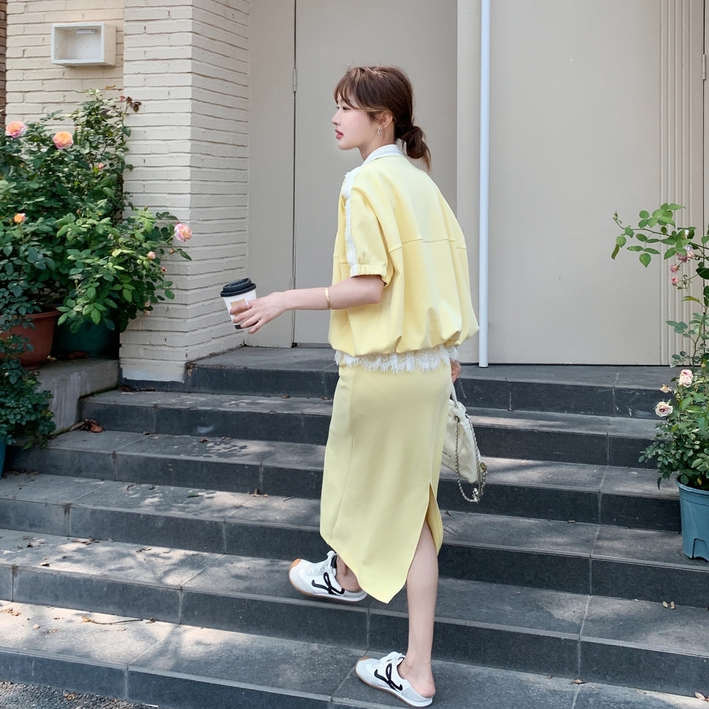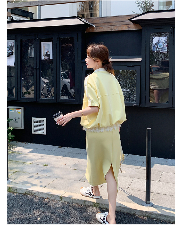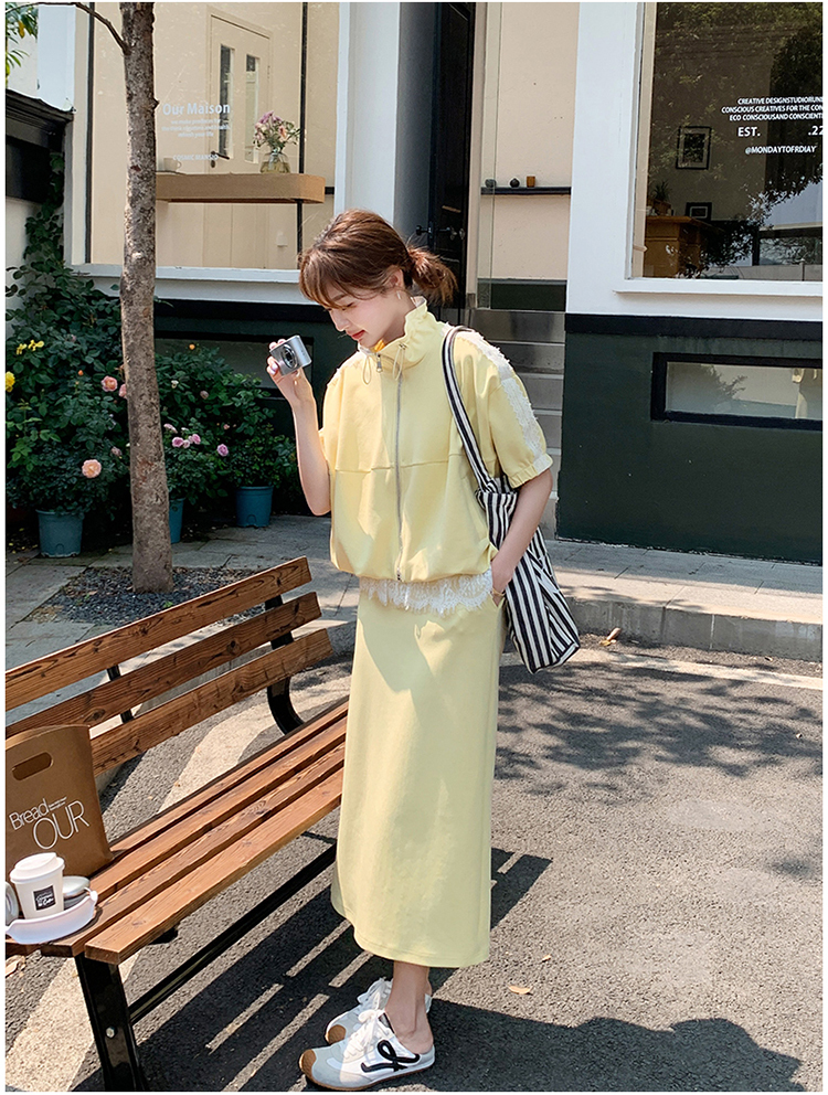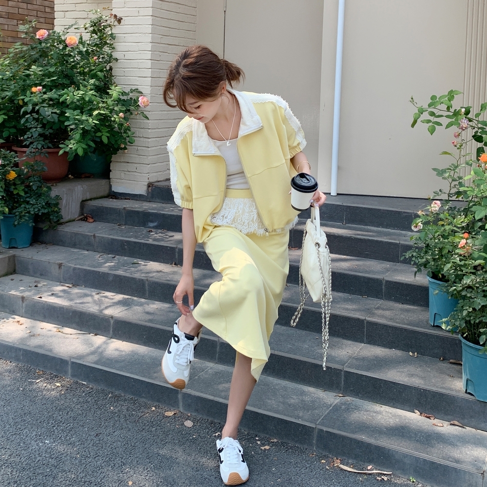 獨家訂製│2件式 蕾絲拼接短袖外套+蕾絲拼接A字裙(07A1540)