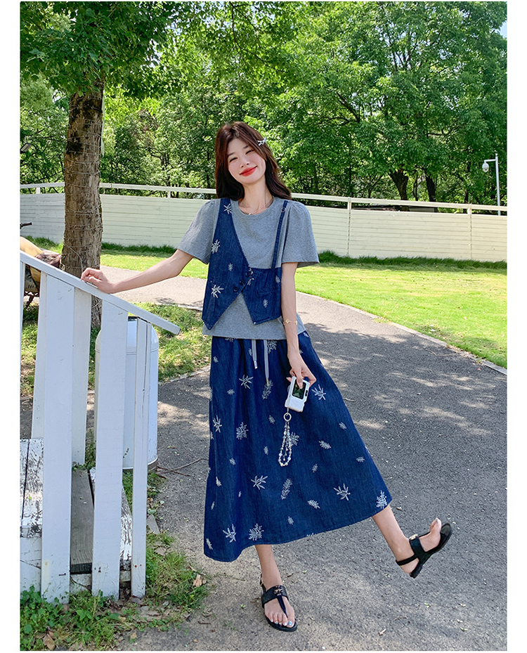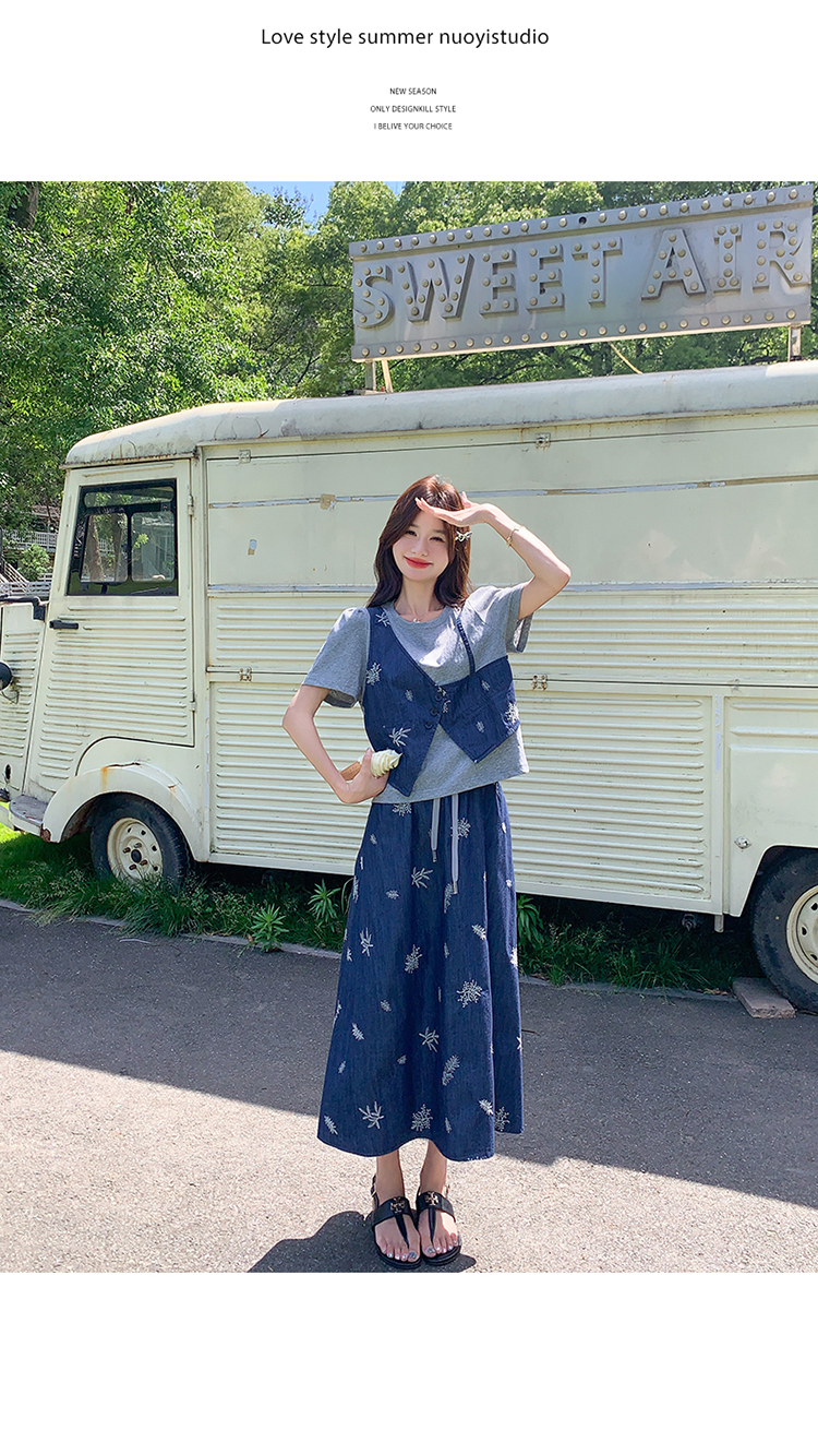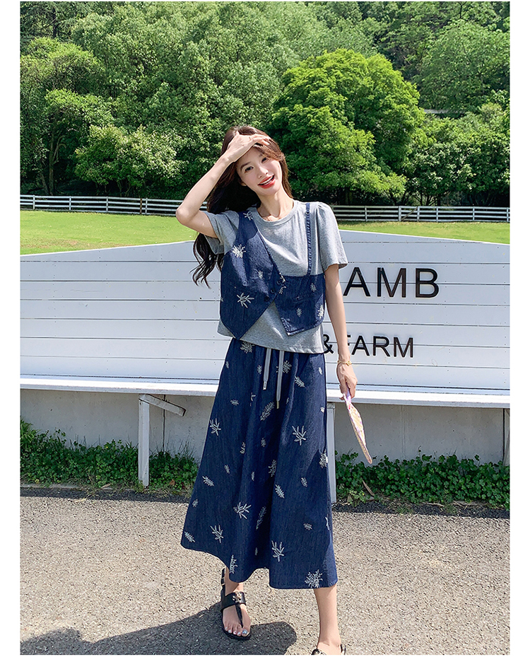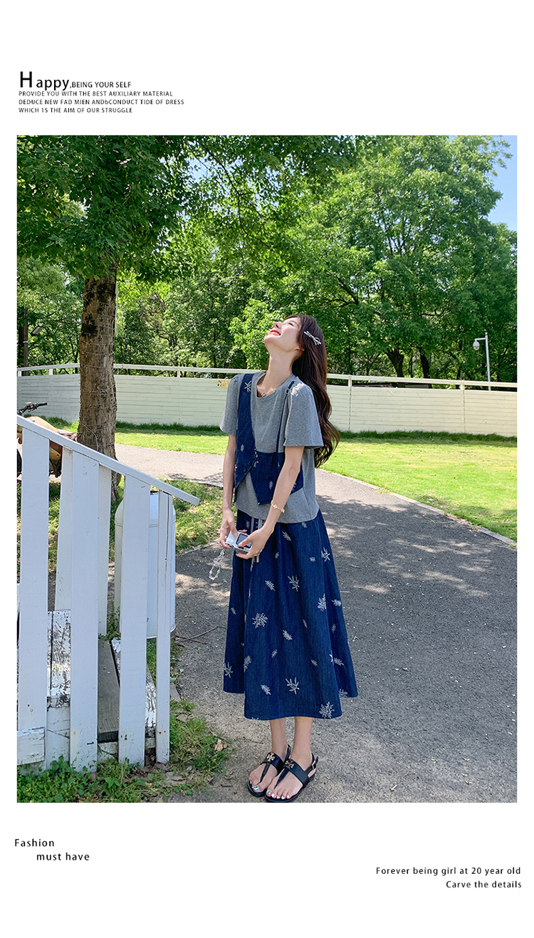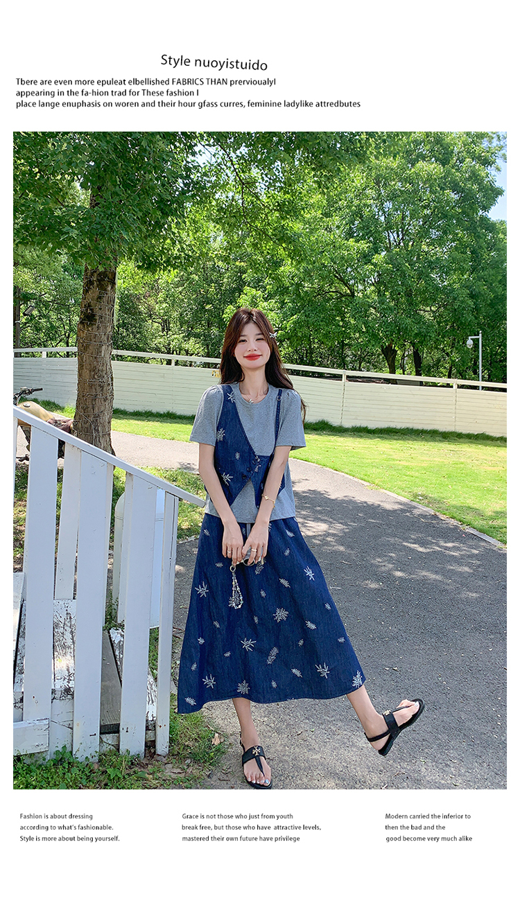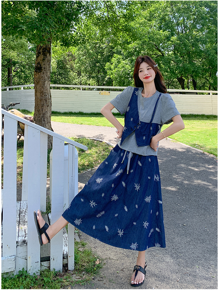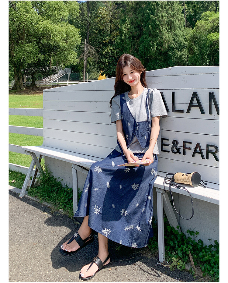 獨家訂製│2件式 吊帶拼接假兩件T恤+A字裙(07A1582)