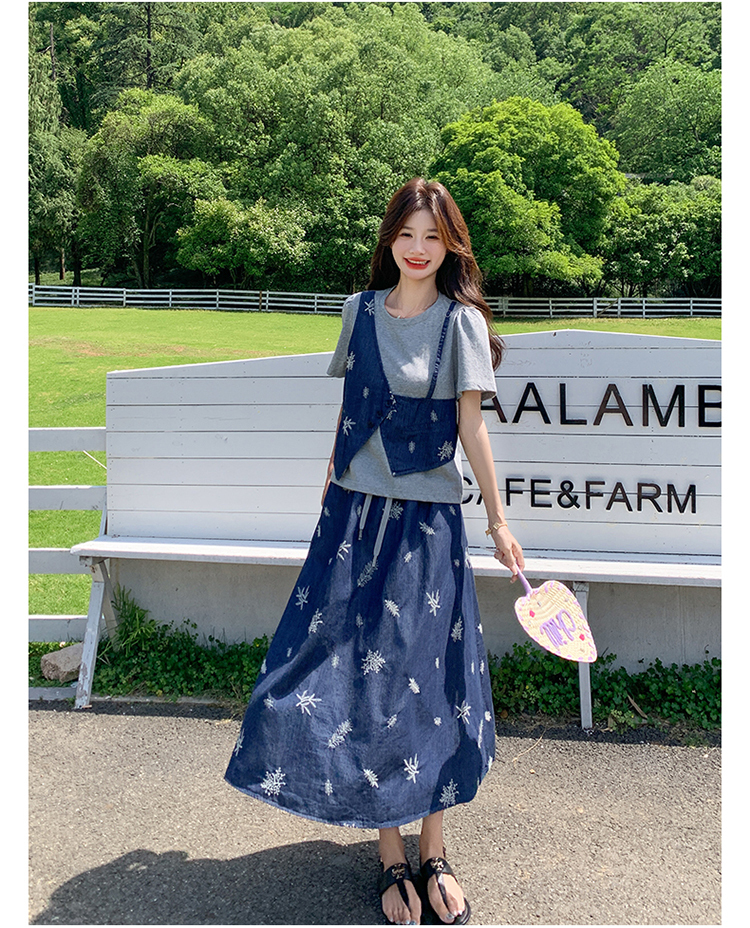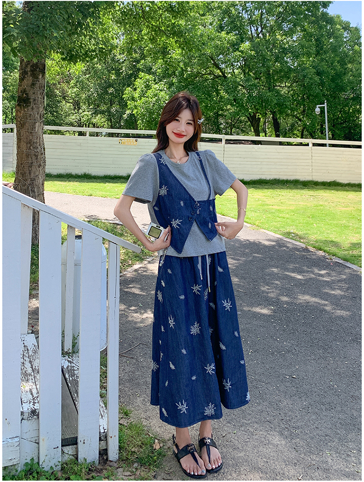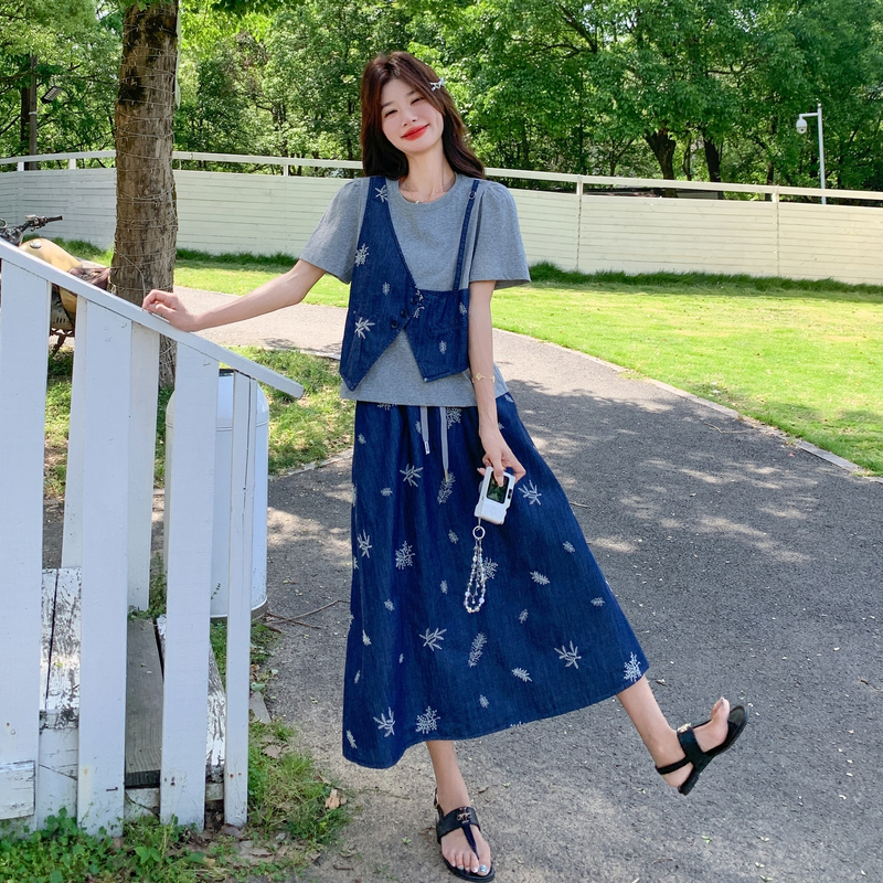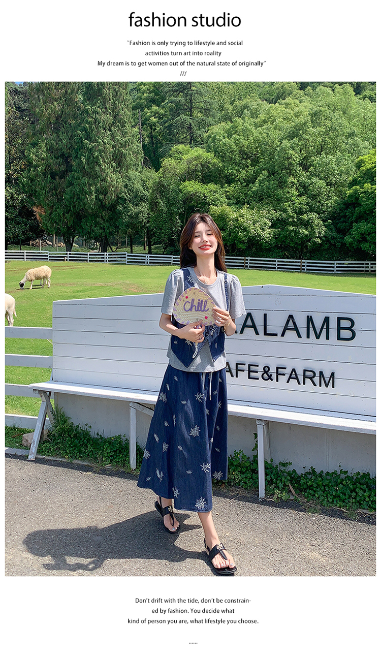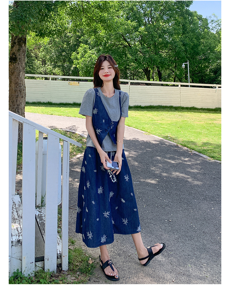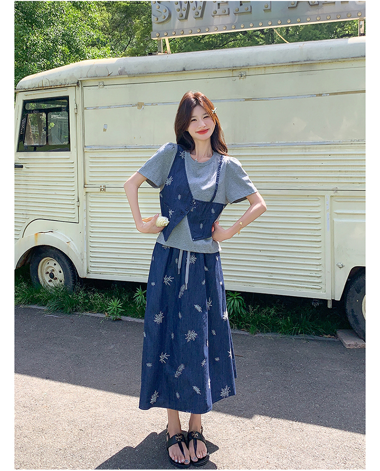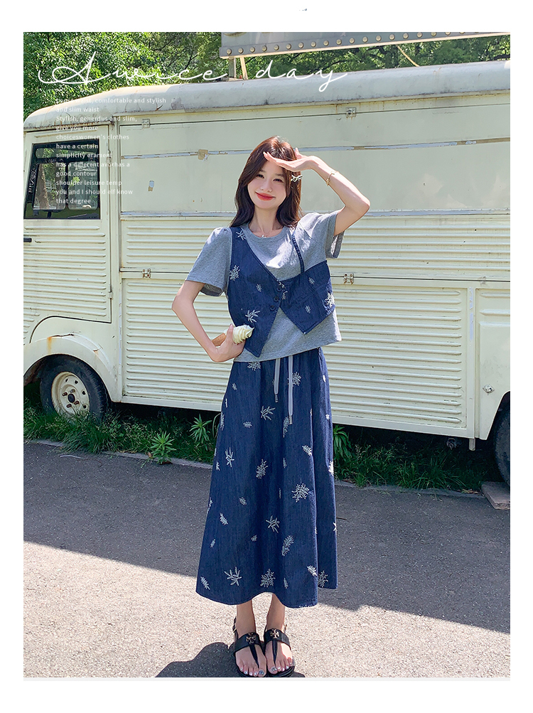 獨家訂製│2件式 吊帶拼接假兩件T恤+A字裙(07A1582)