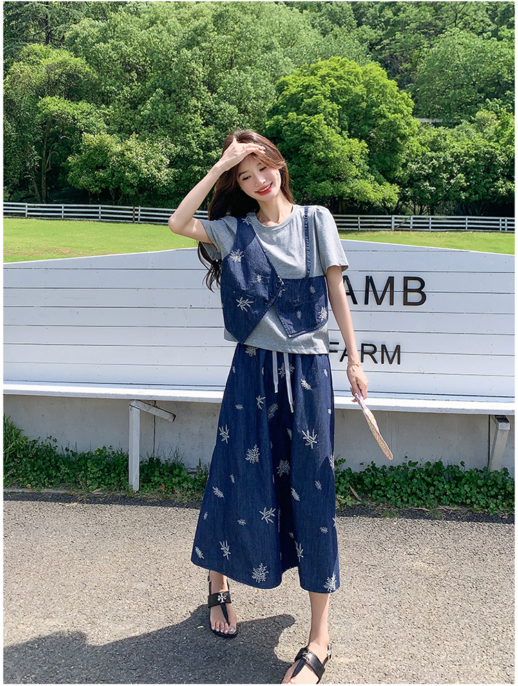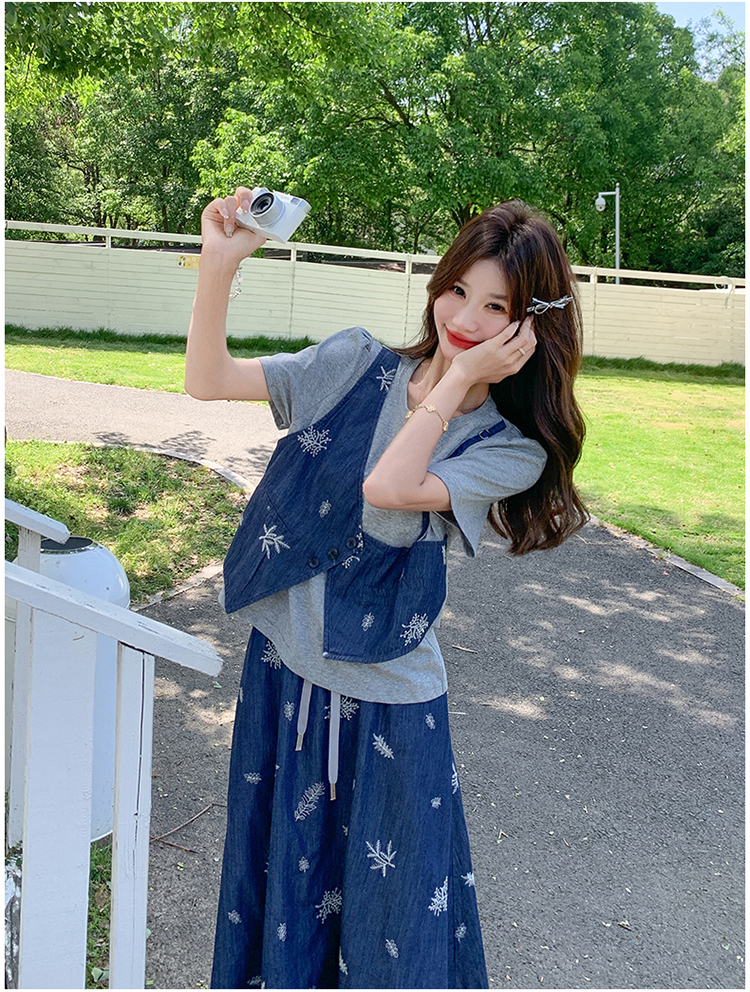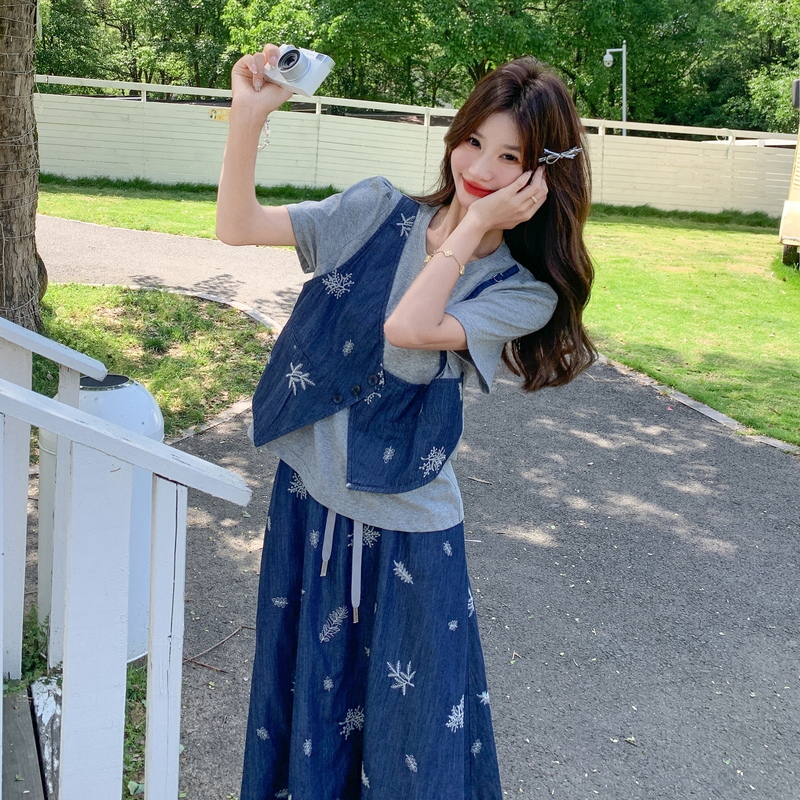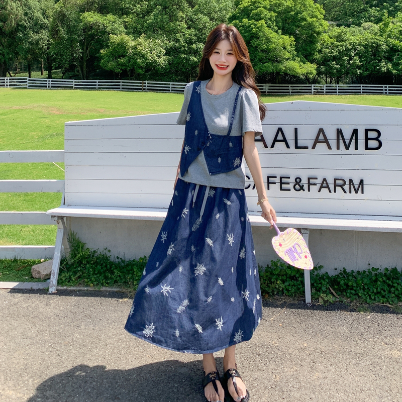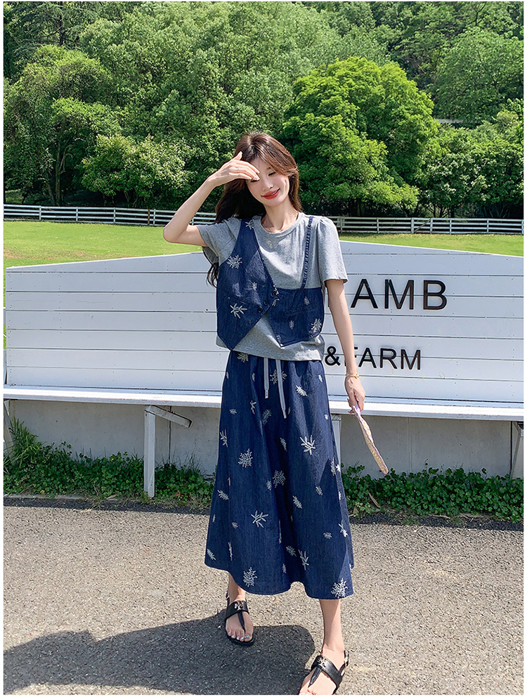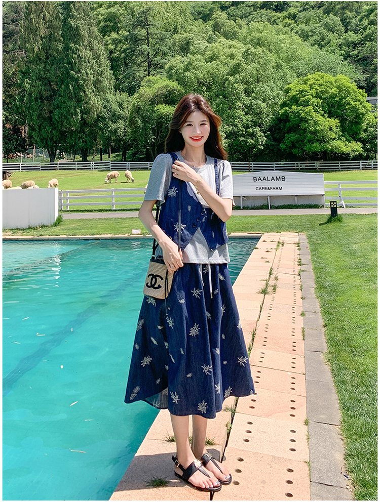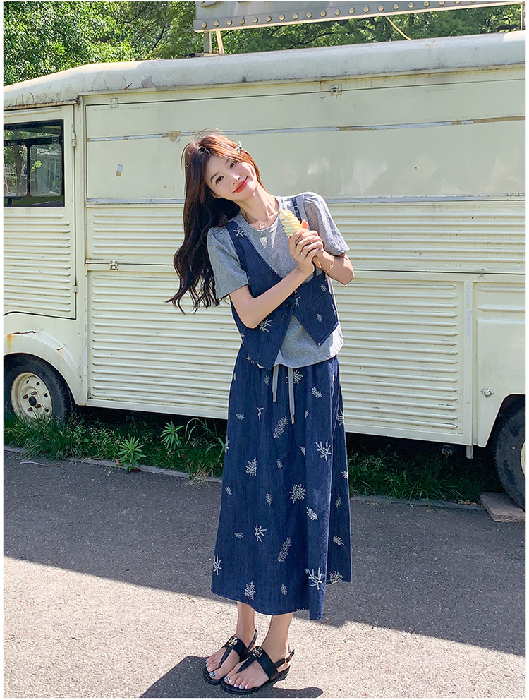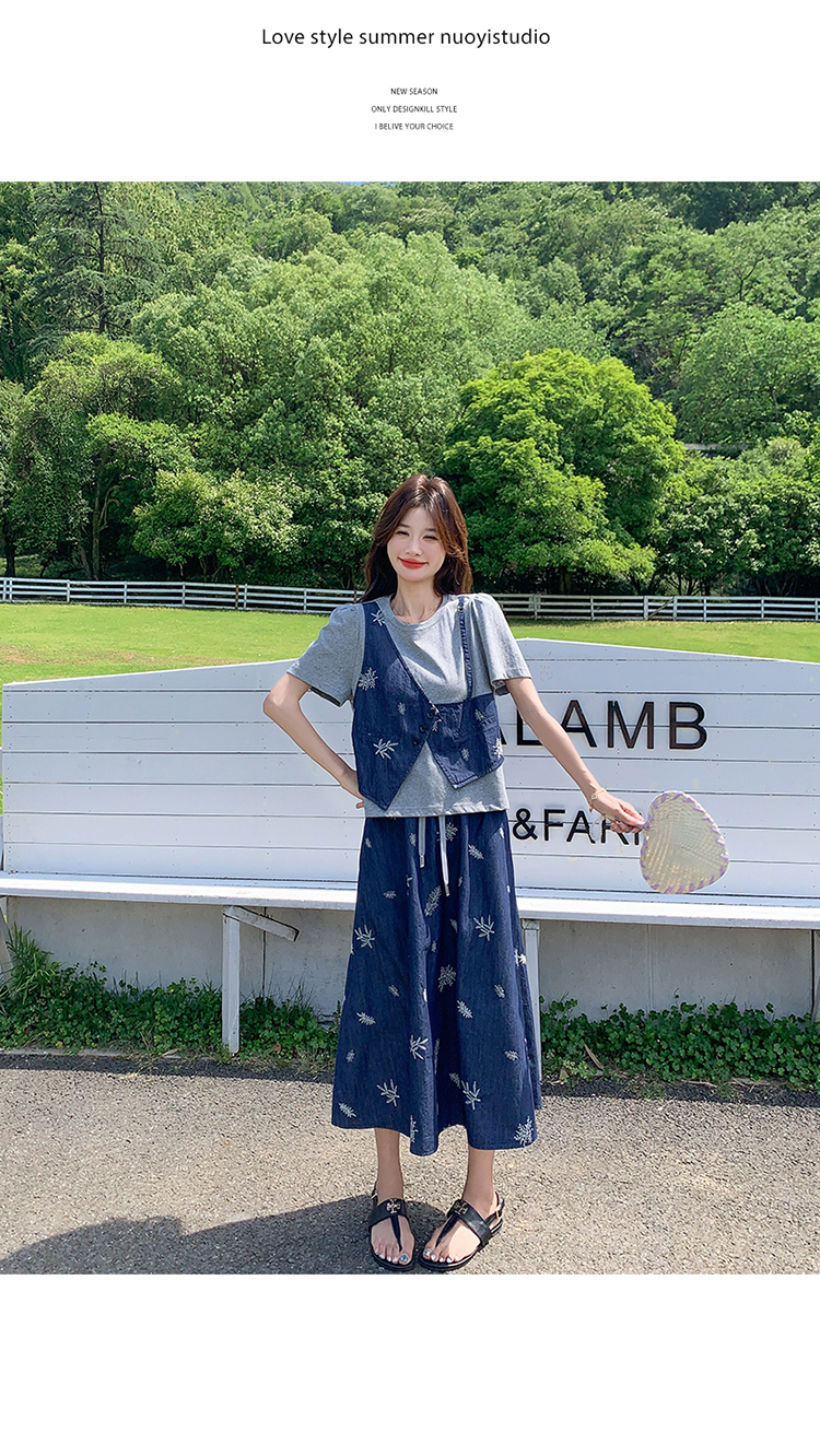 獨家訂製│2件式 吊帶拼接假兩件T恤+A字裙(07A1582)