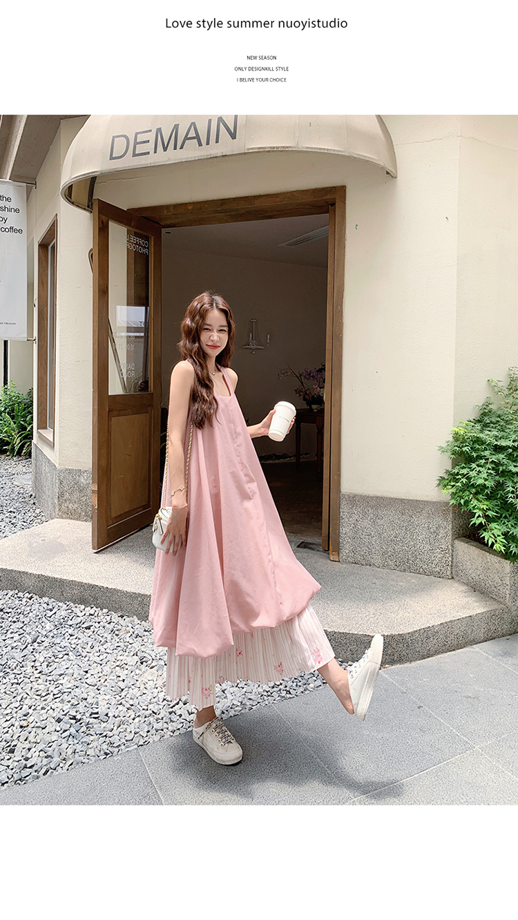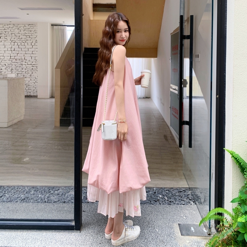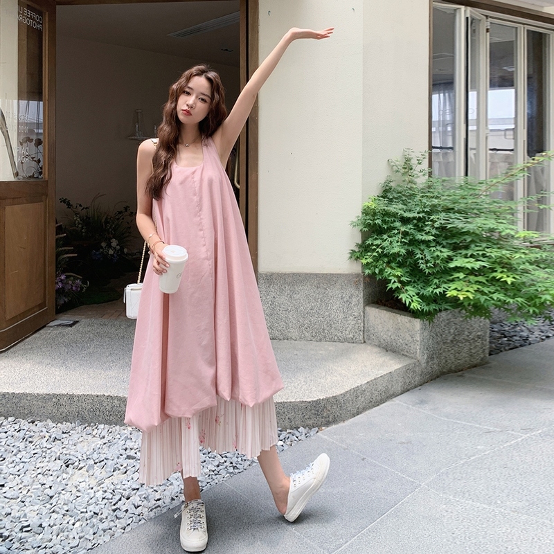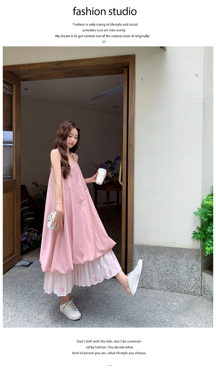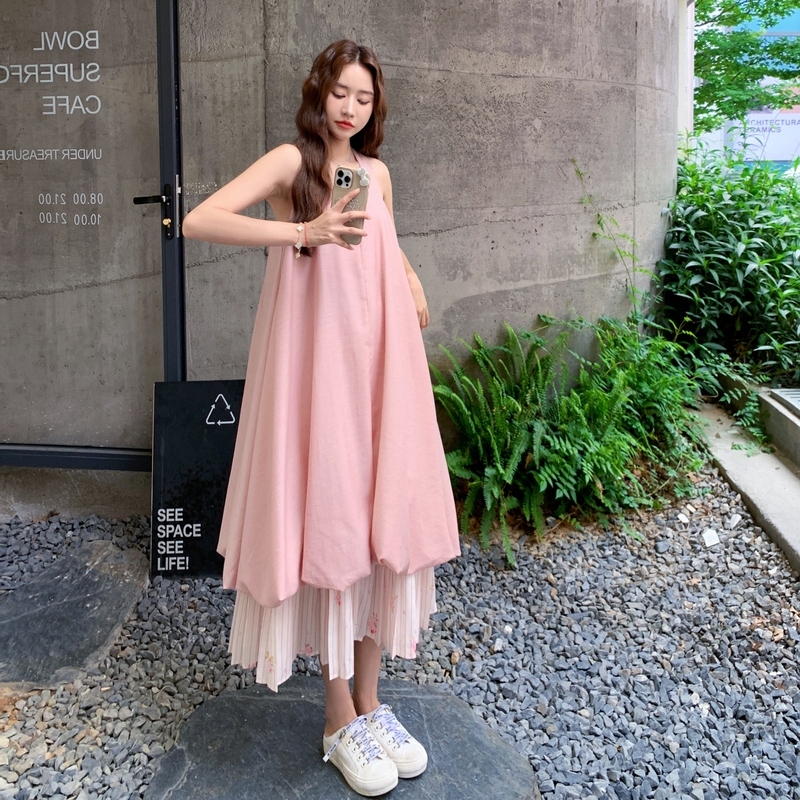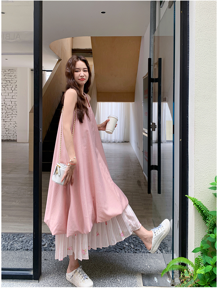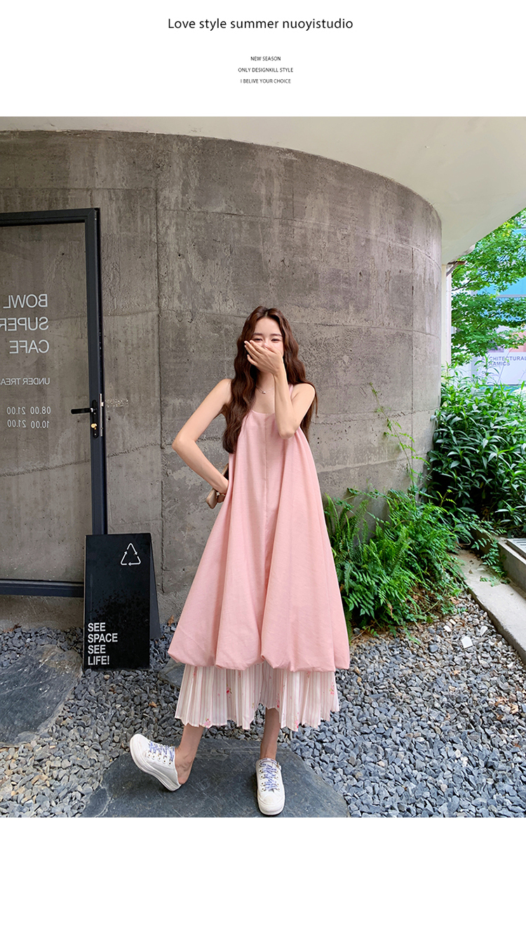 獨家訂製│假2件連衣裙 條紋百褶拼接背心洋裝(07A1589)