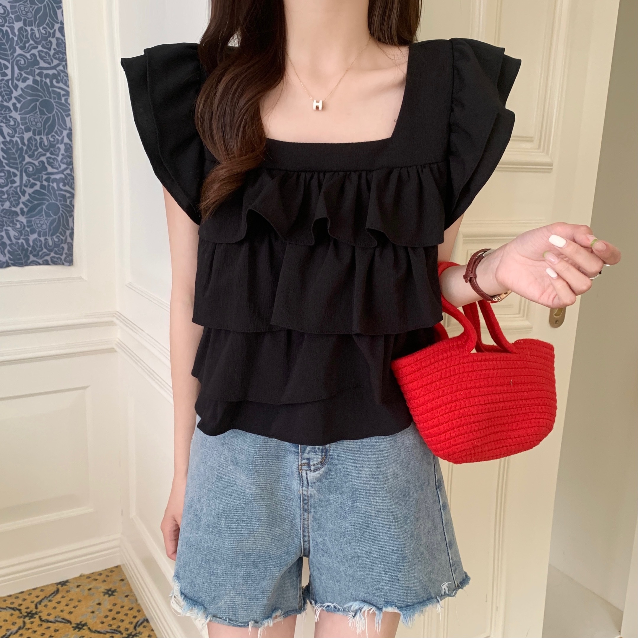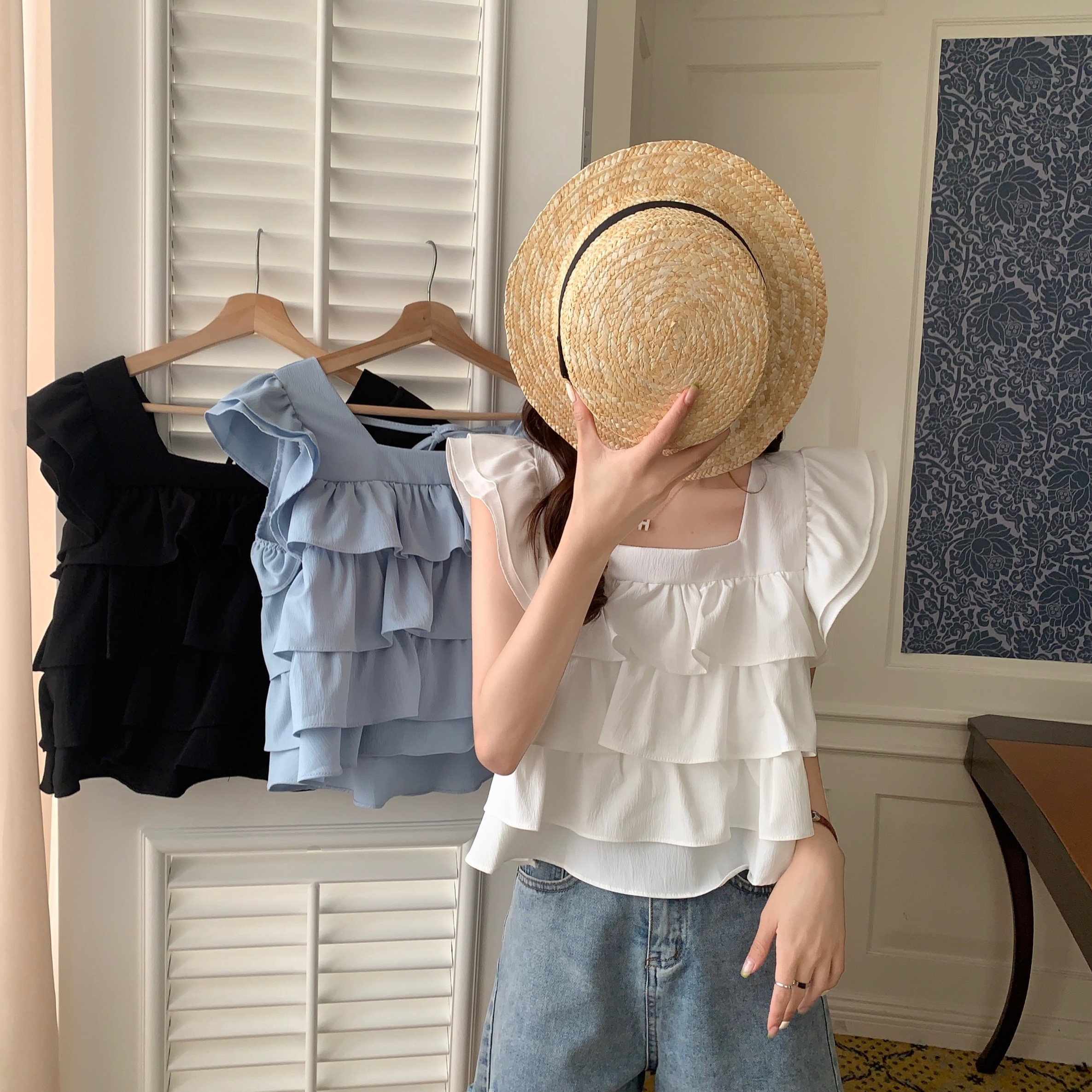 3.照片上的配飾配件屬於model私人物品,不隨衣服一起附送喔。