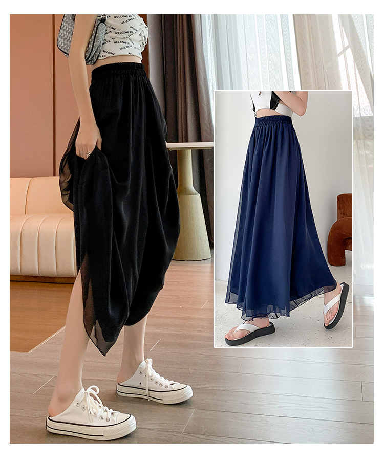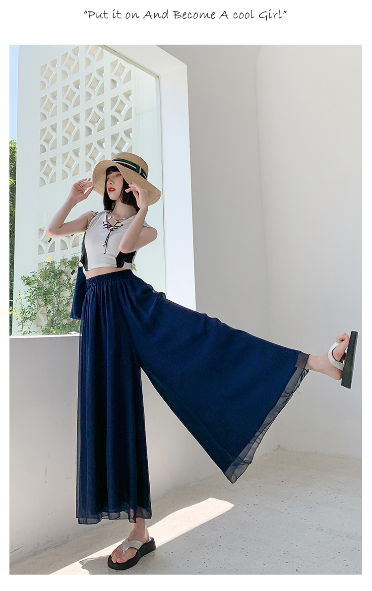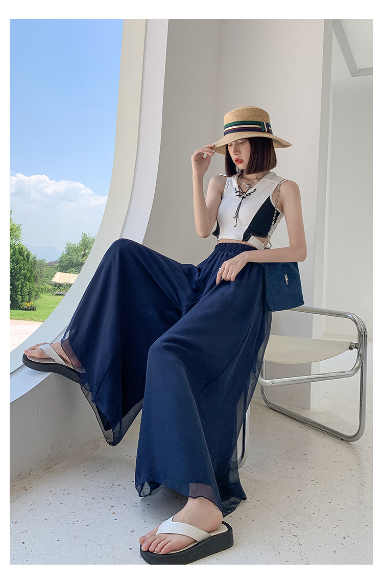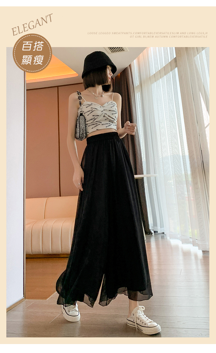 限量特惠|舒適百搭雙層設計雪紡闊腿褲-2色(07H1443)