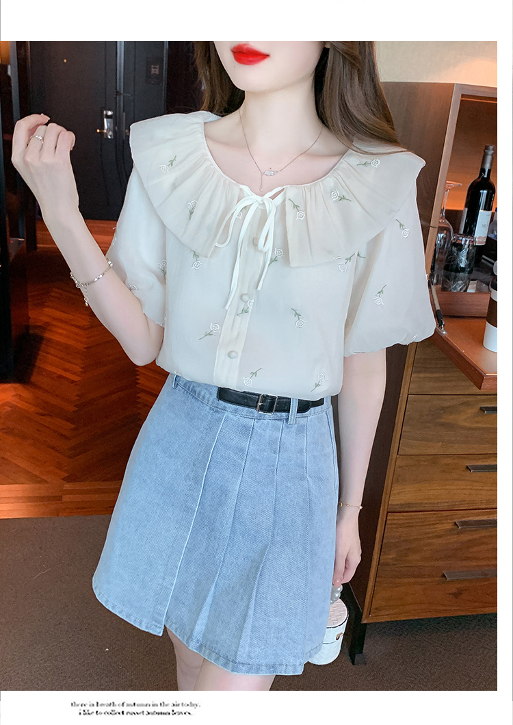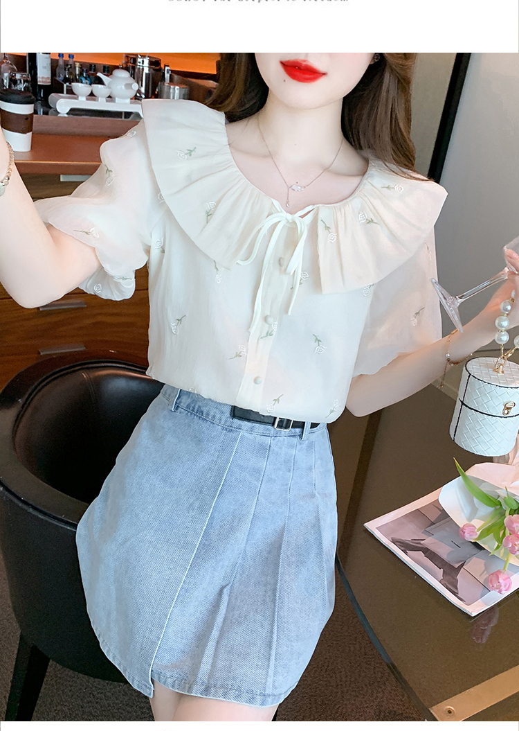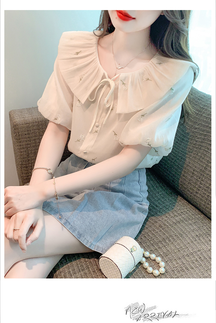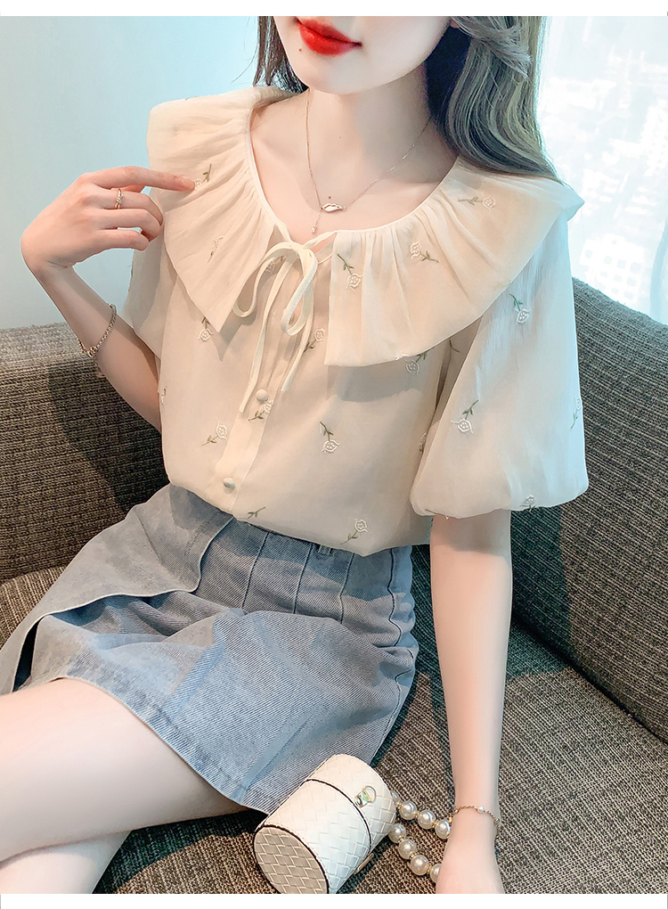 限量特惠|法式茶歇甜美刺繡娃娃領雪紡衫(08H4160)