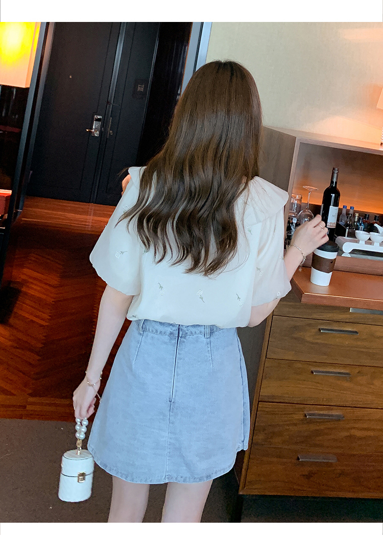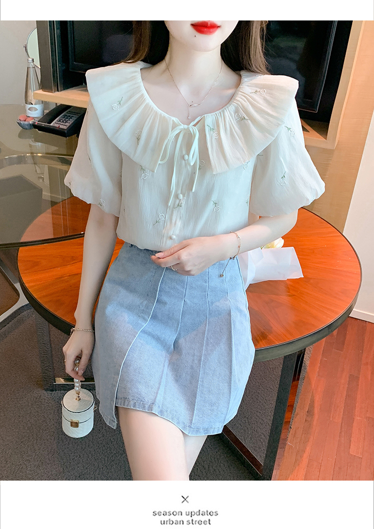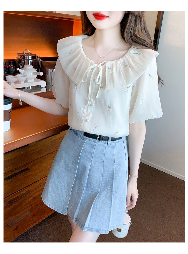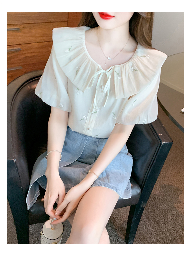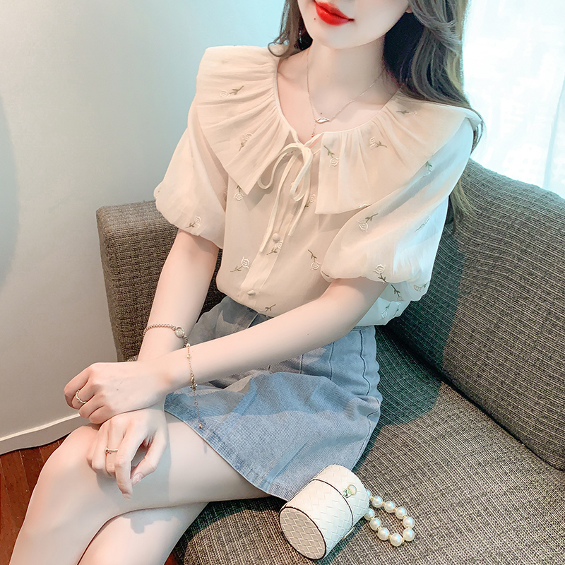限量特惠|法式茶歇甜美刺繡娃娃領雪紡衫(08H4160)