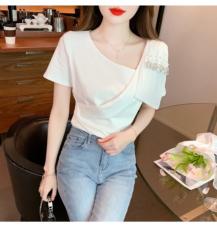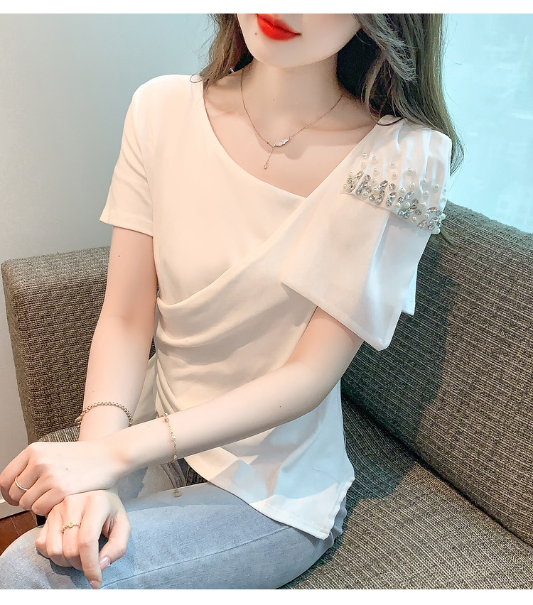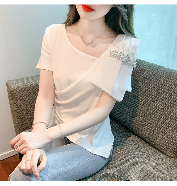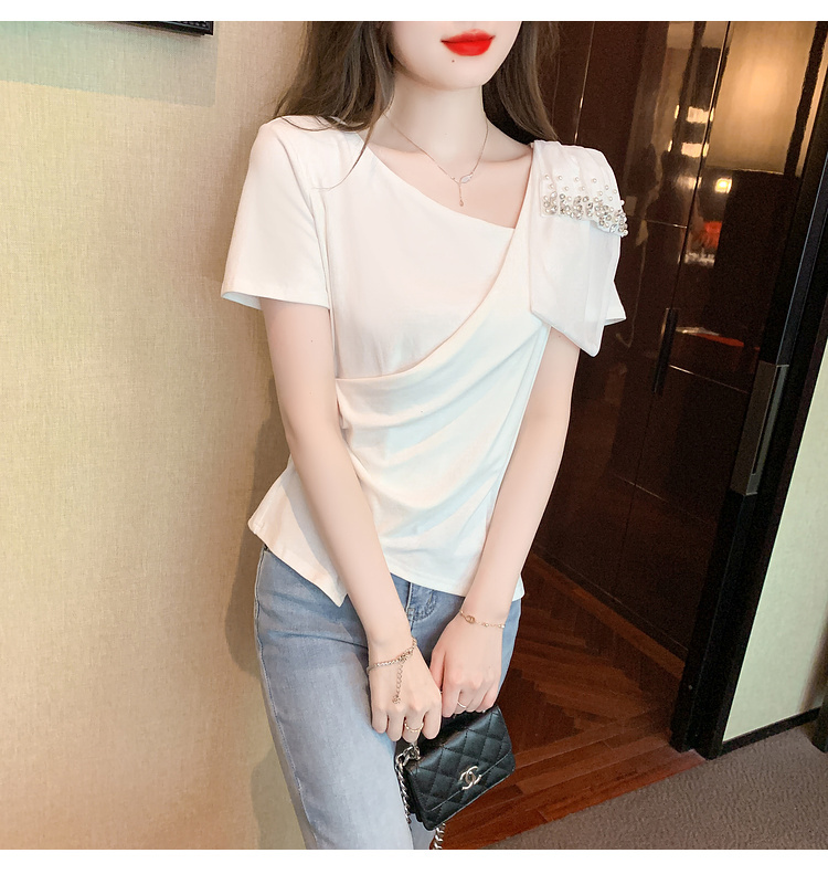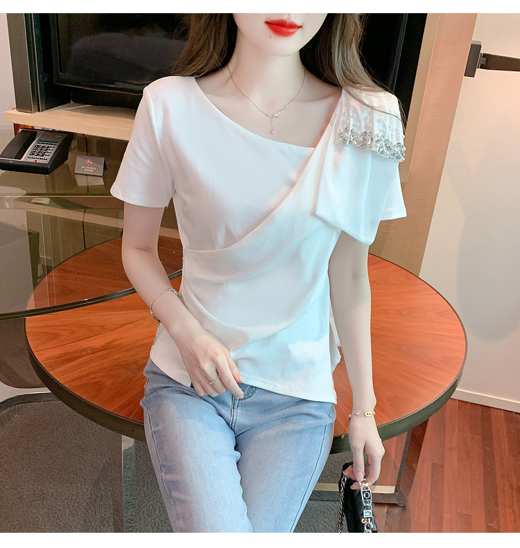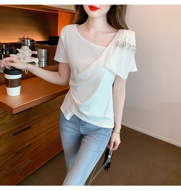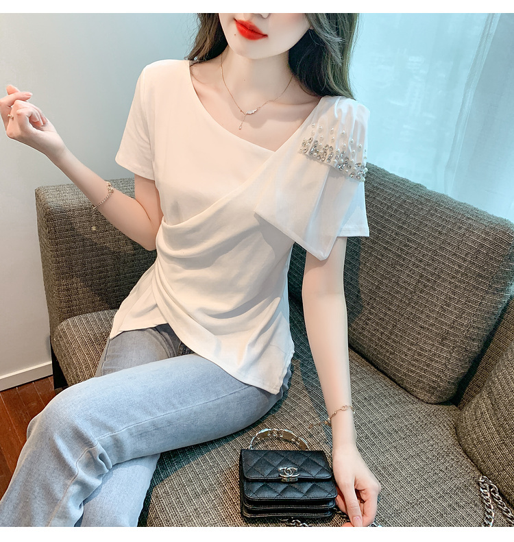 限量特惠|率性不規則重工釘珠斜領T恤(08H4165)
