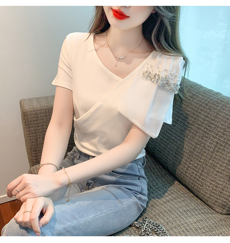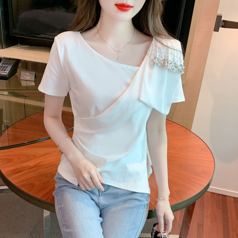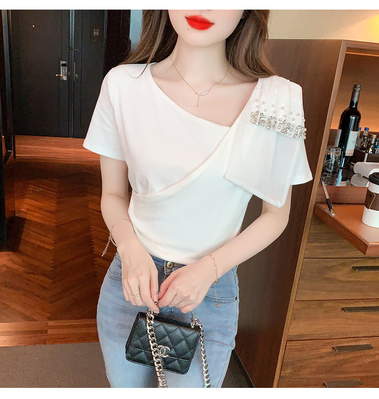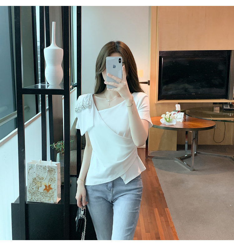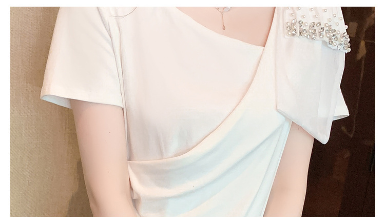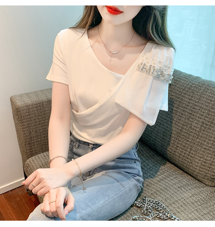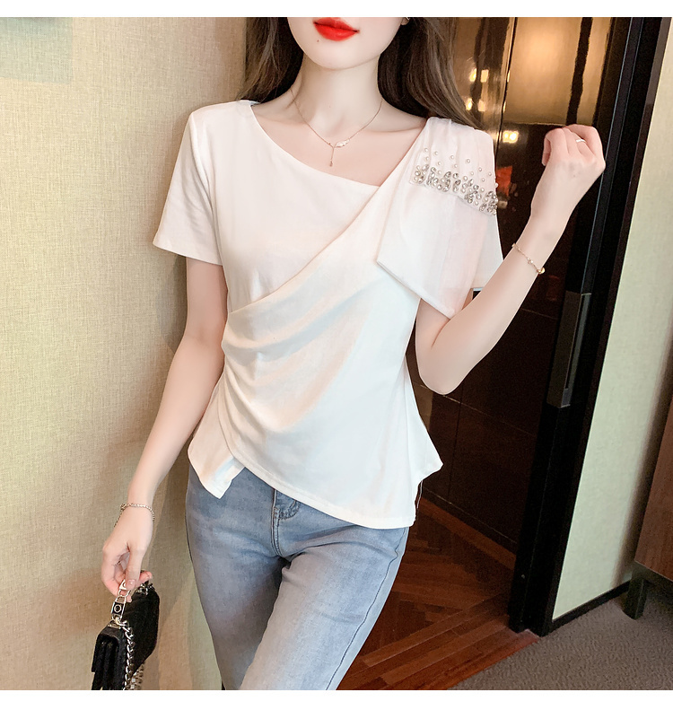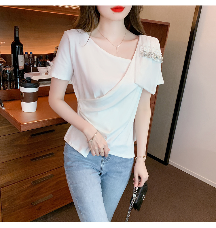 限量特惠|率性不規則重工釘珠斜領T恤(08H4165)