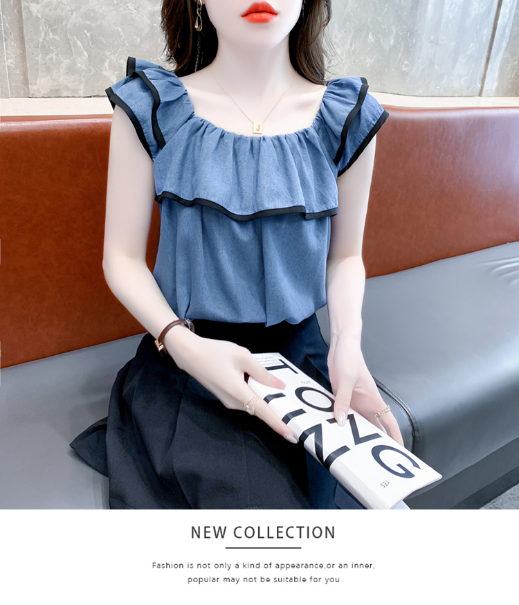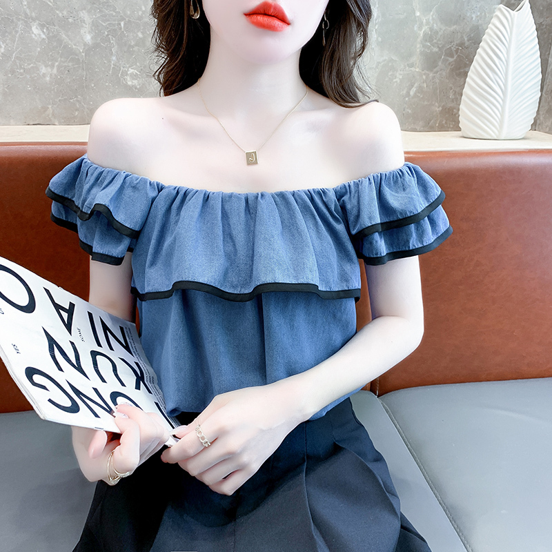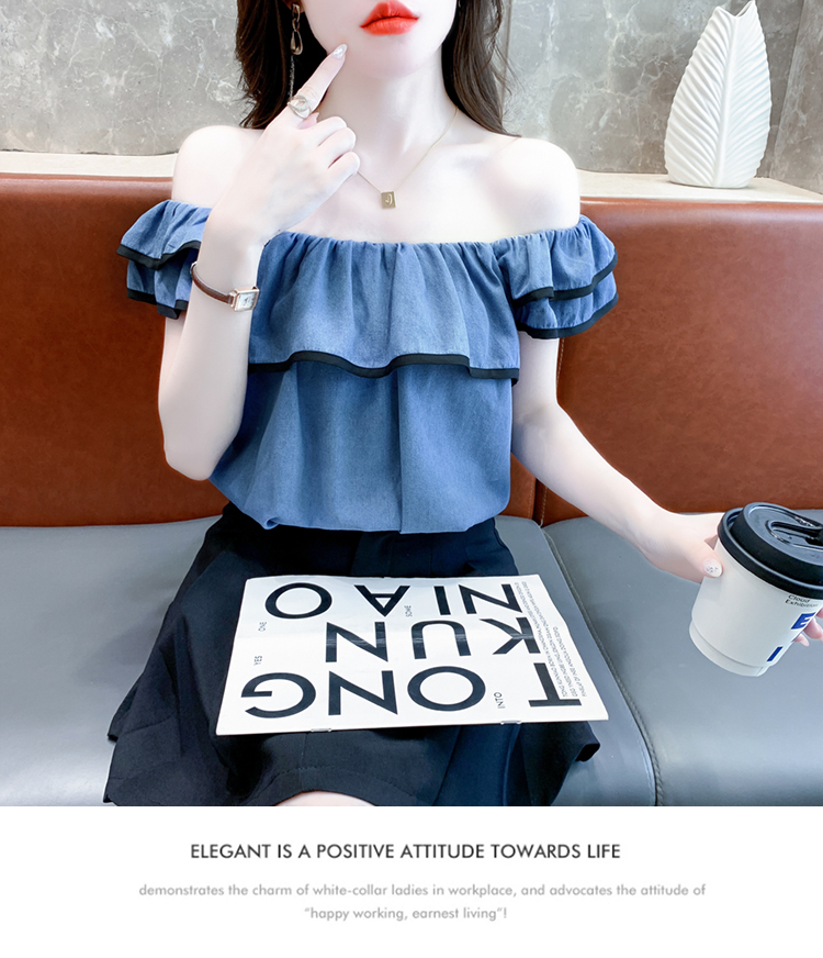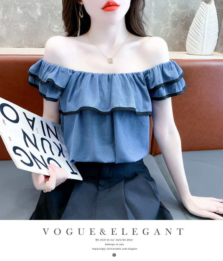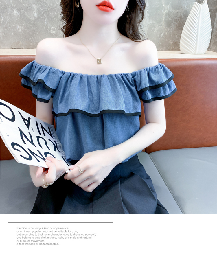 限量特惠|甜美撞色荷葉邊造型牛仔上衣(08H4185)