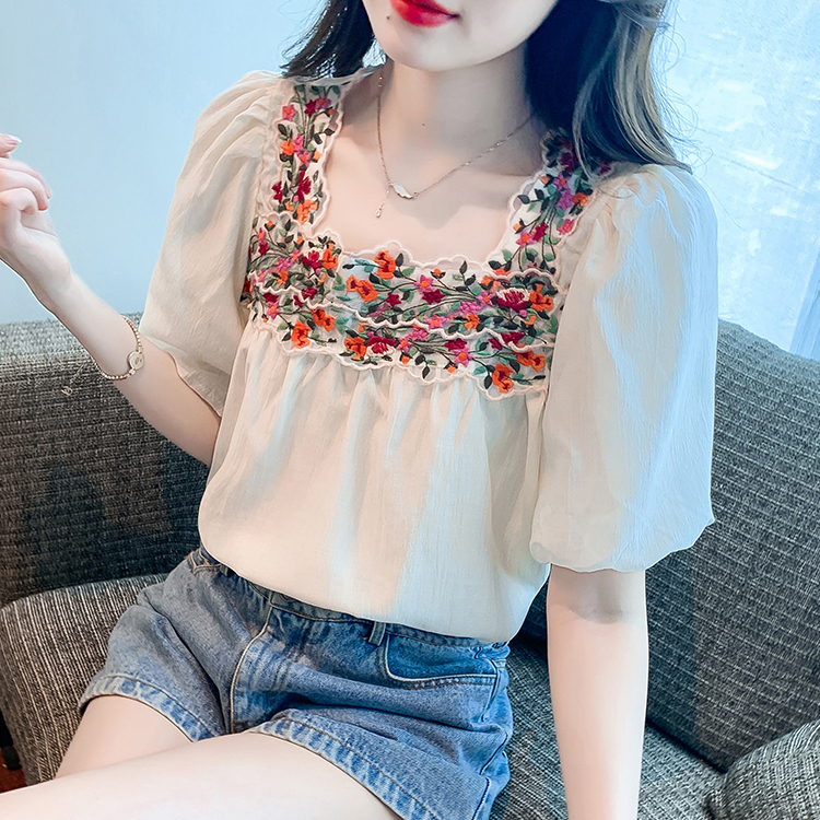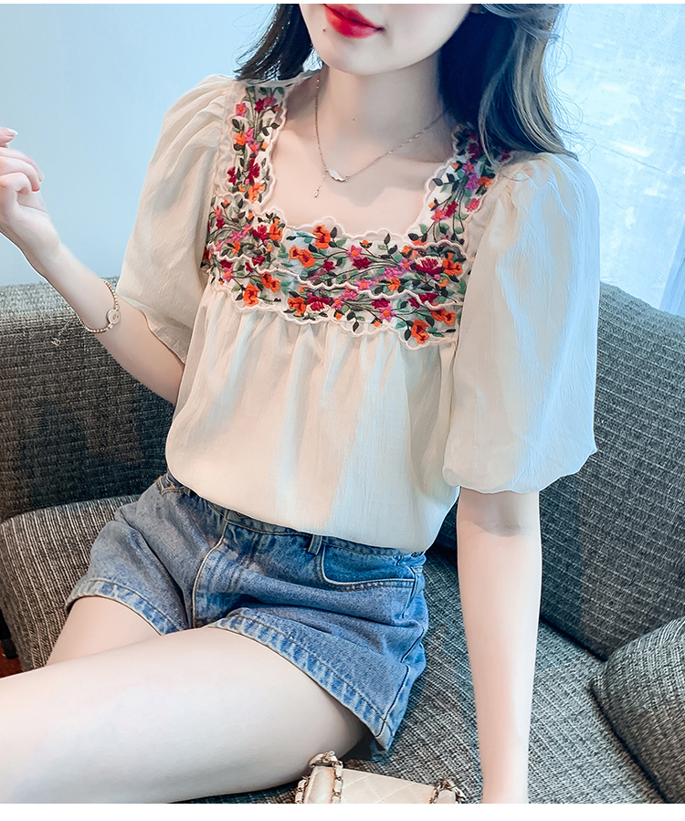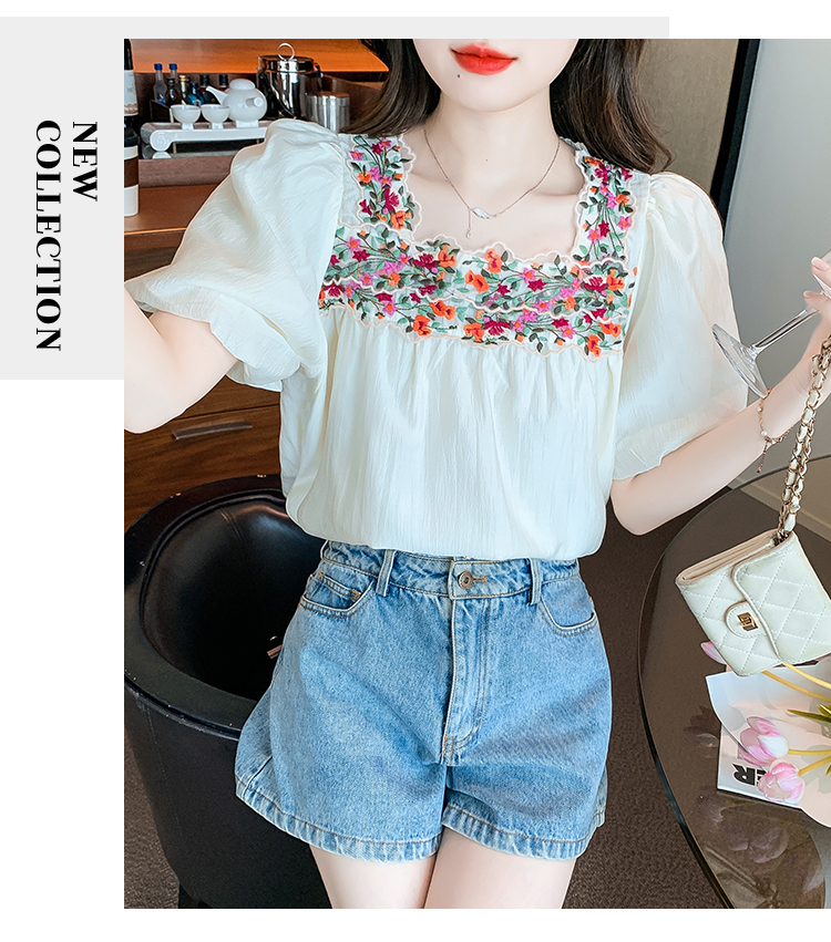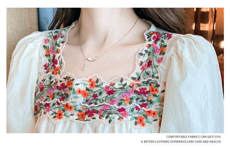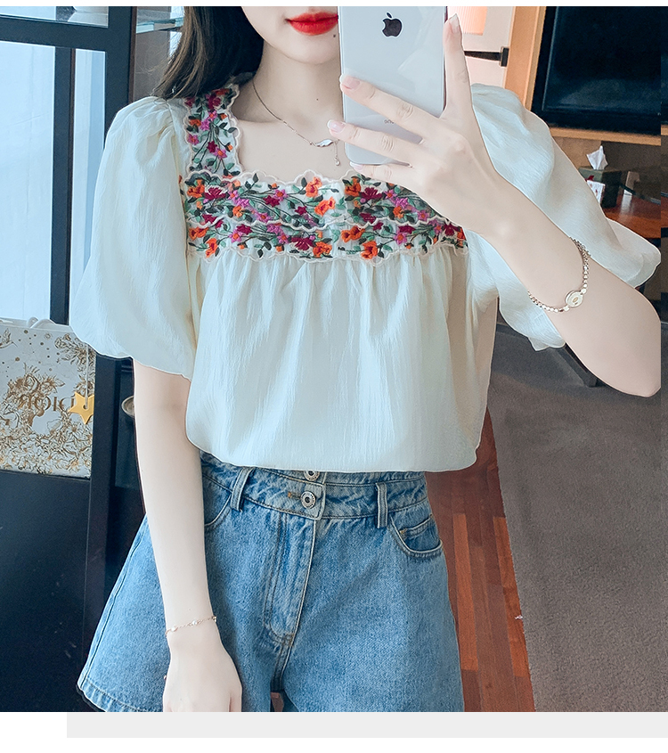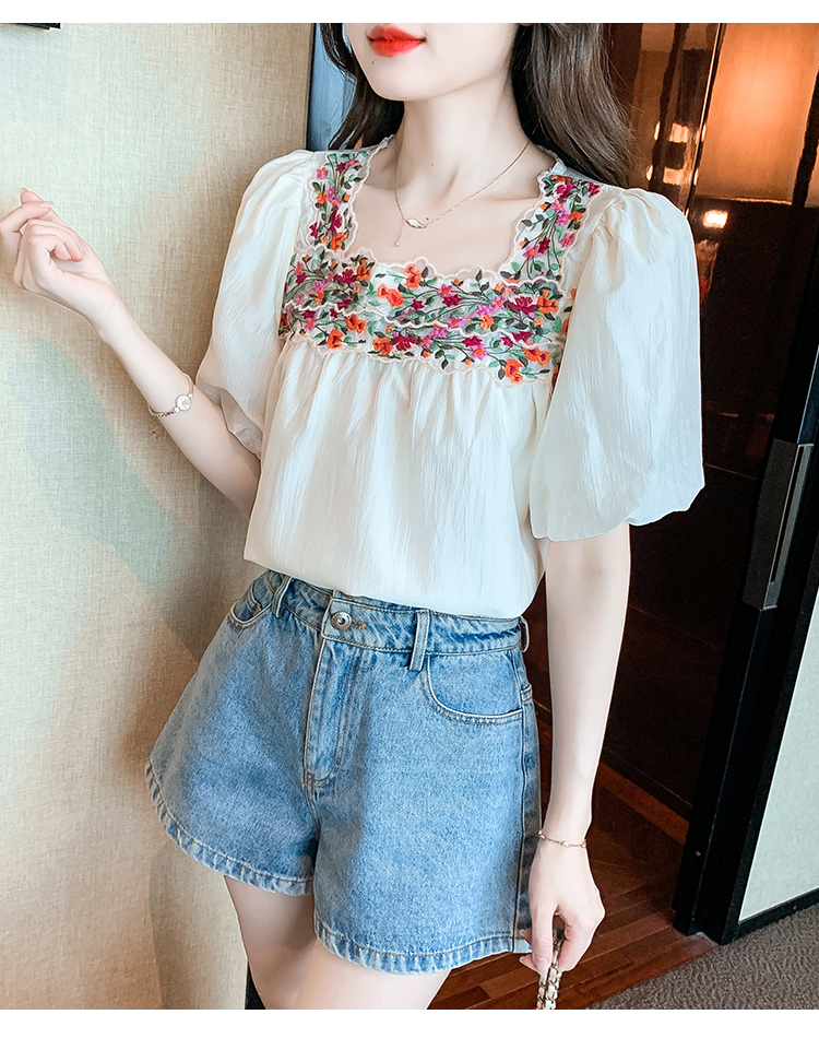 限量特惠|甜美舒適方領刺繡雪紡衫(08H4204)