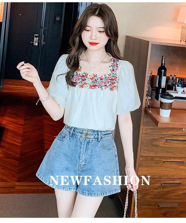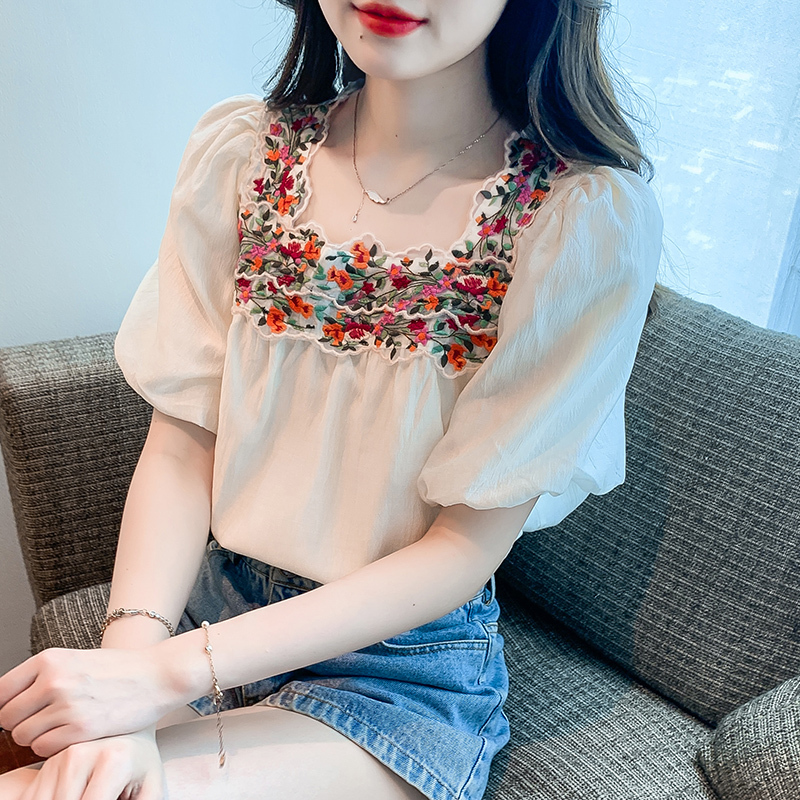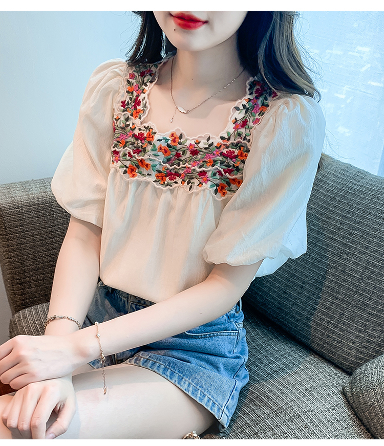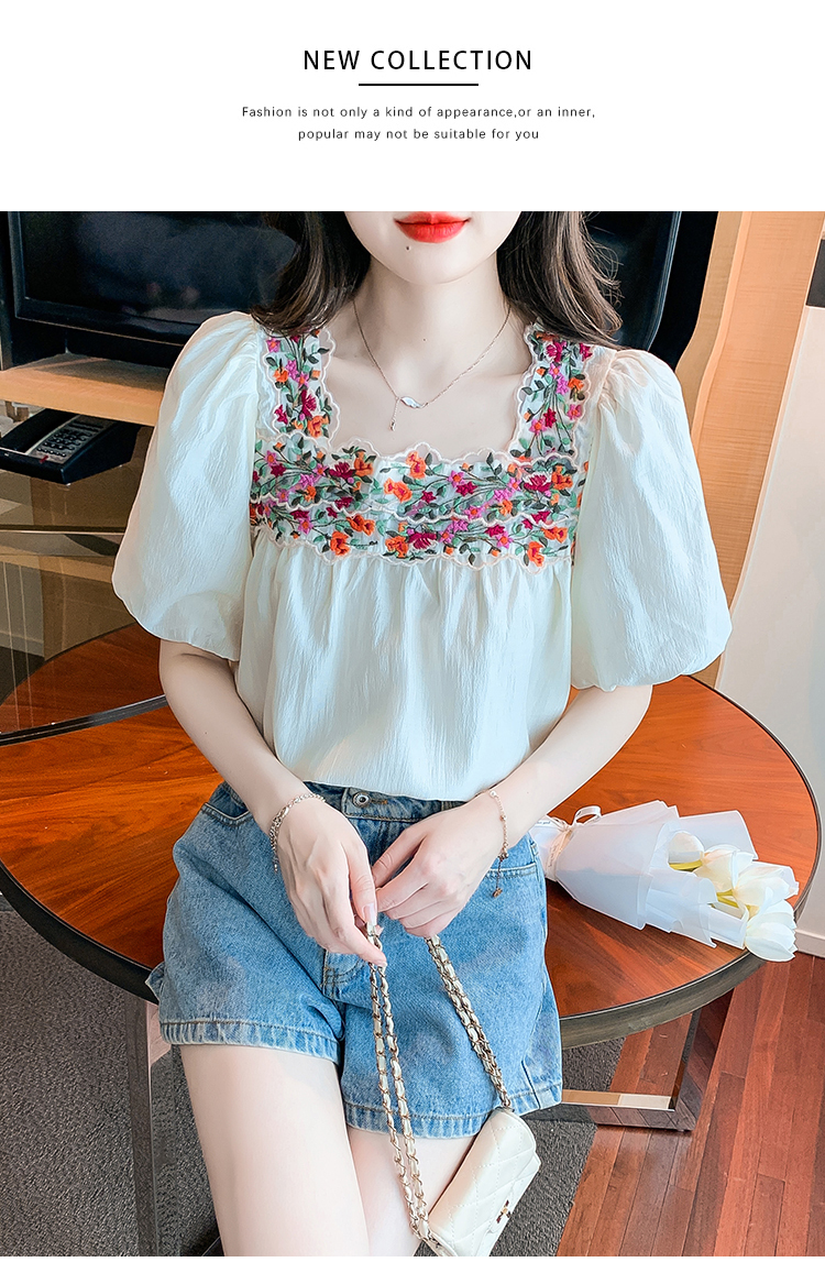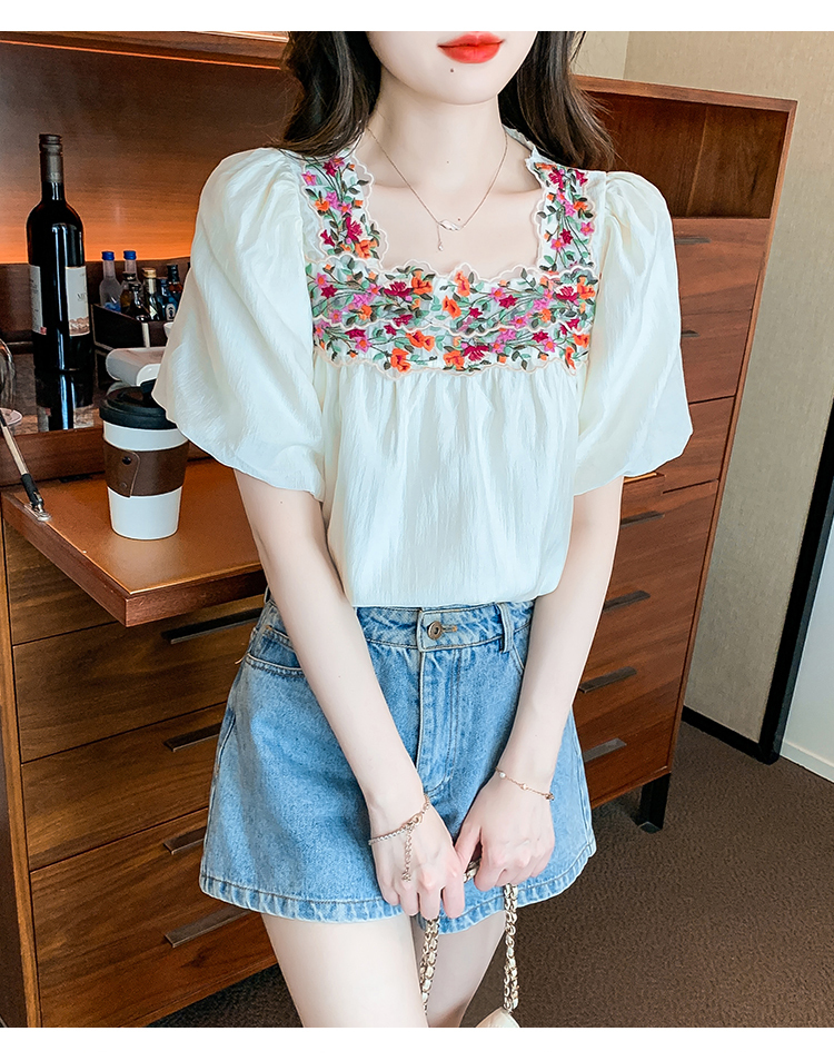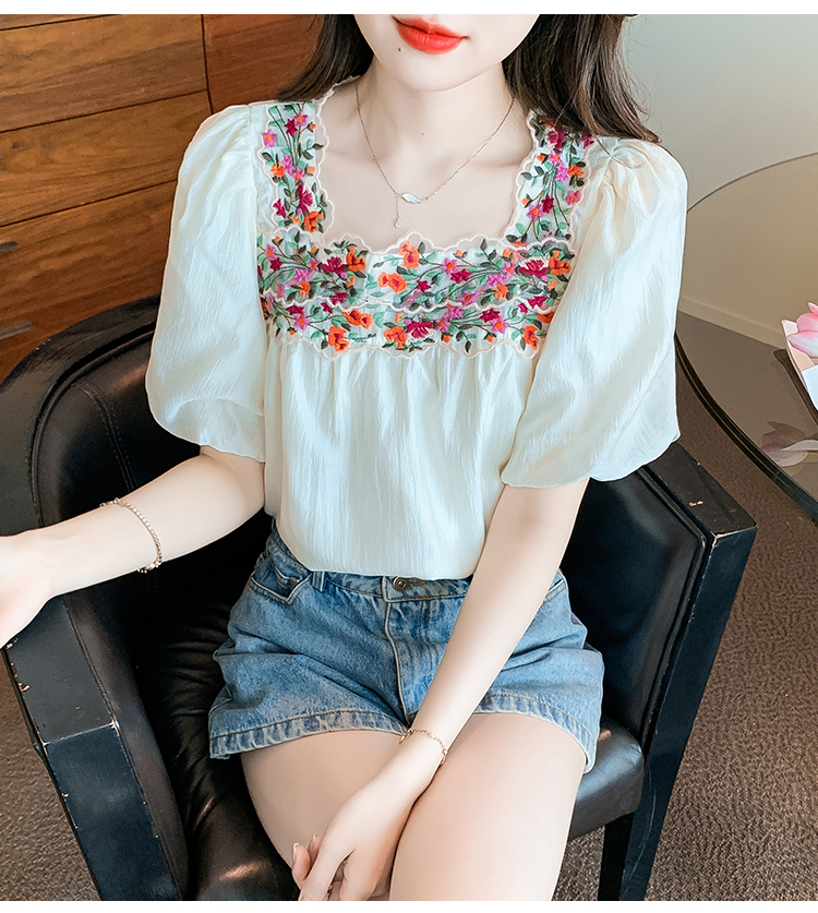 限量特惠|甜美舒適方領刺繡雪紡衫(08H4204)