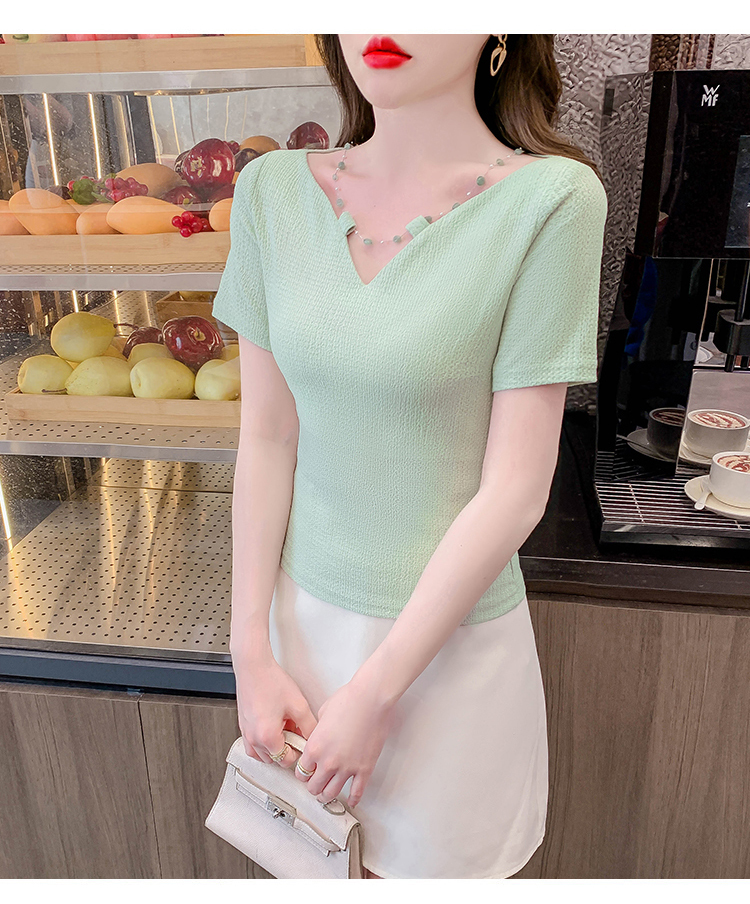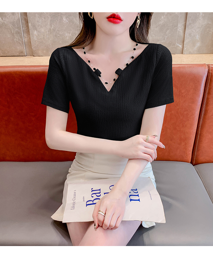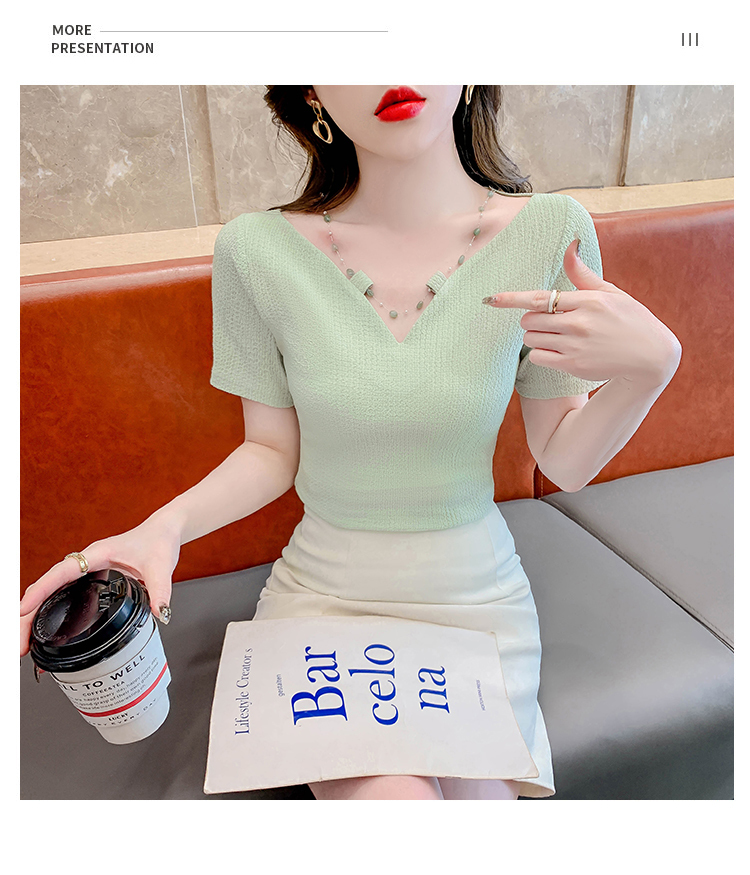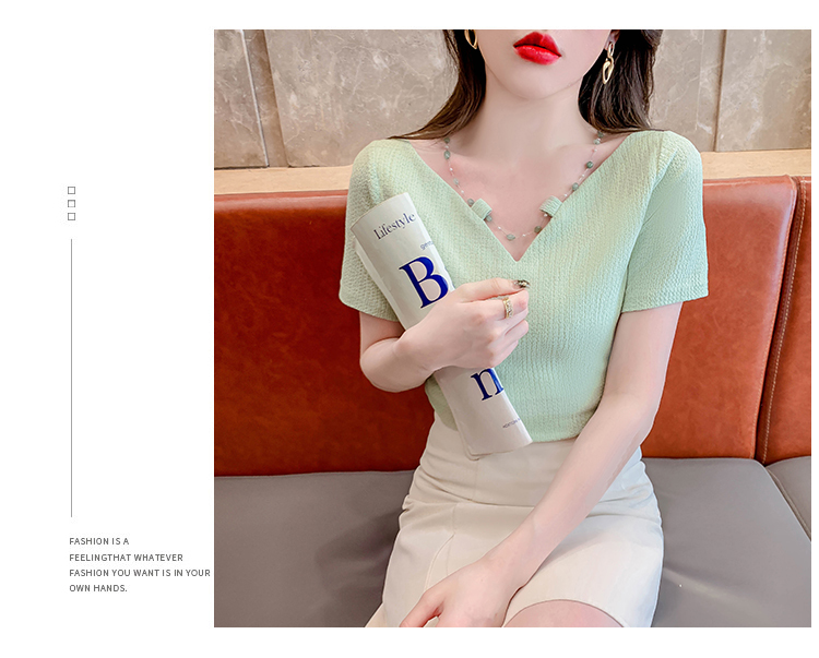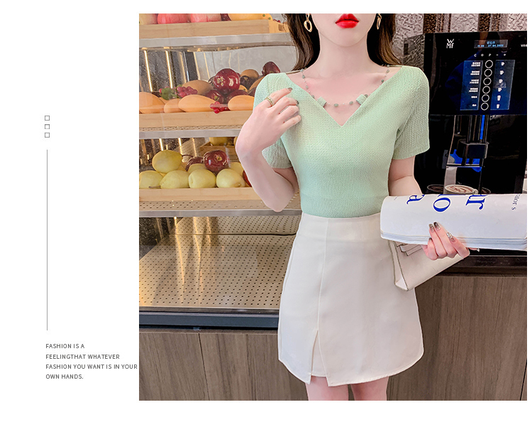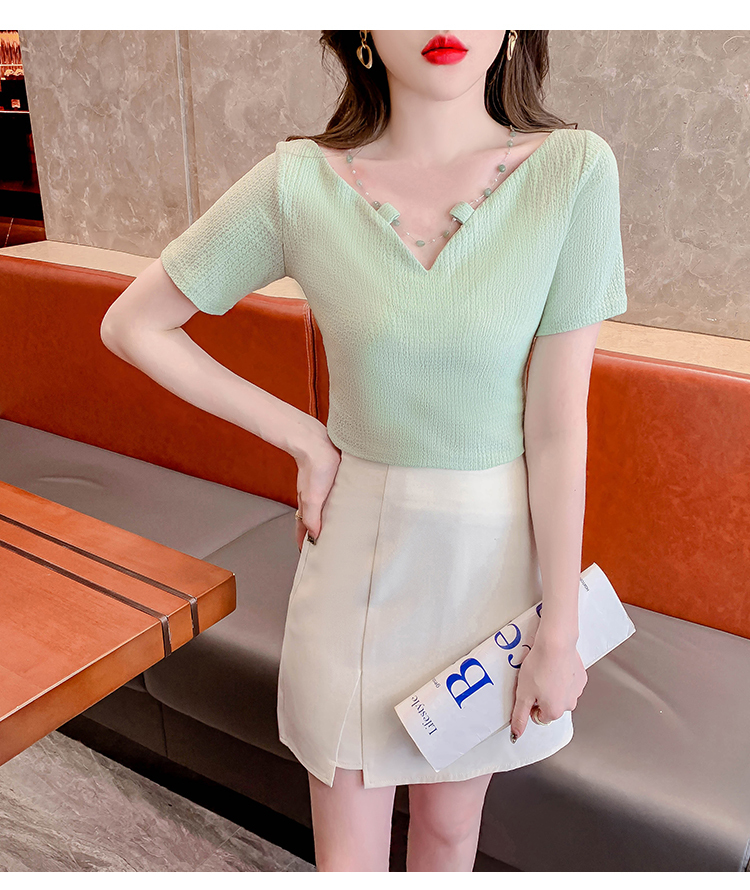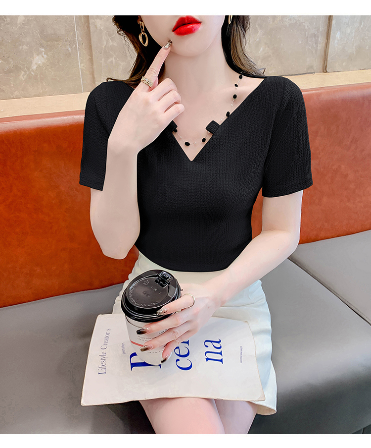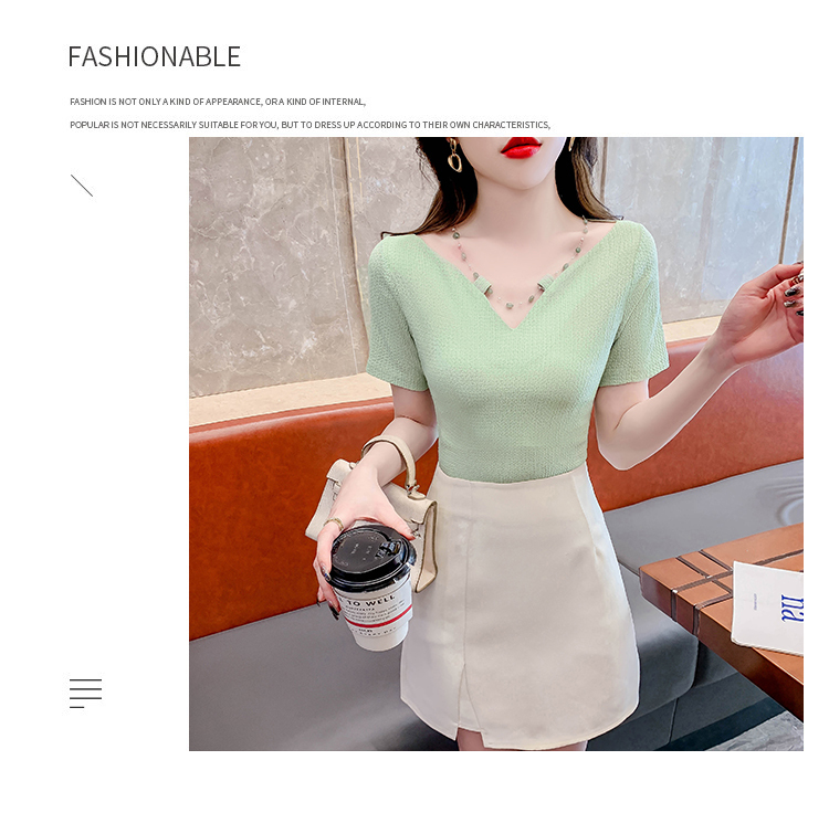 限量特惠|輕熟微性感V領鍊條造型上衣-2色(08H4225)
