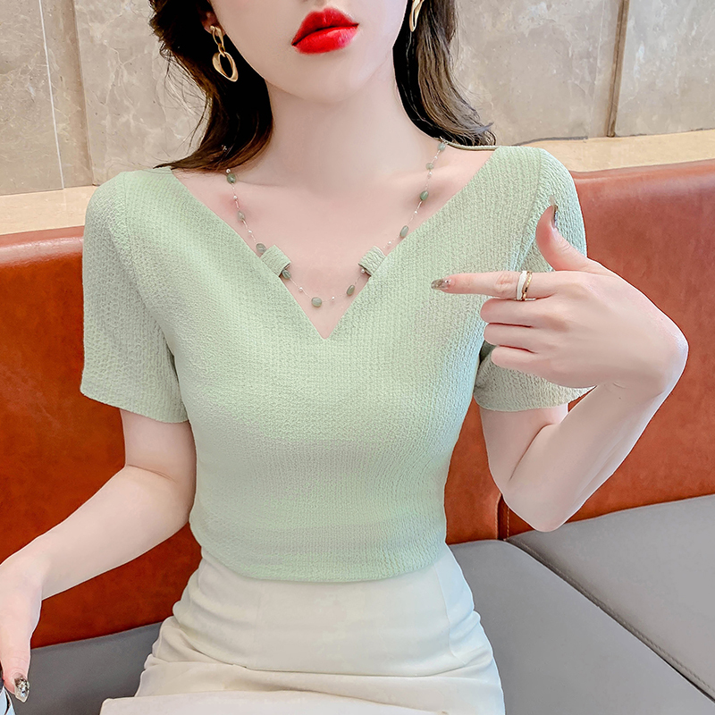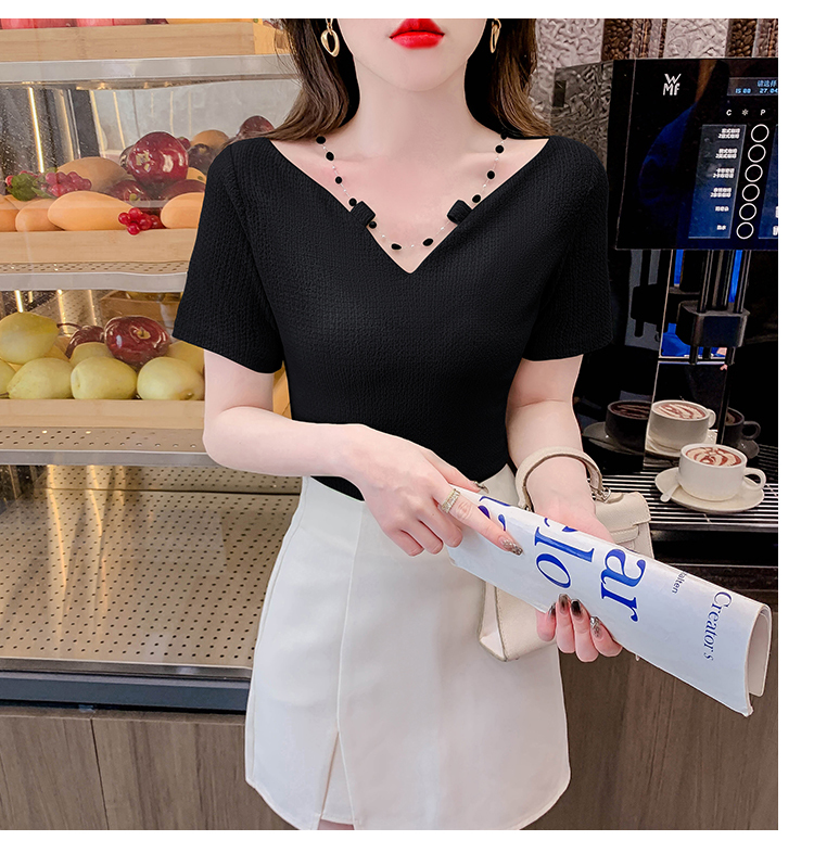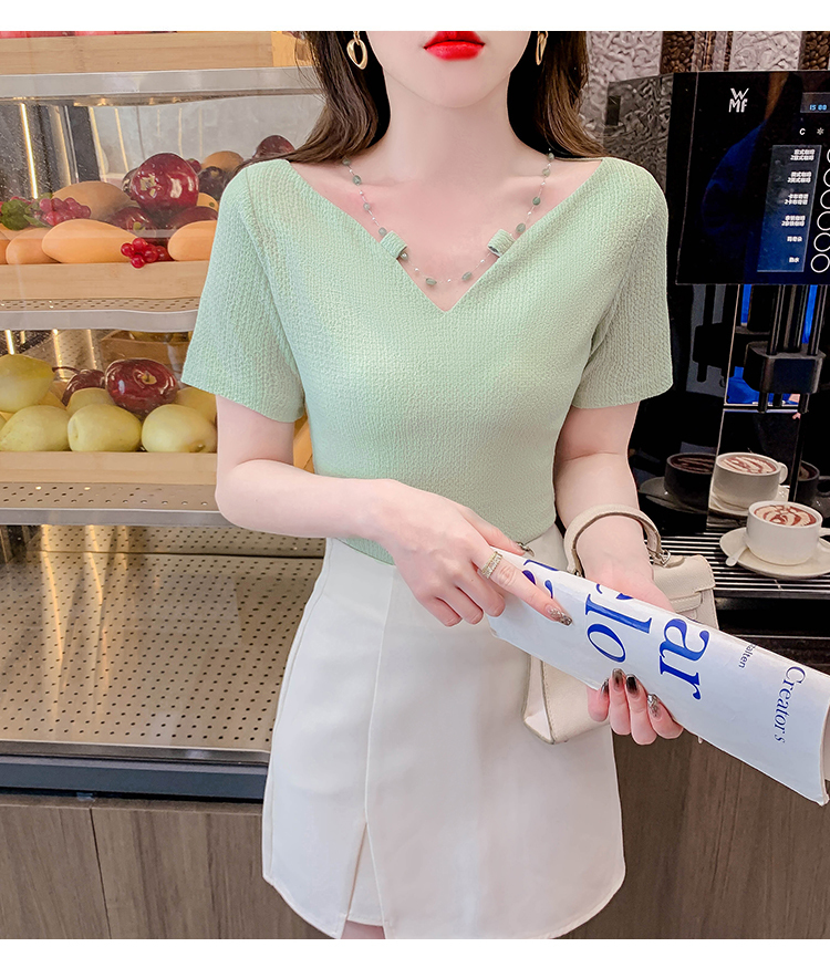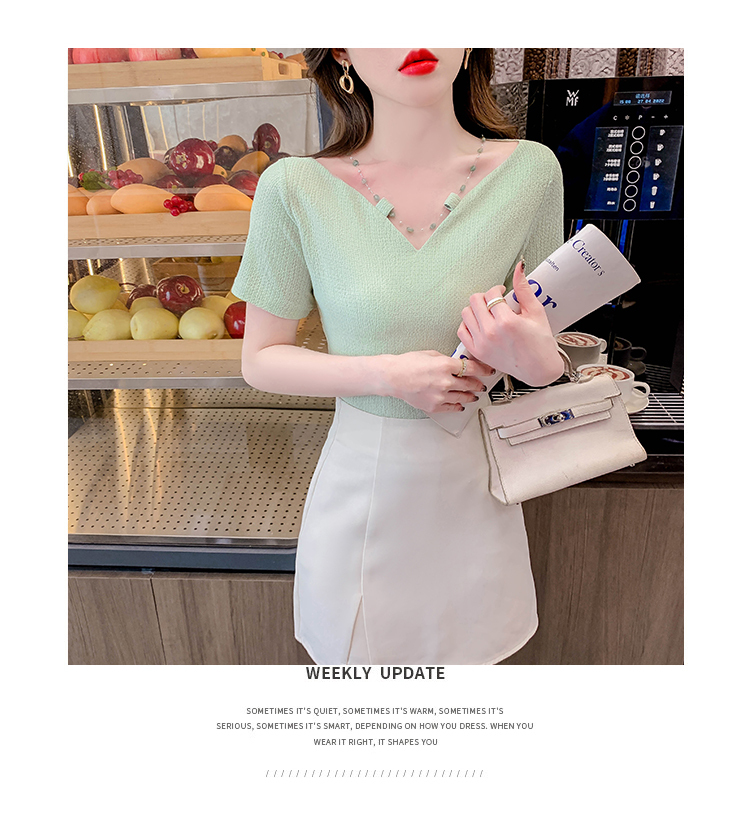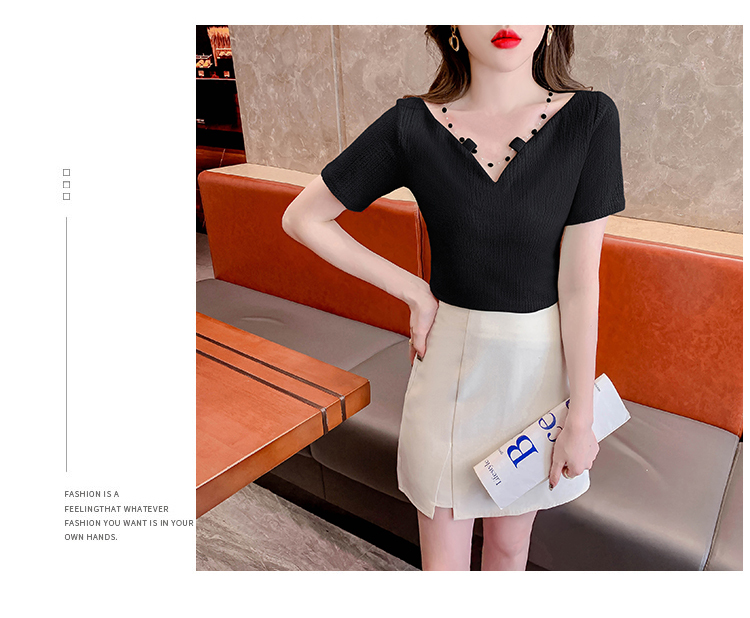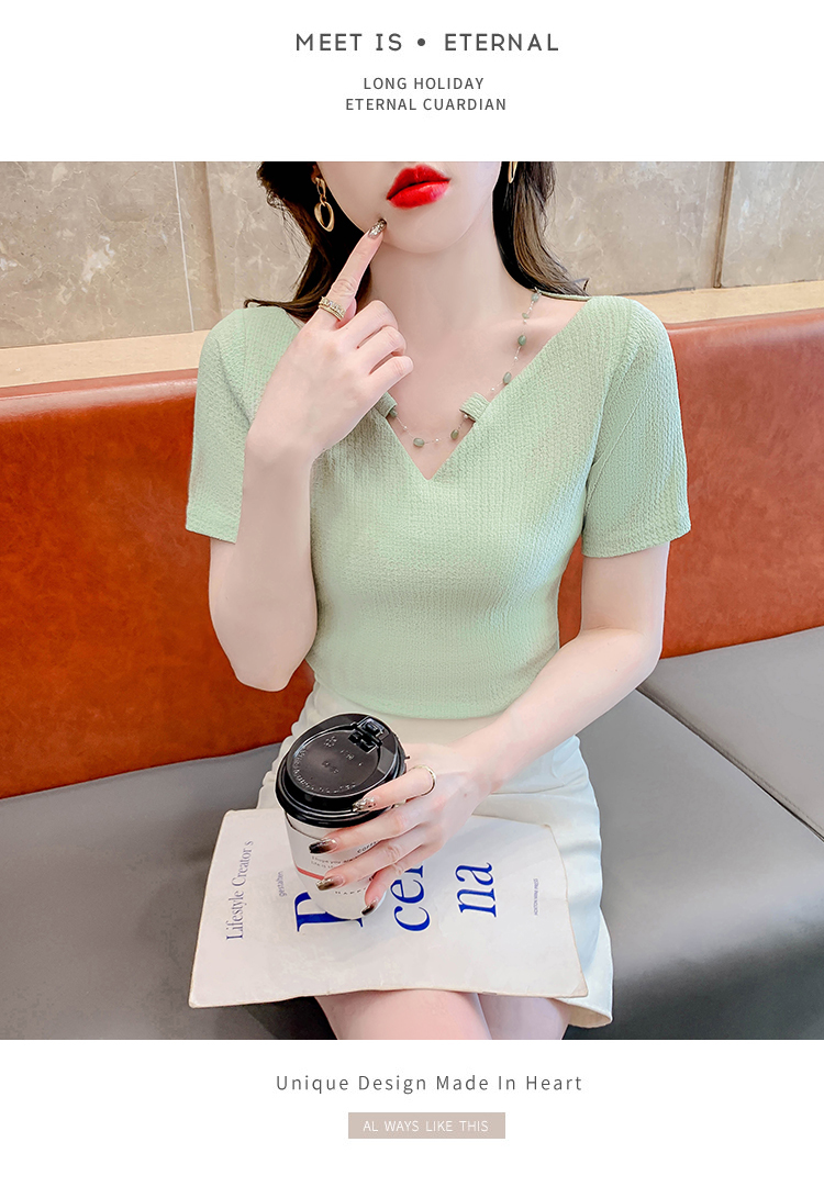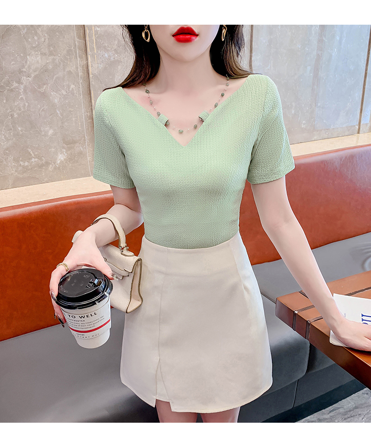 限量特惠|輕熟微性感V領鍊條造型上衣-2色(08H4225)