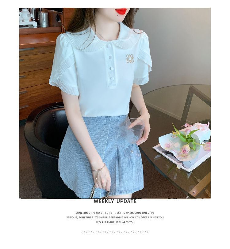 限量特惠|甜美減齡百褶造型翻領上衣(08H4226)
