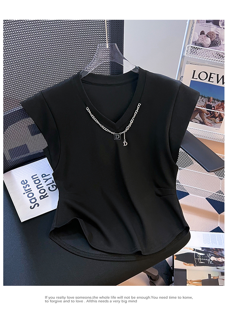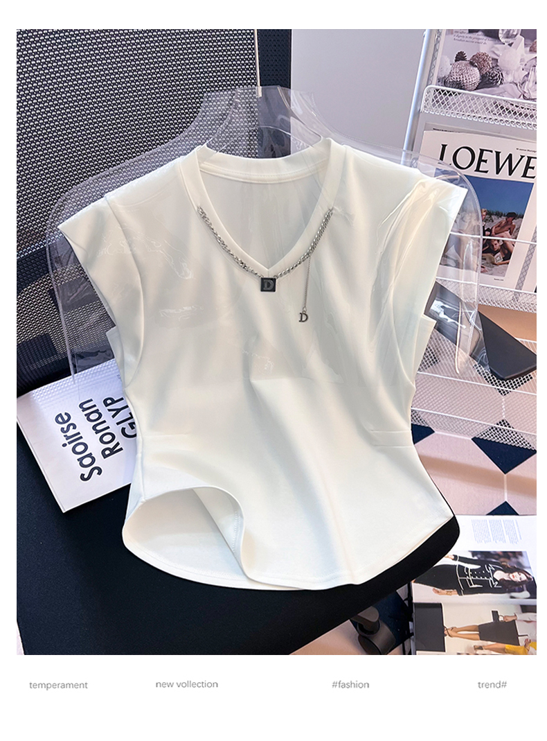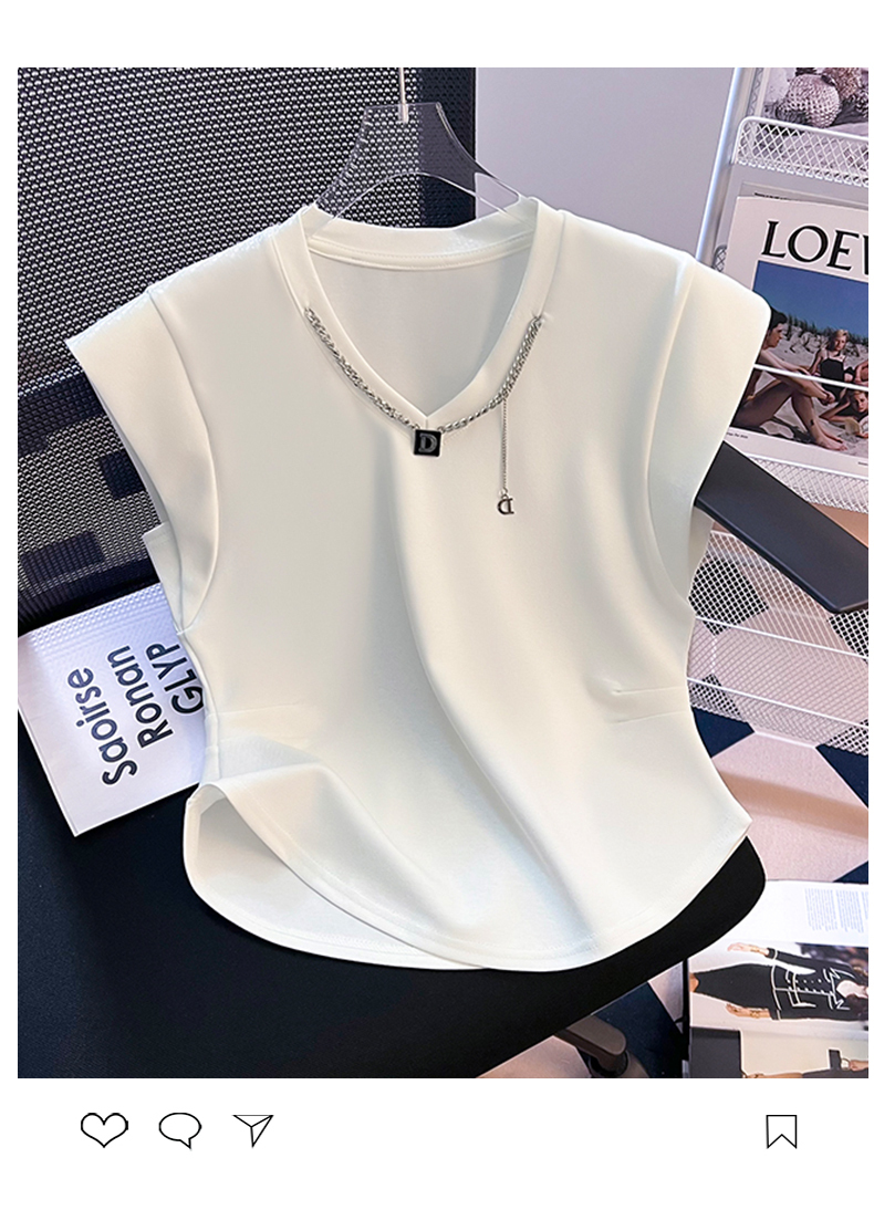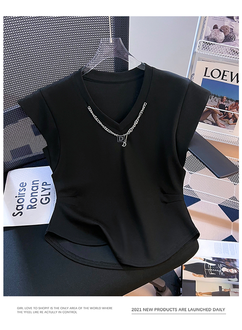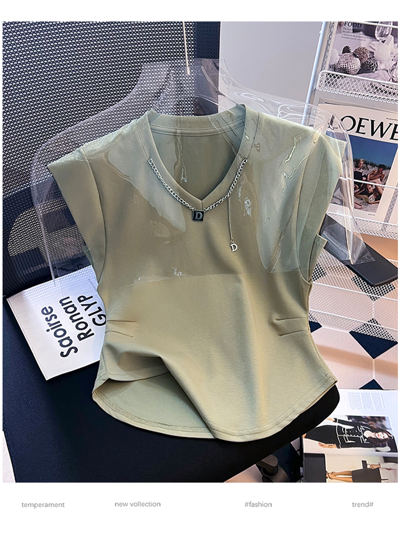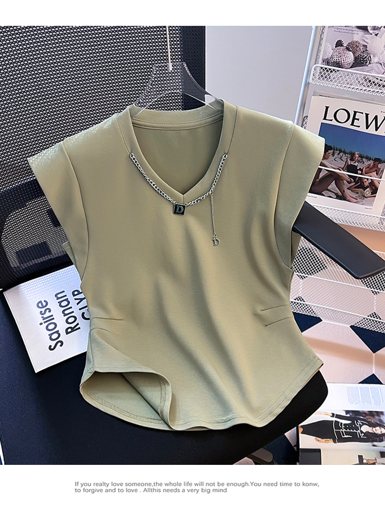 限量特惠|舒適百搭V領鏈條不規則褶皺收腰T恤-3色(08H4294)