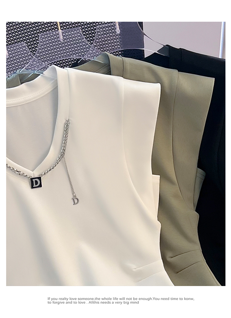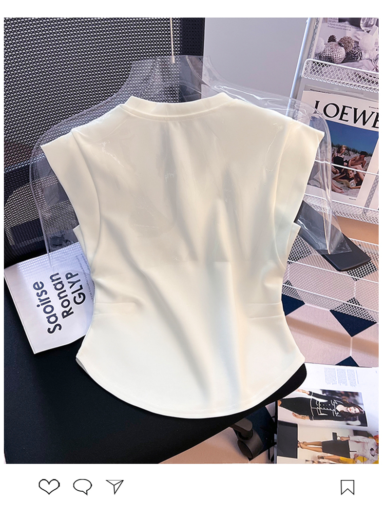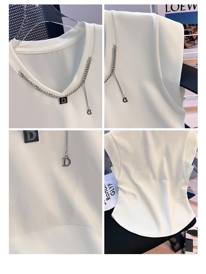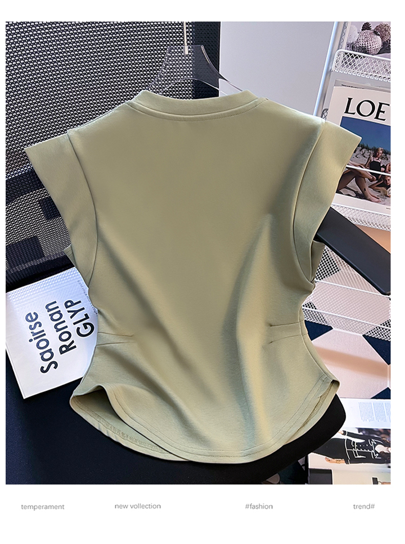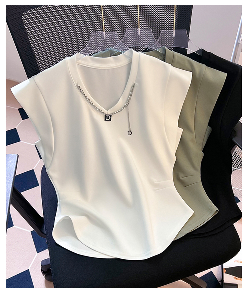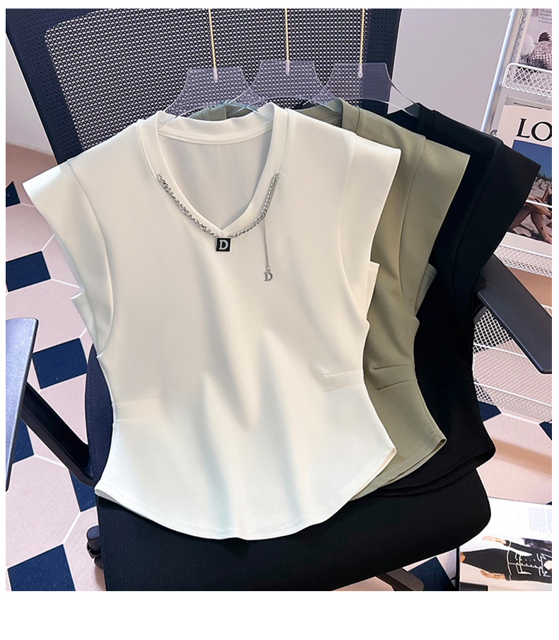限量特惠|舒適百搭V領鏈條不規則褶皺收腰T恤-3色(08H4294)