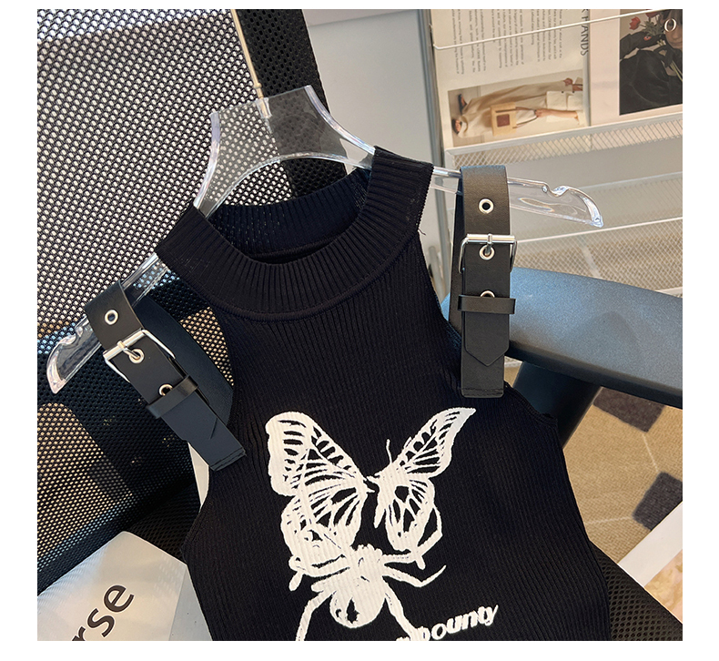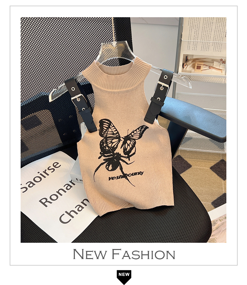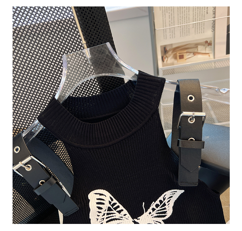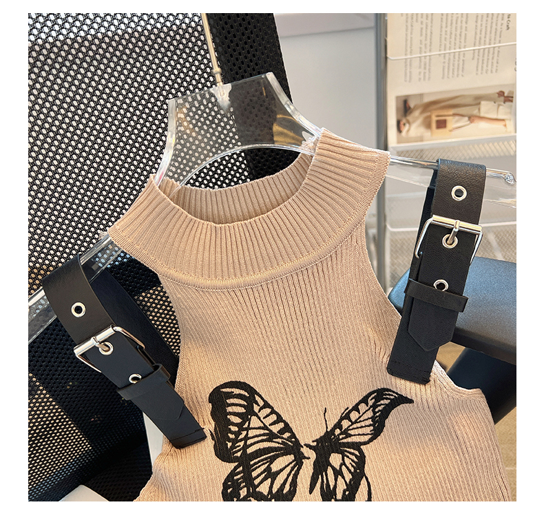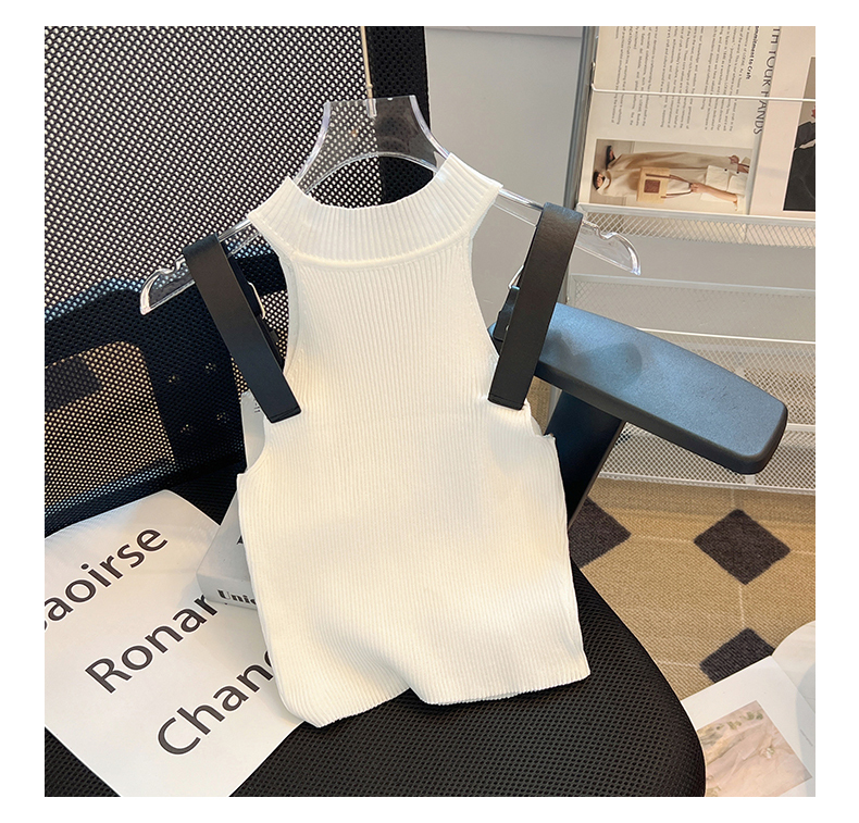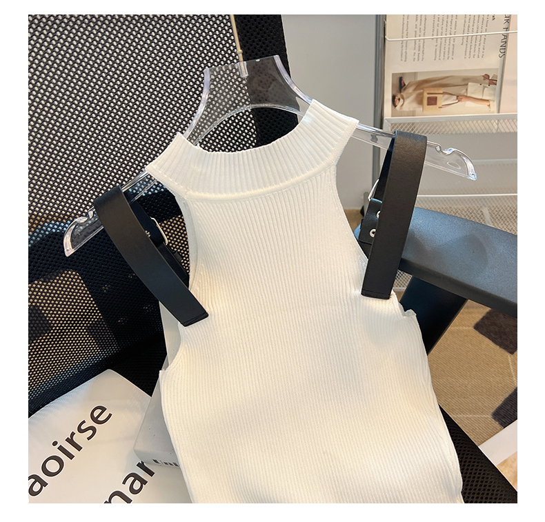限量特惠|率性美式風皮革吊帶修身短款針織衫-3色(08H4328)