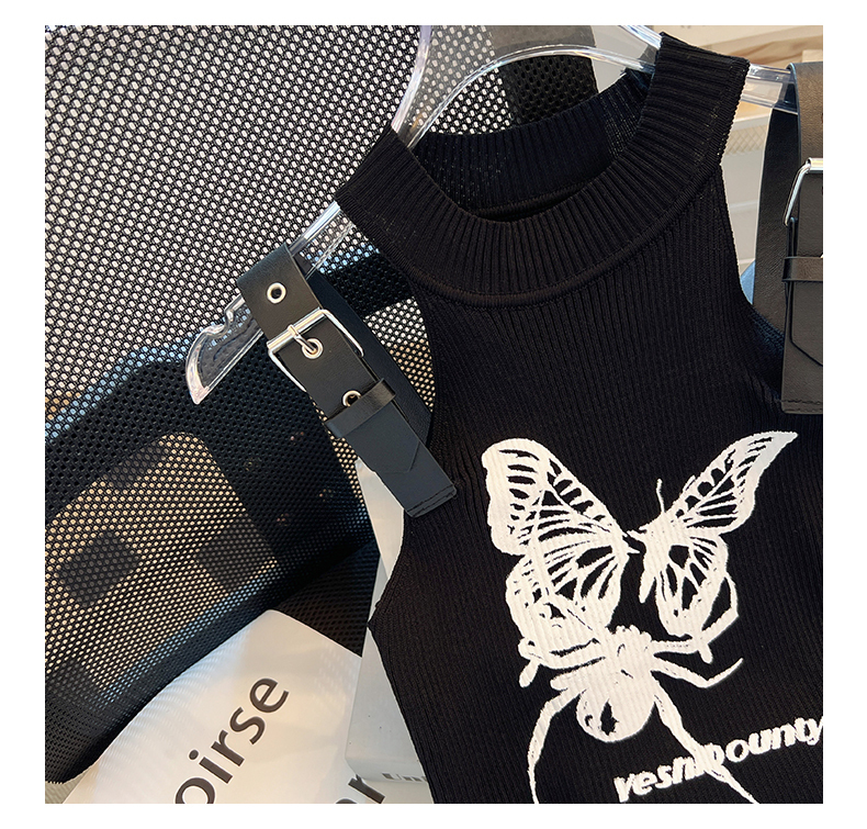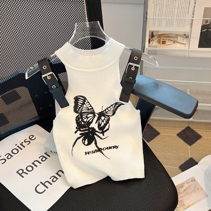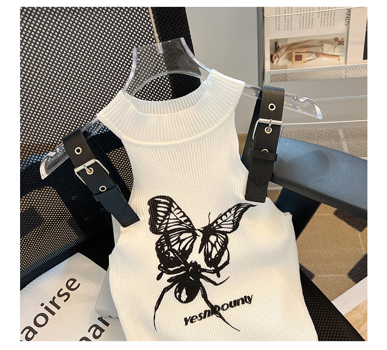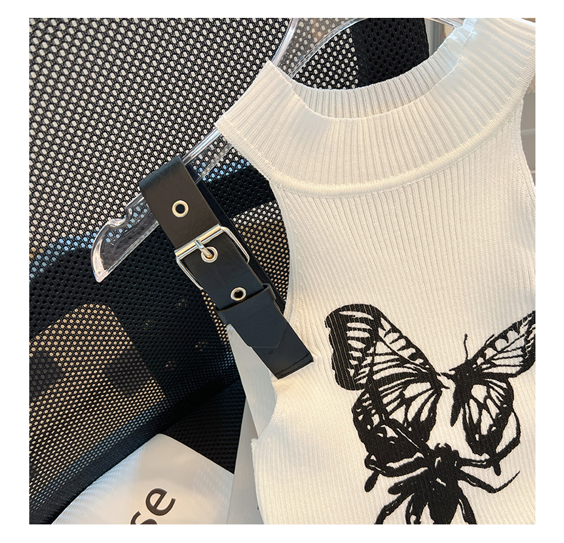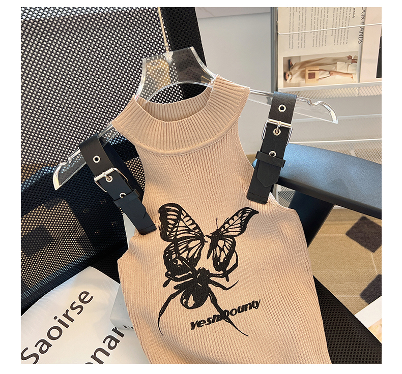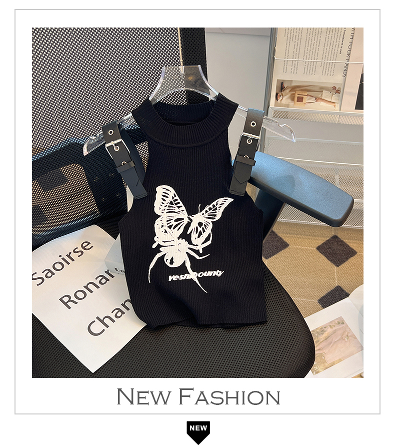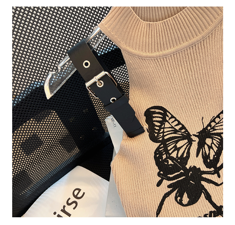 限量特惠|率性美式風皮革吊帶修身短款針織衫-3色(08H4328)
