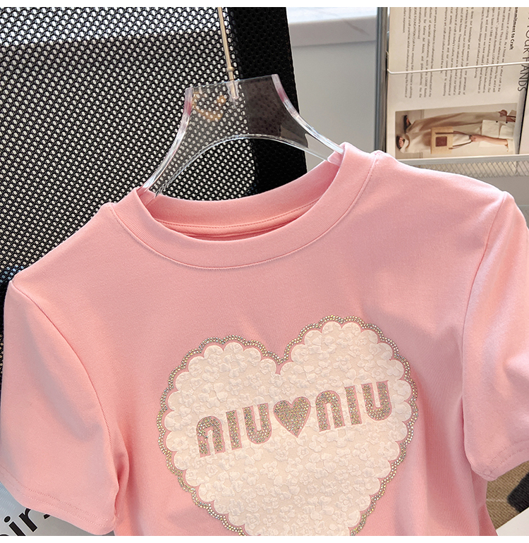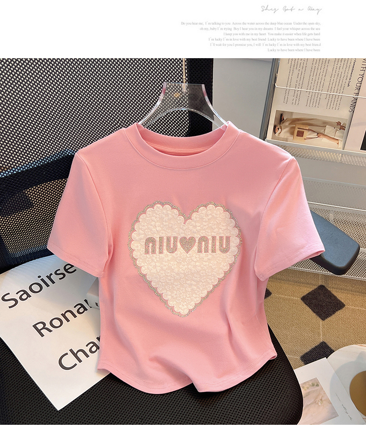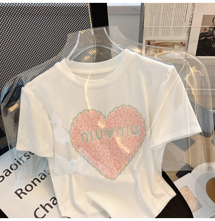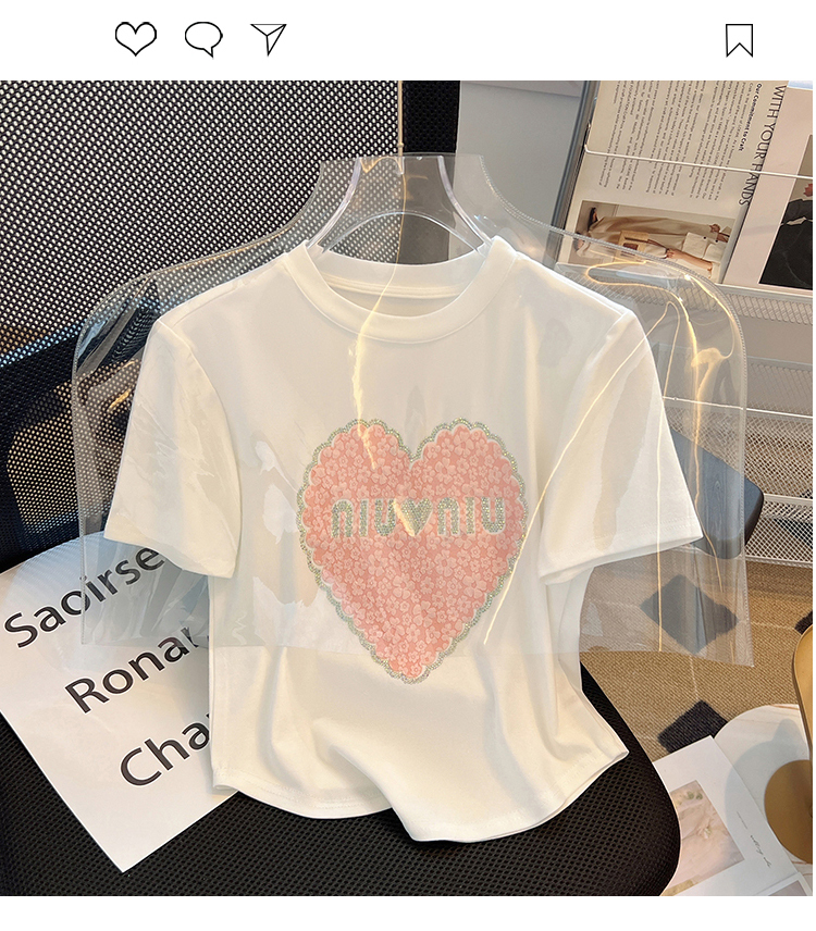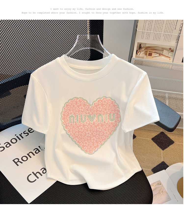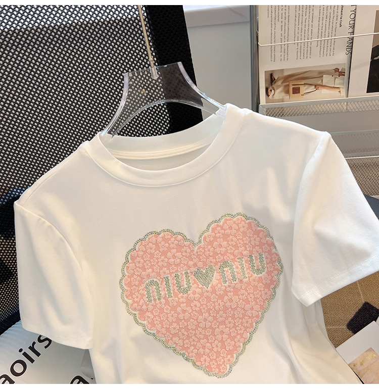 限量特惠|舒適百搭愛心燙鑽修身短款T恤-2色(08H4351)
