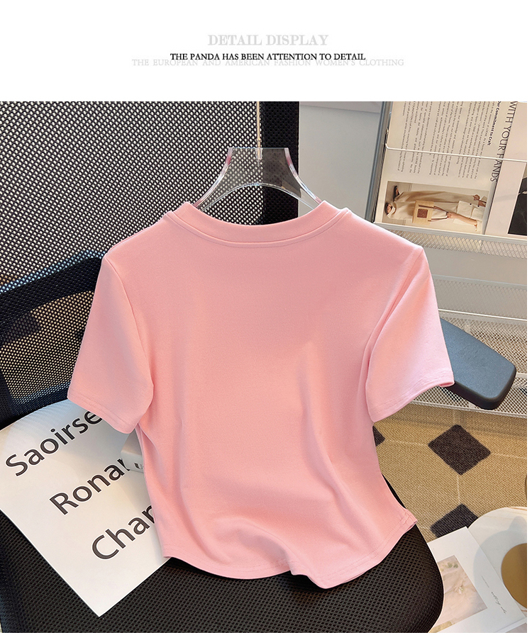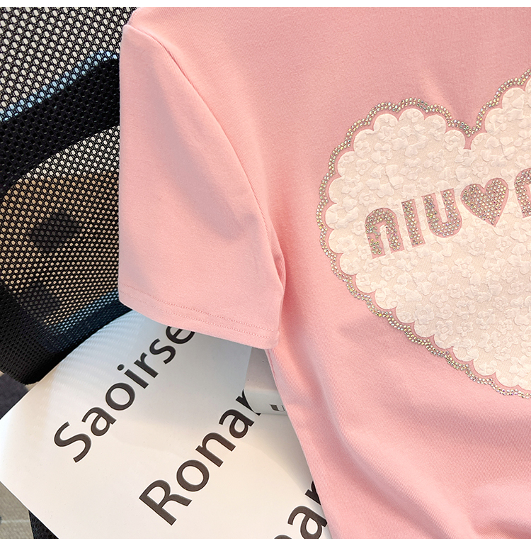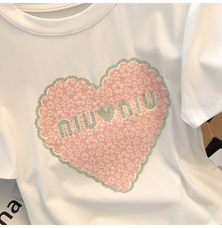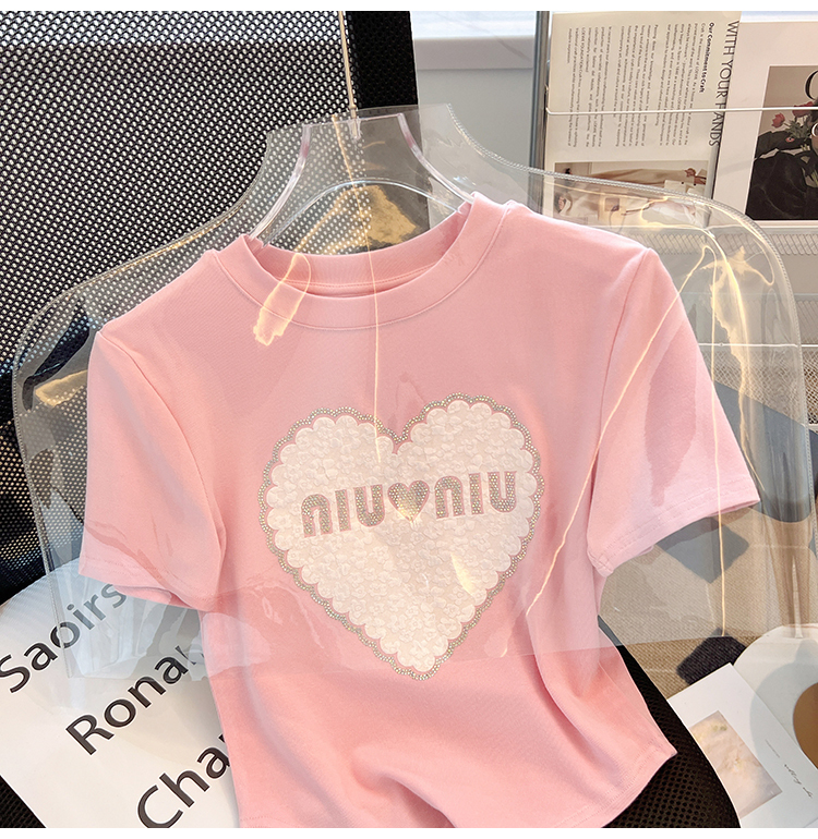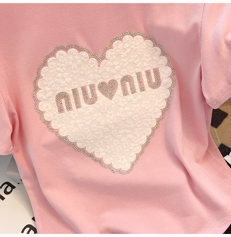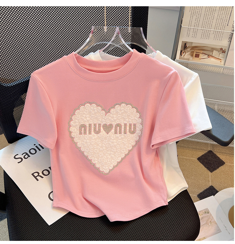 限量特惠|舒適百搭愛心燙鑽修身短款T恤-2色(08H4351)