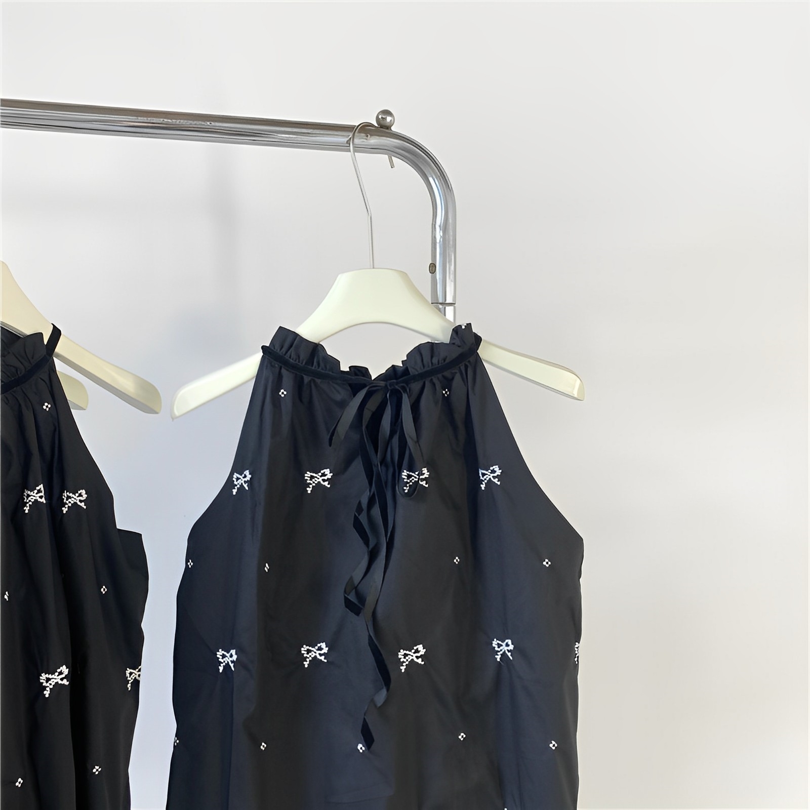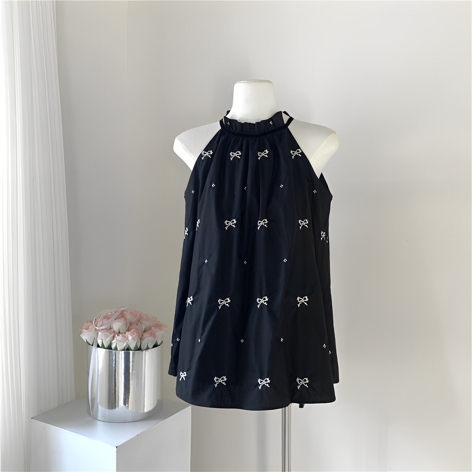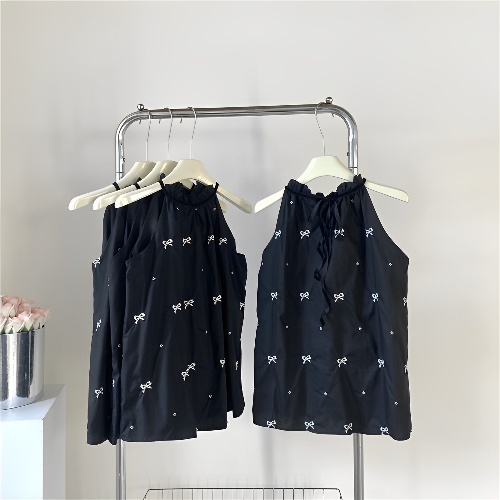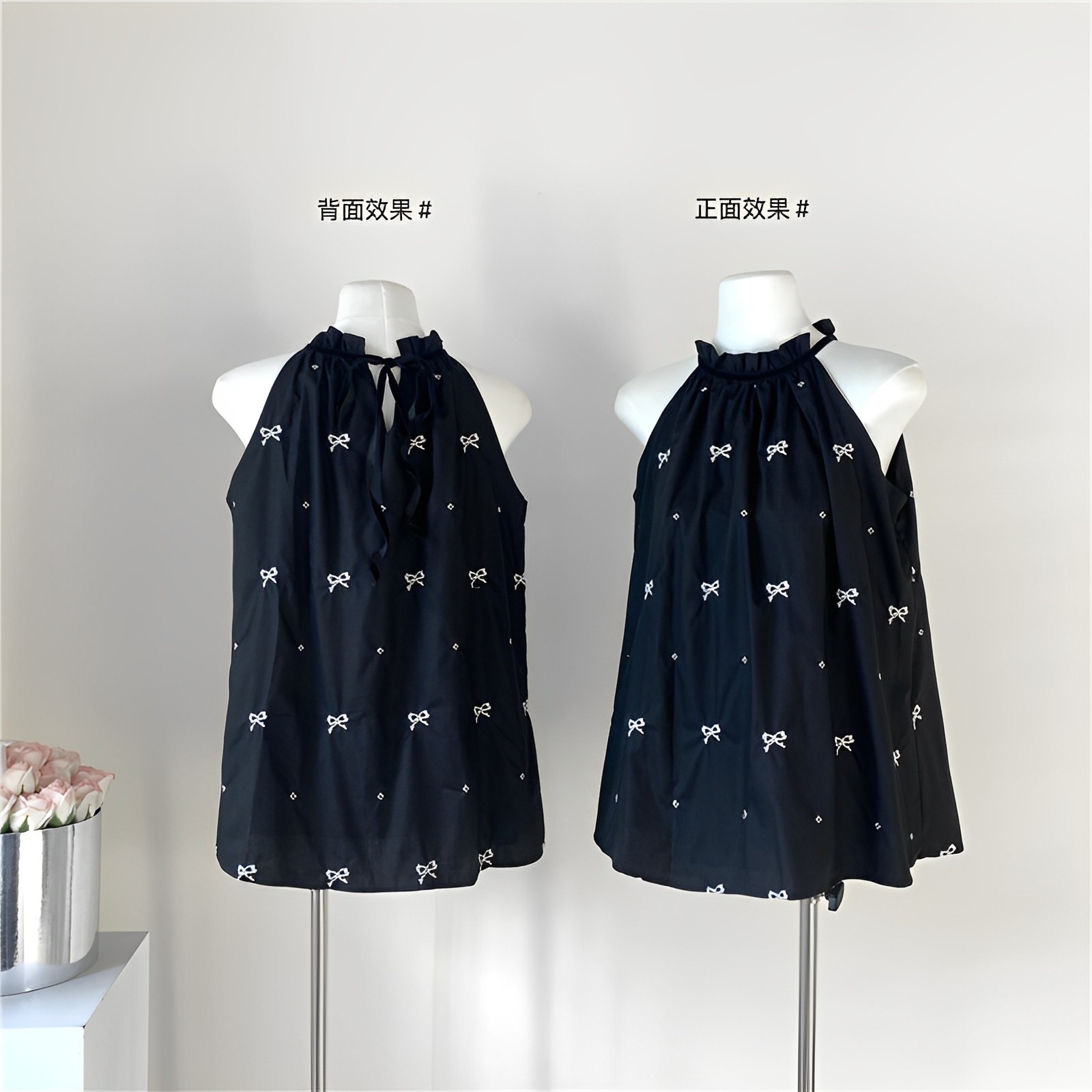 限量特惠|甜美知性刺繡蝴蝶結繞脖上衣(08H4382)
