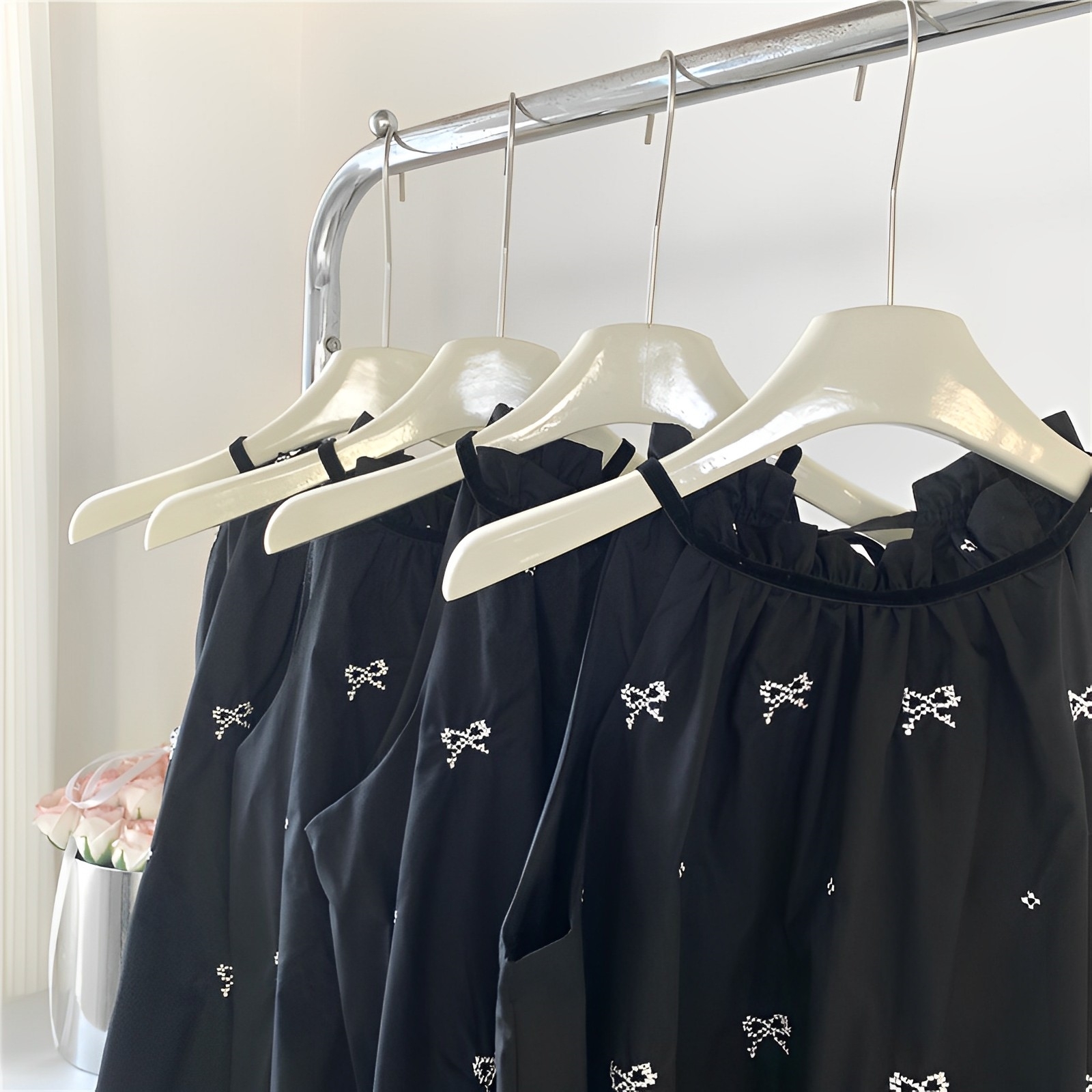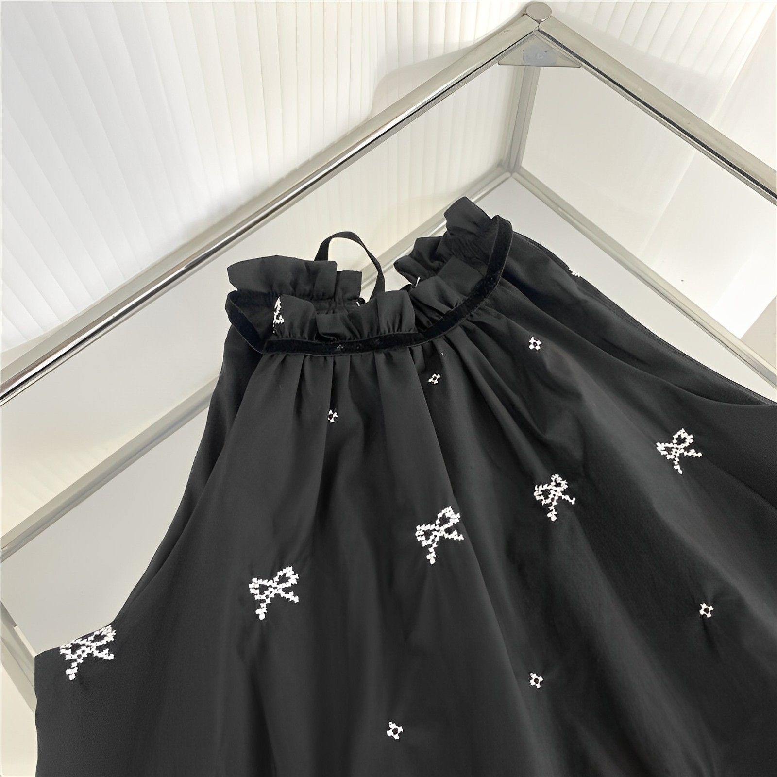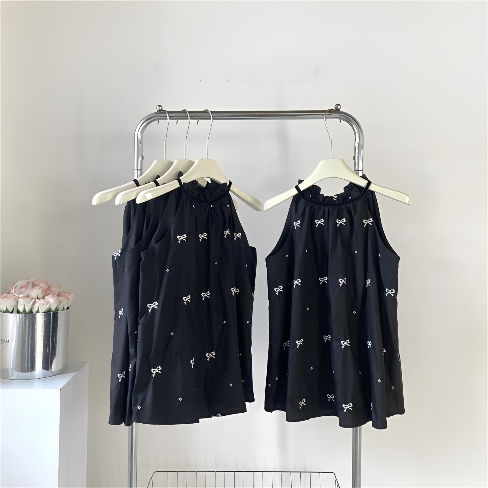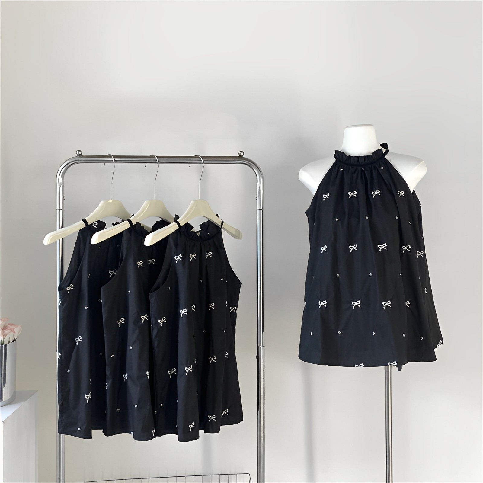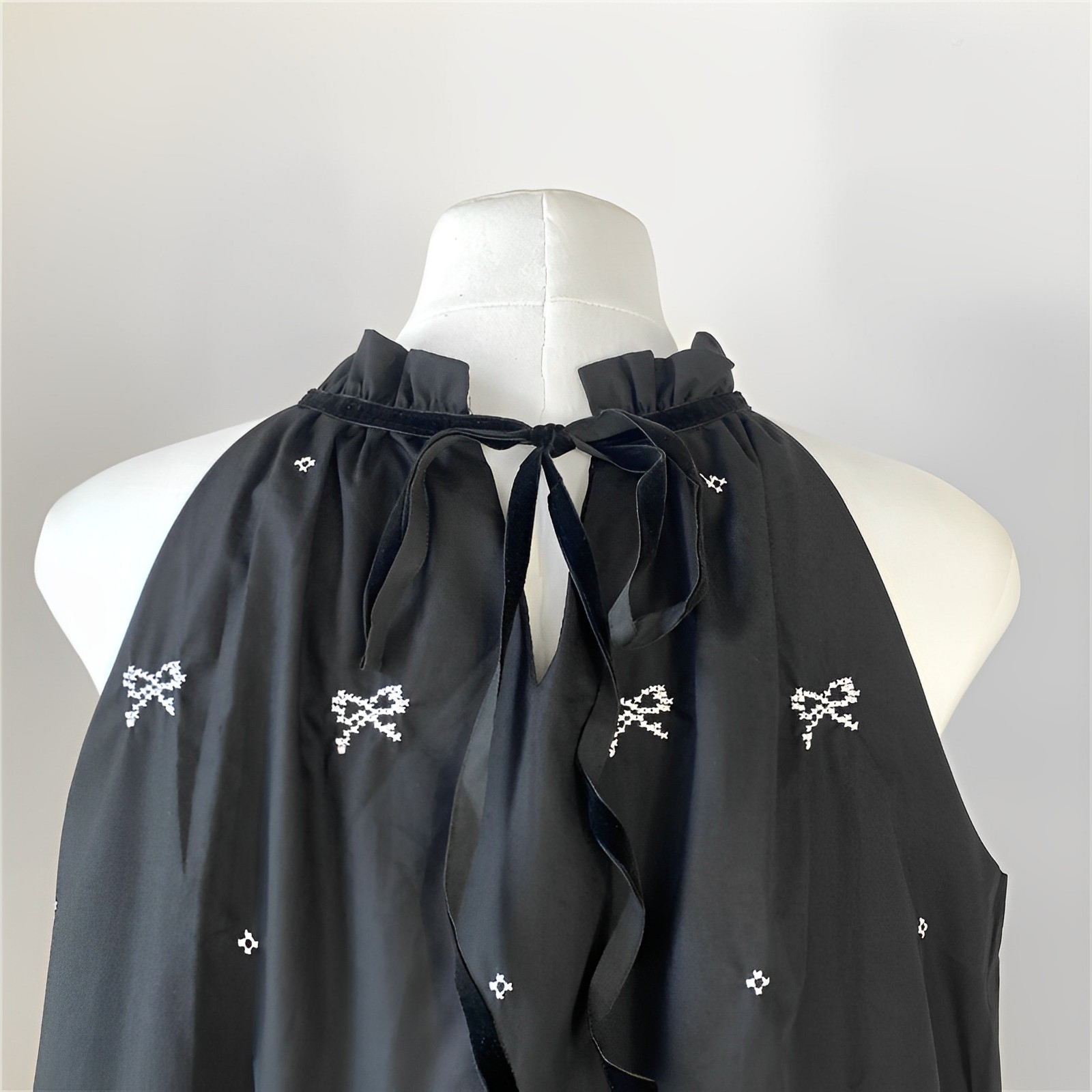 限量特惠|甜美知性刺繡蝴蝶結繞脖上衣(08H4382)