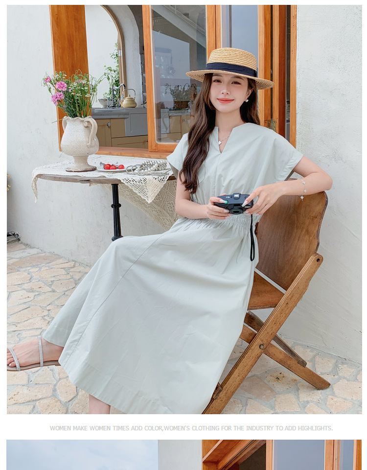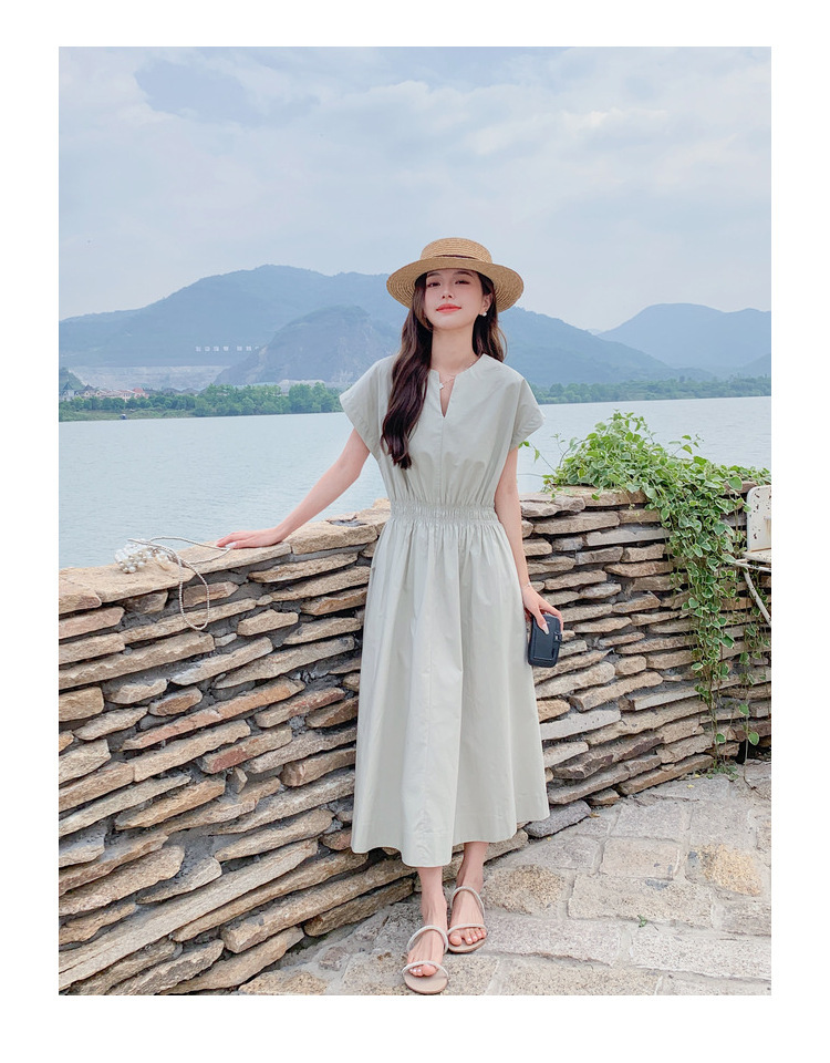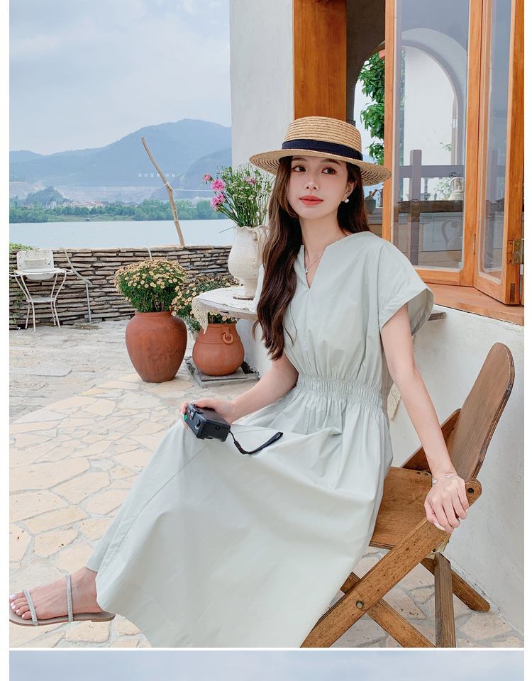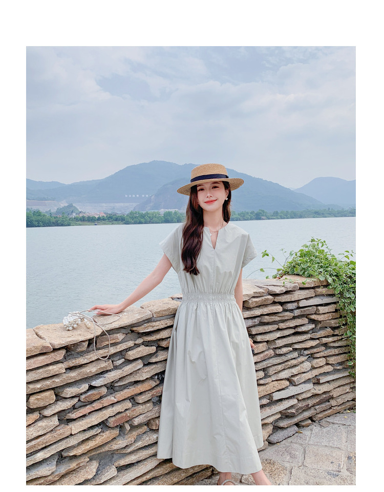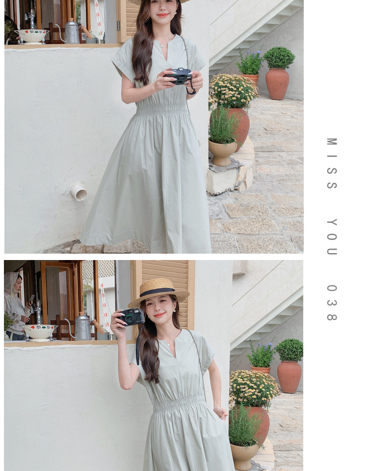 獨家訂製│韓系甜姊兒V領收腰連身裙(08H4433)
