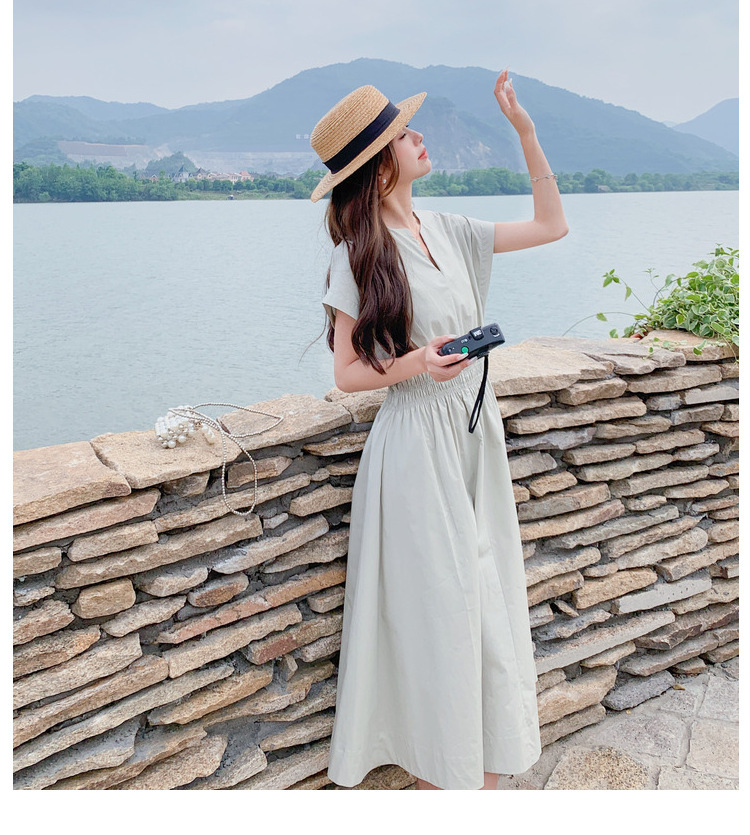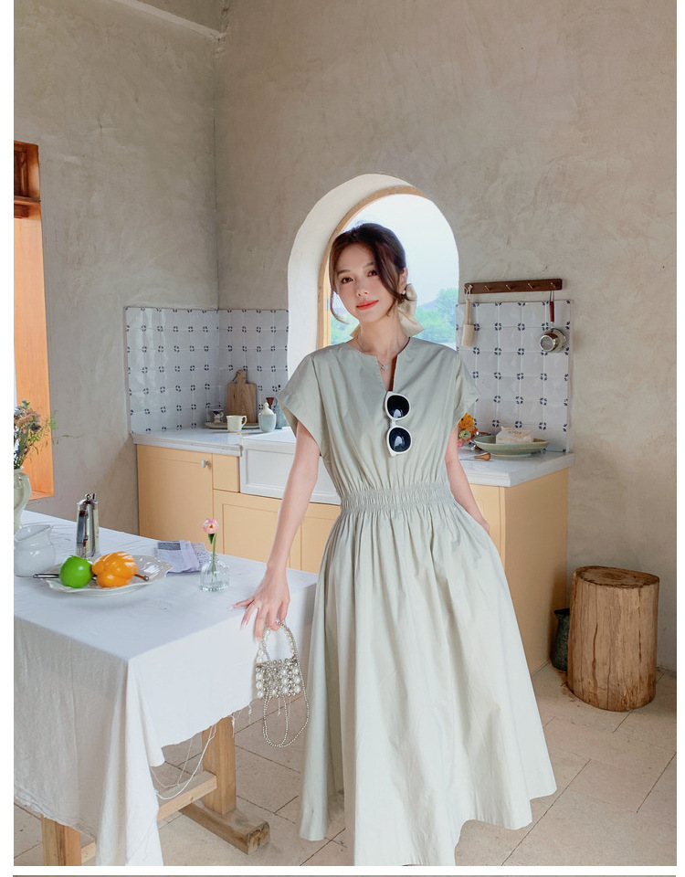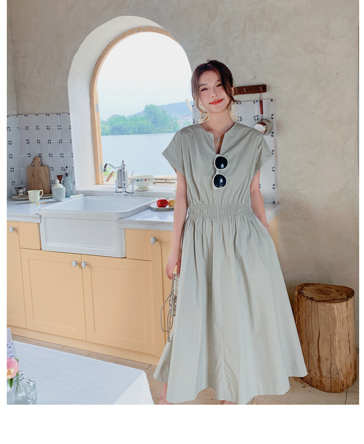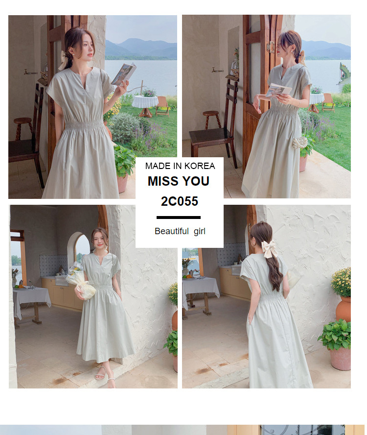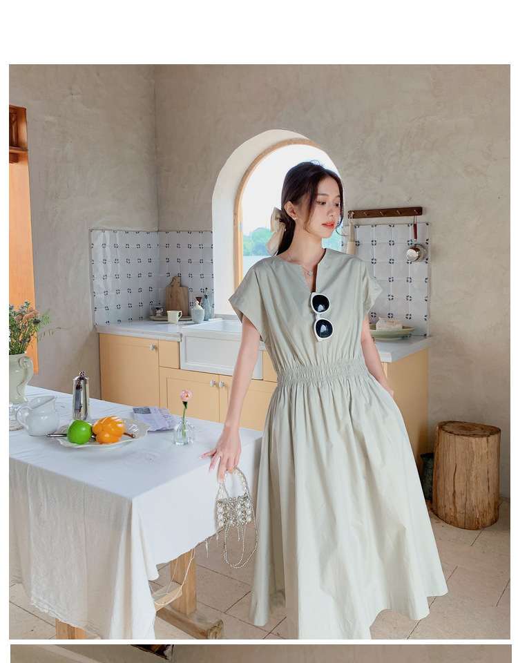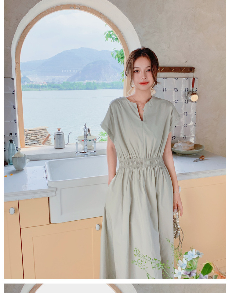 獨家訂製│韓系甜姊兒V領收腰連身裙(08H4433)