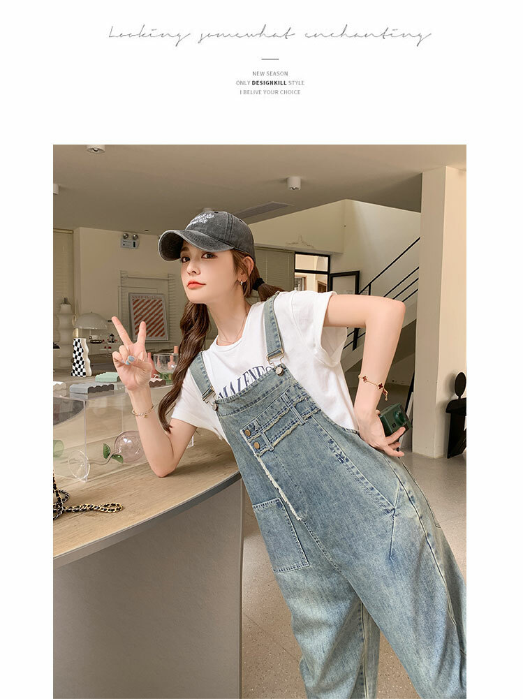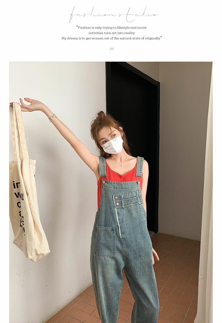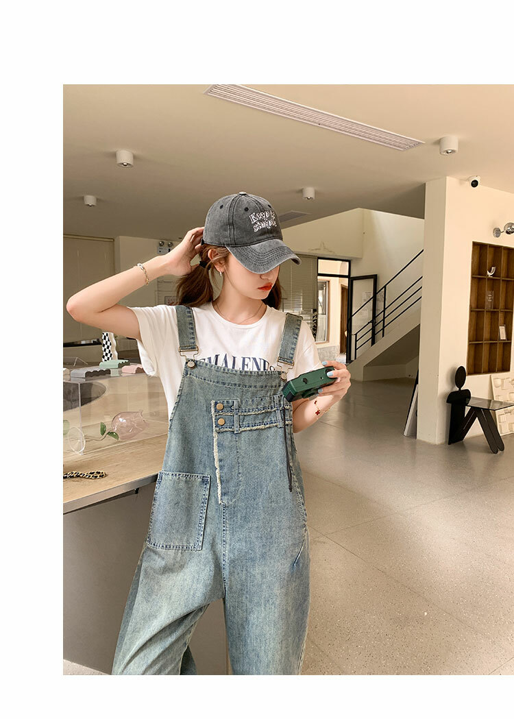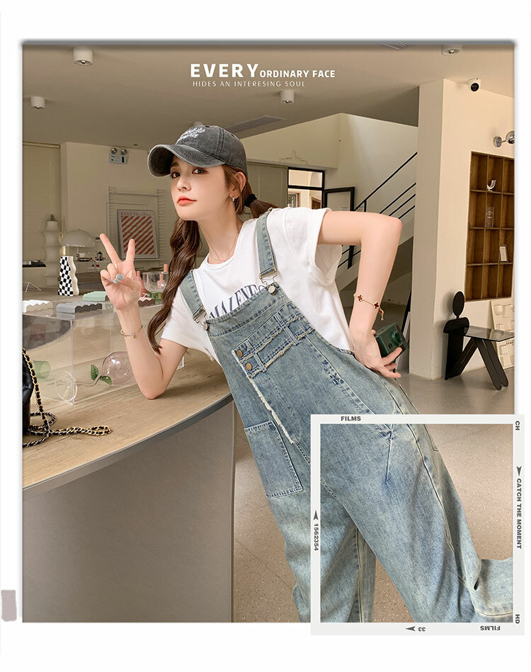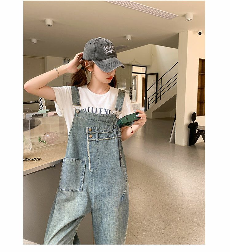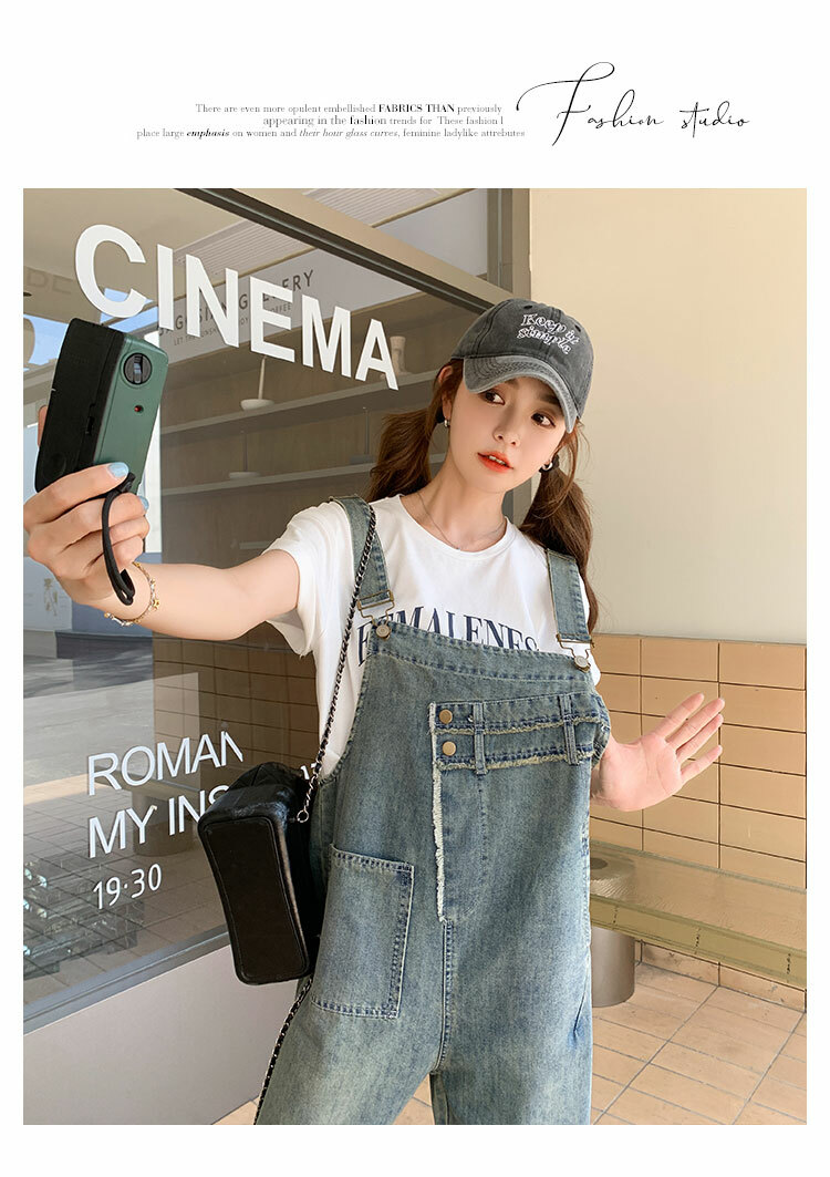 獨家訂製│韓系甜酷風刷毛邊拼接造型牛仔吊帶褲(08H4437)