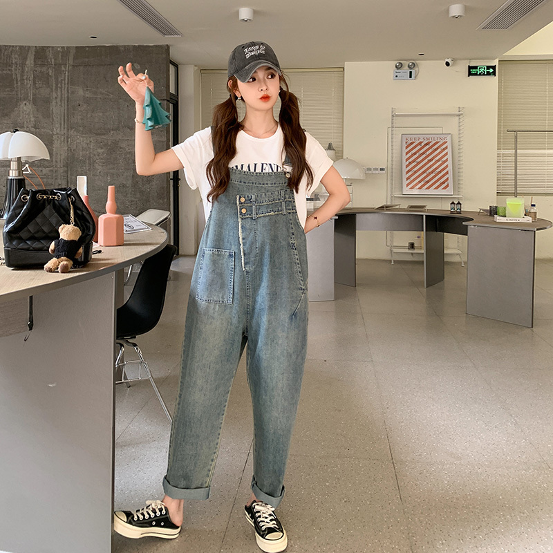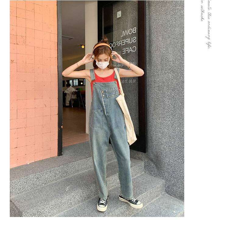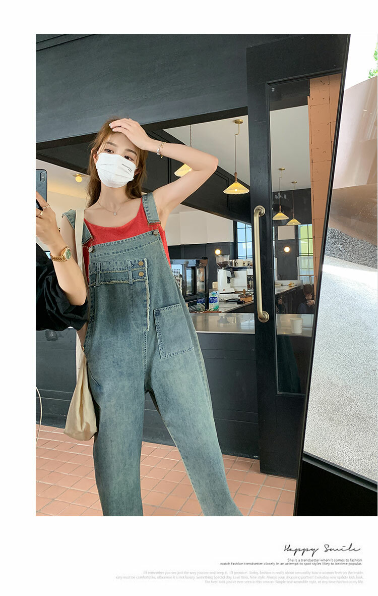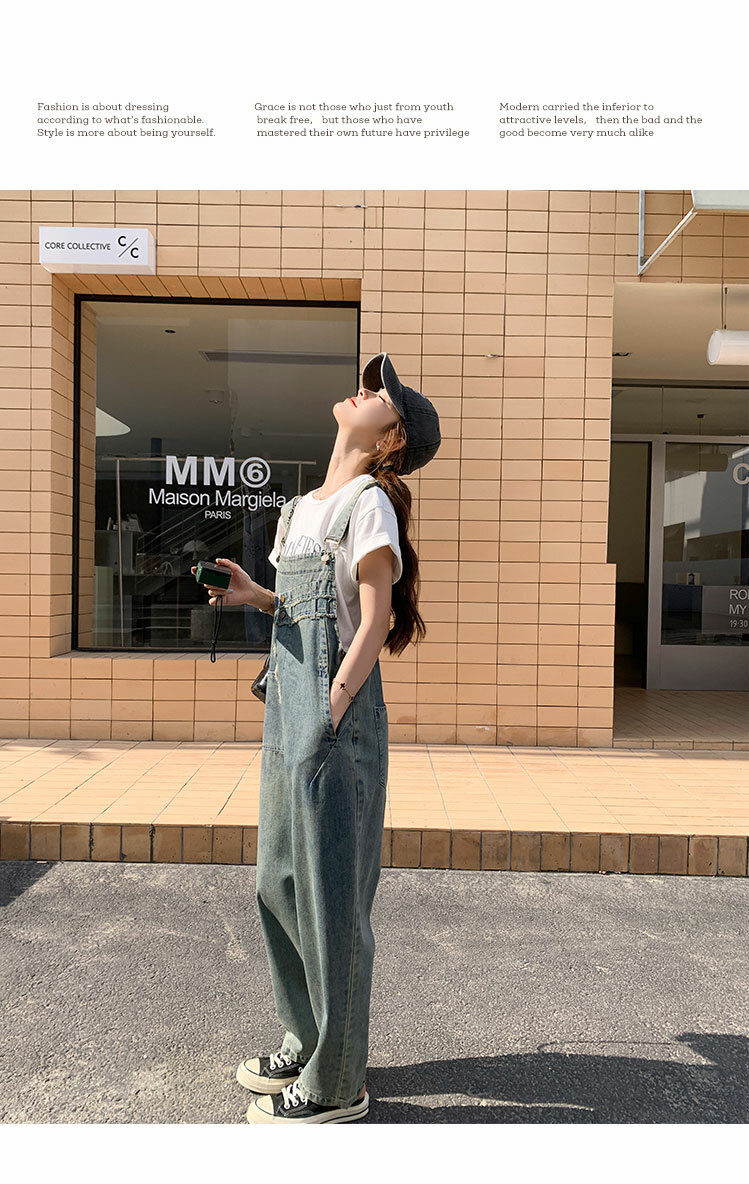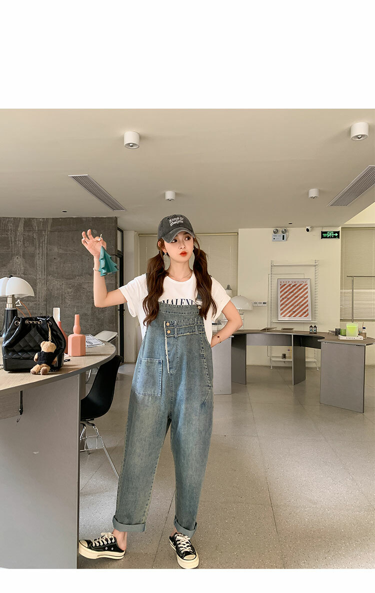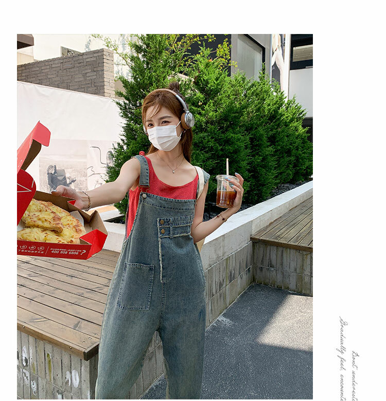 獨家訂製│韓系甜酷風刷毛邊拼接造型牛仔吊帶褲(08H4437)
