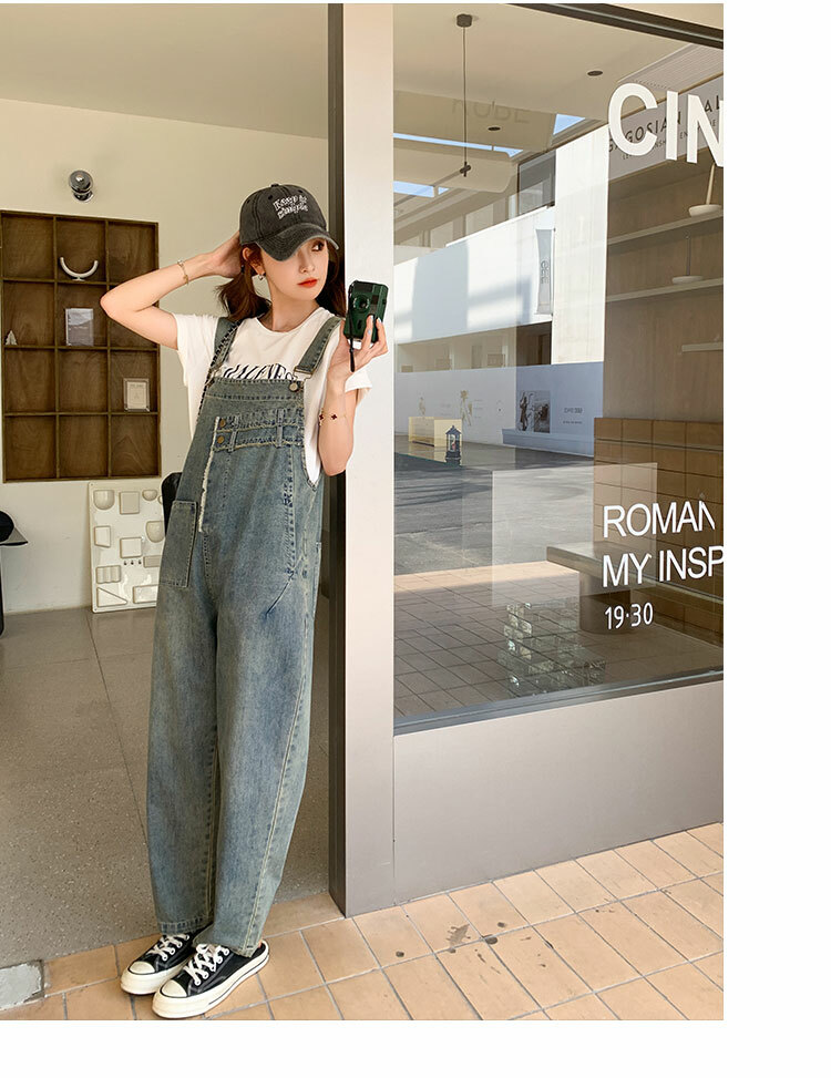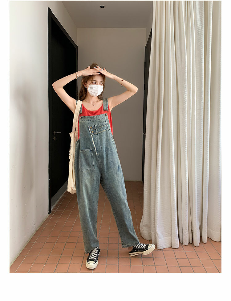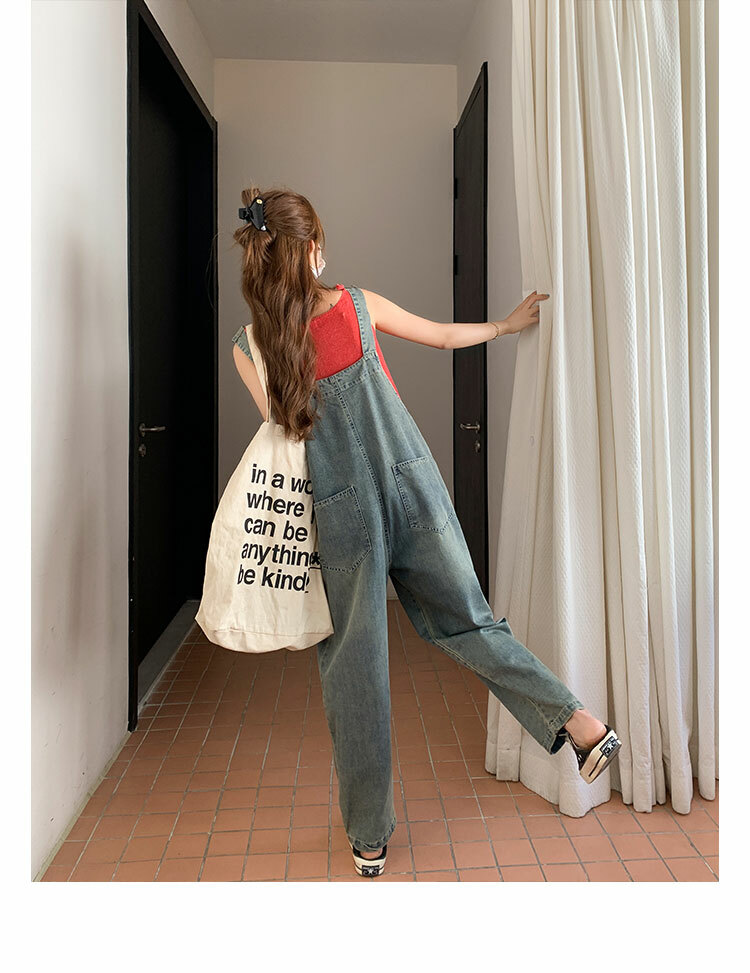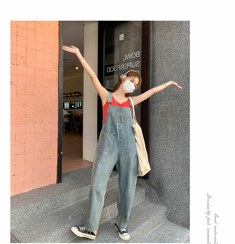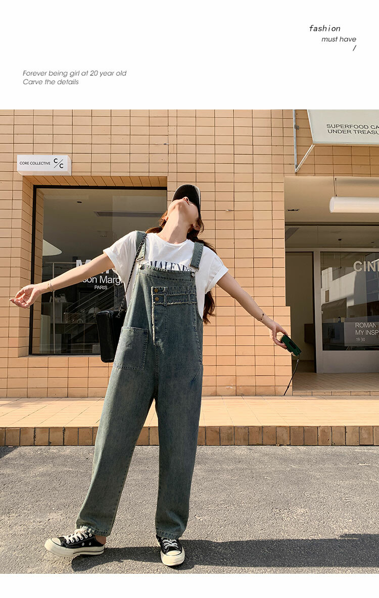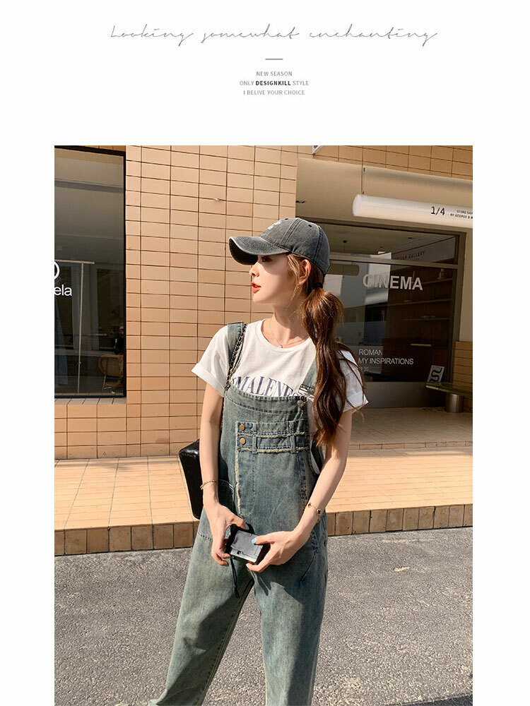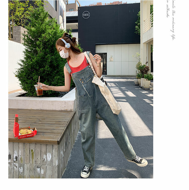 獨家訂製│韓系甜酷風刷毛邊拼接造型牛仔吊帶褲(08H4437)