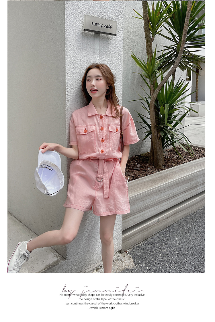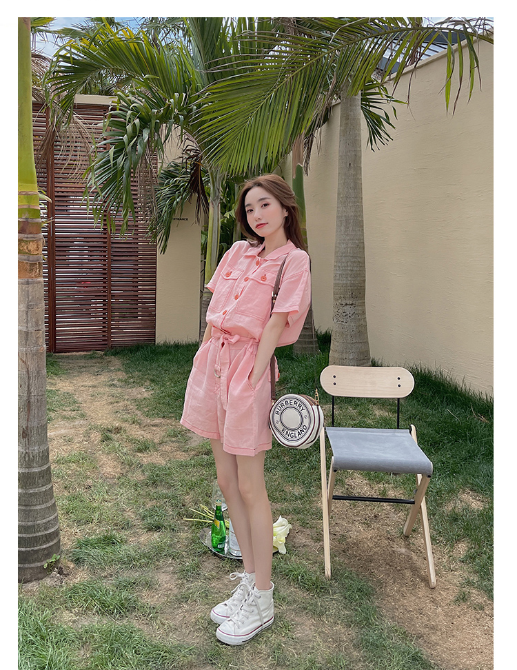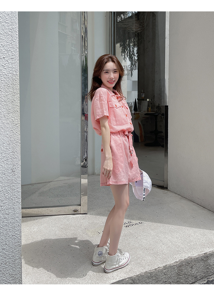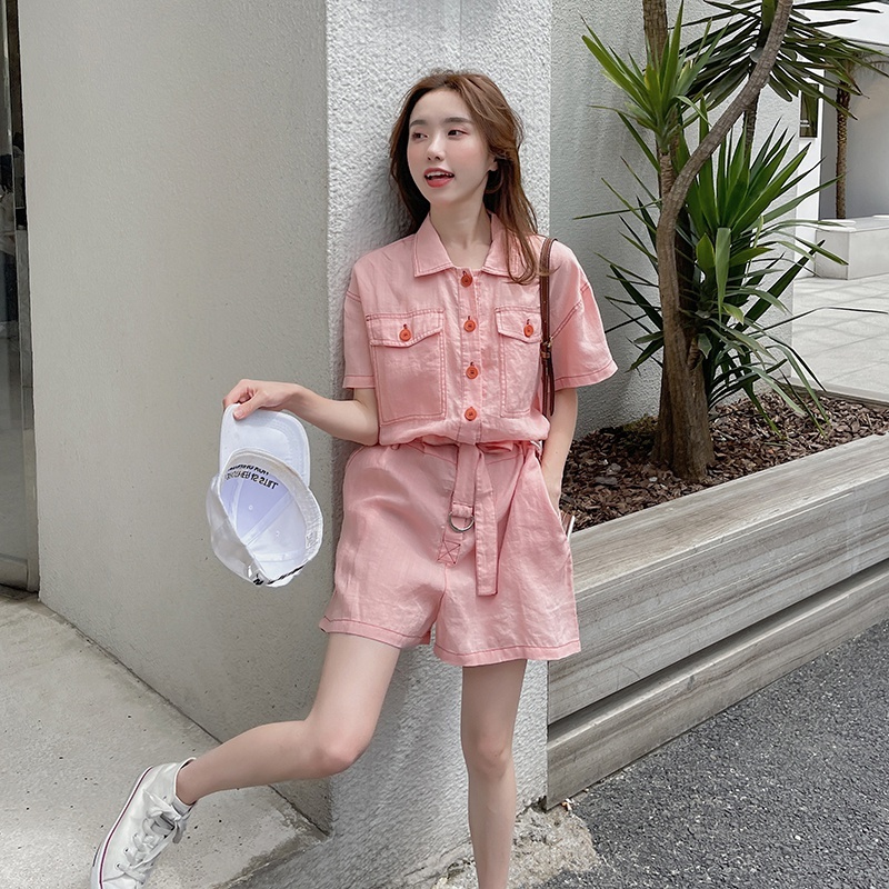 獨家訂製│韓系甜姊兒繫帶工裝連身褲(08H4453)