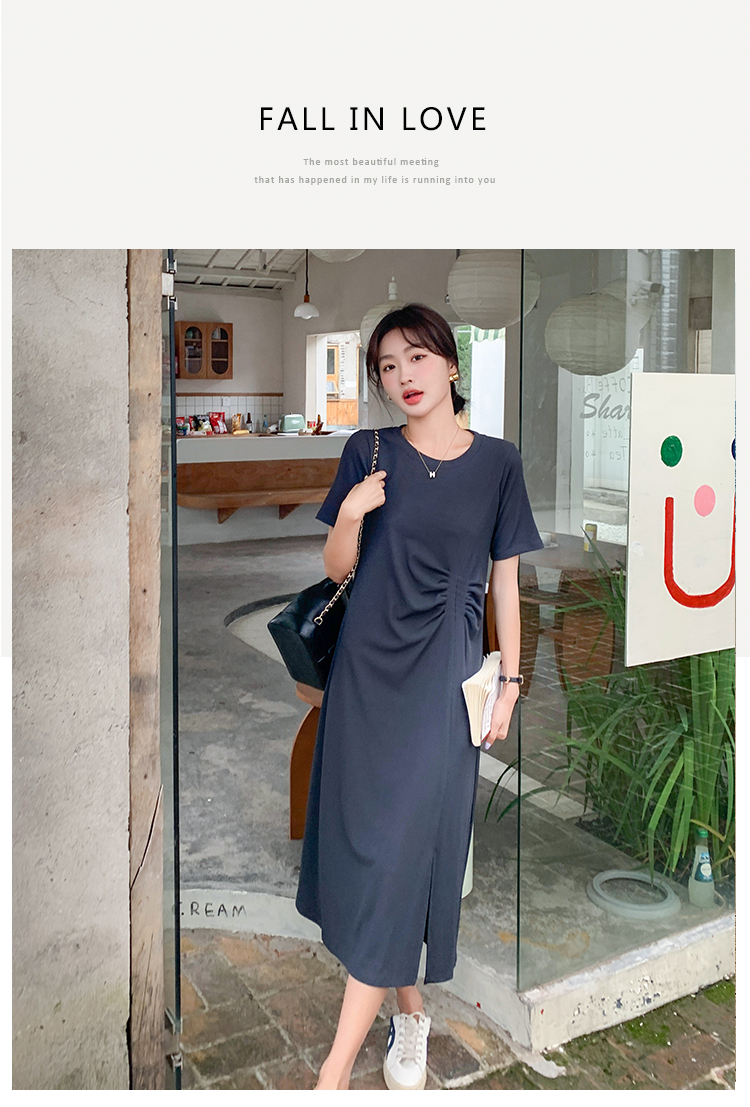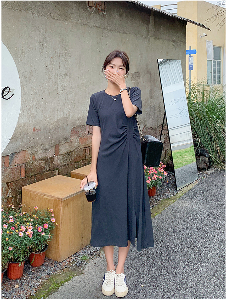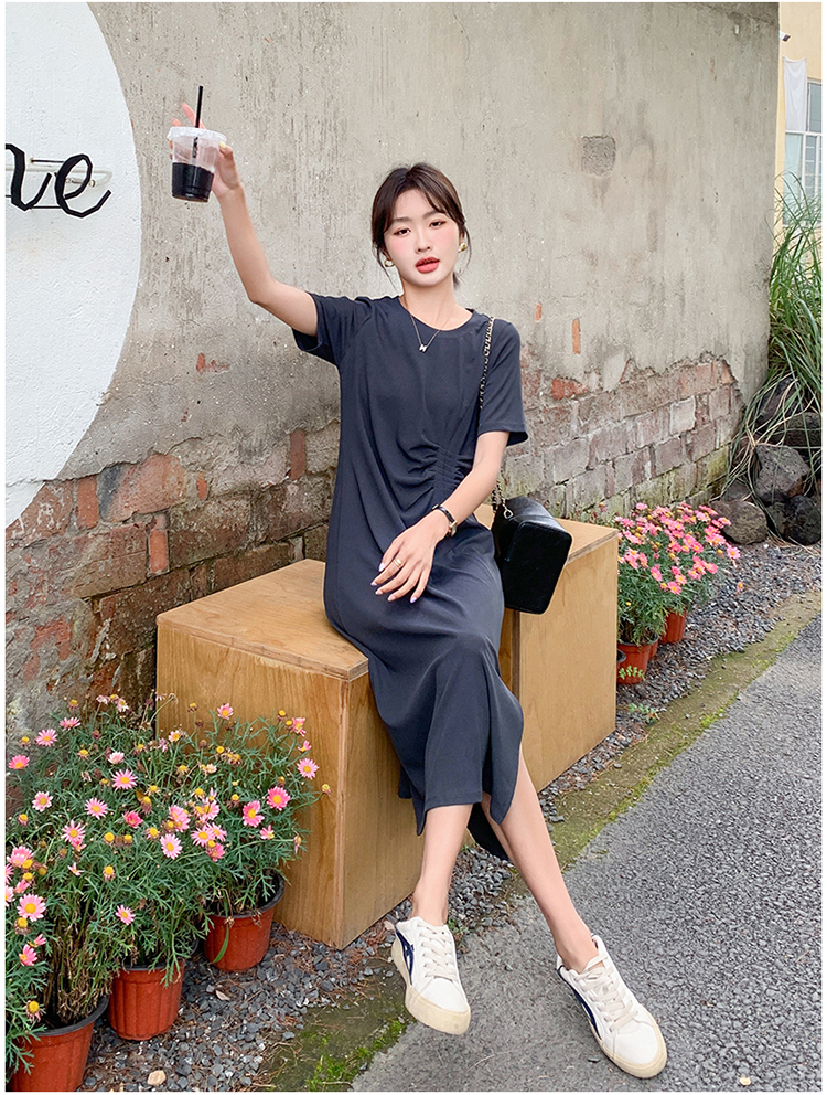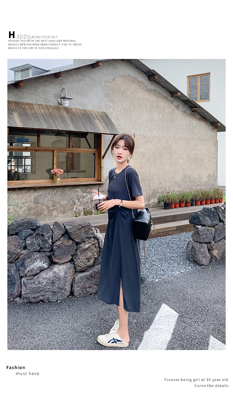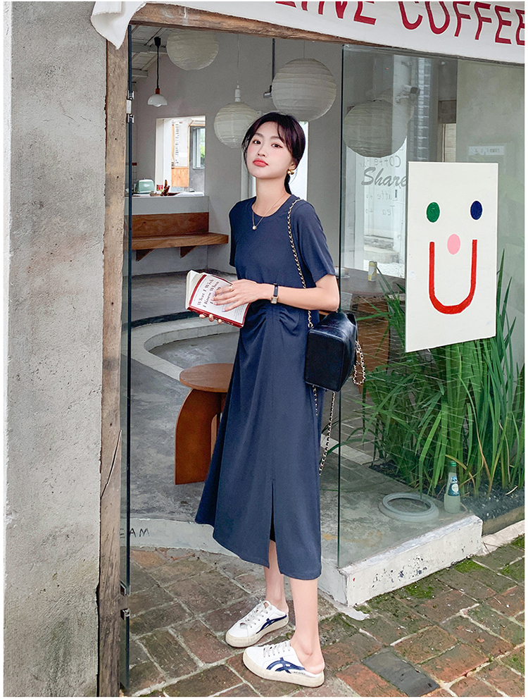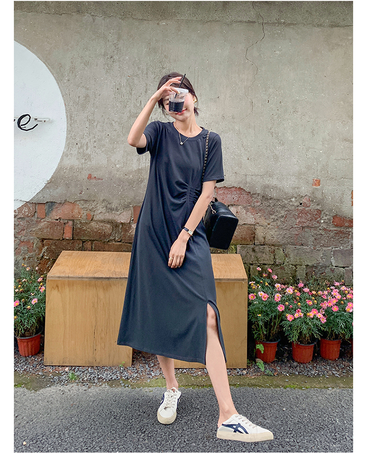 獨家訂製│韓系簡約舒適感純棉開叉抓褶漣衣裙(08H4459)