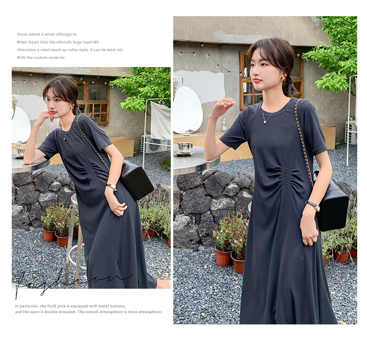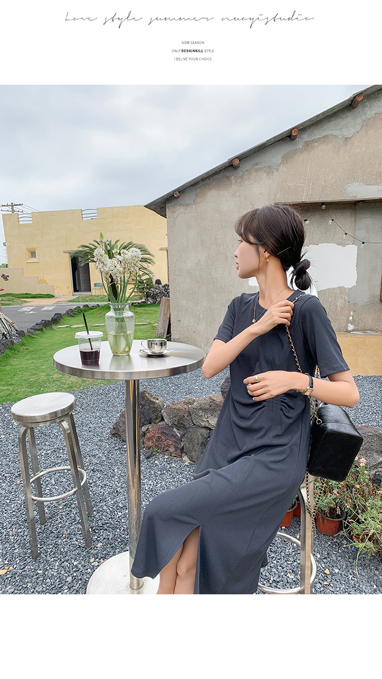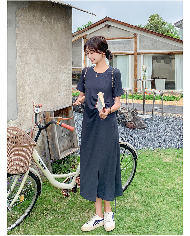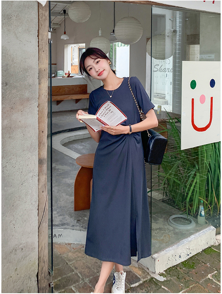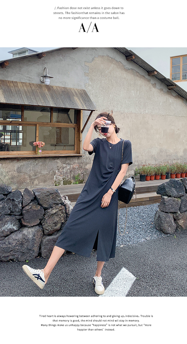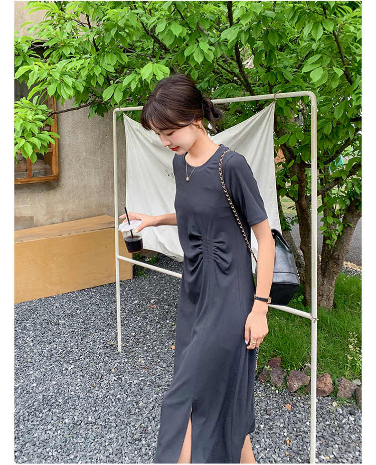 獨家訂製│韓系簡約舒適感純棉開叉抓褶漣衣裙(08H4459)