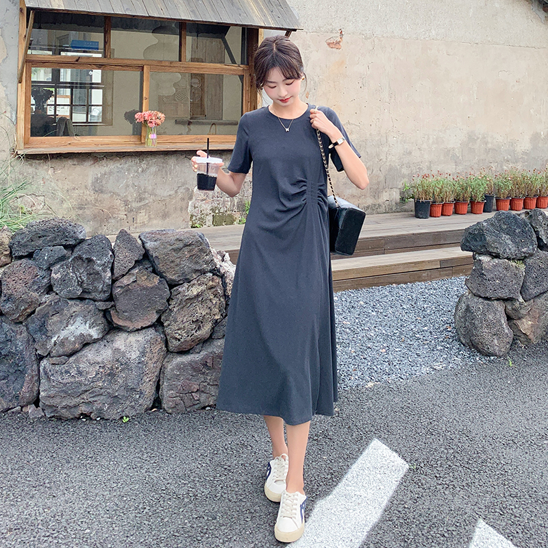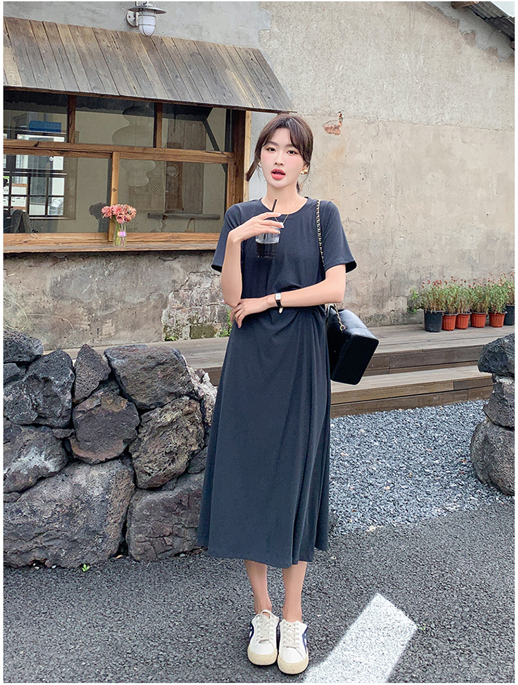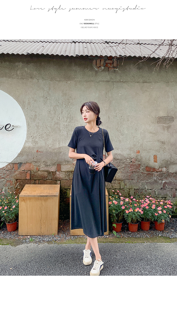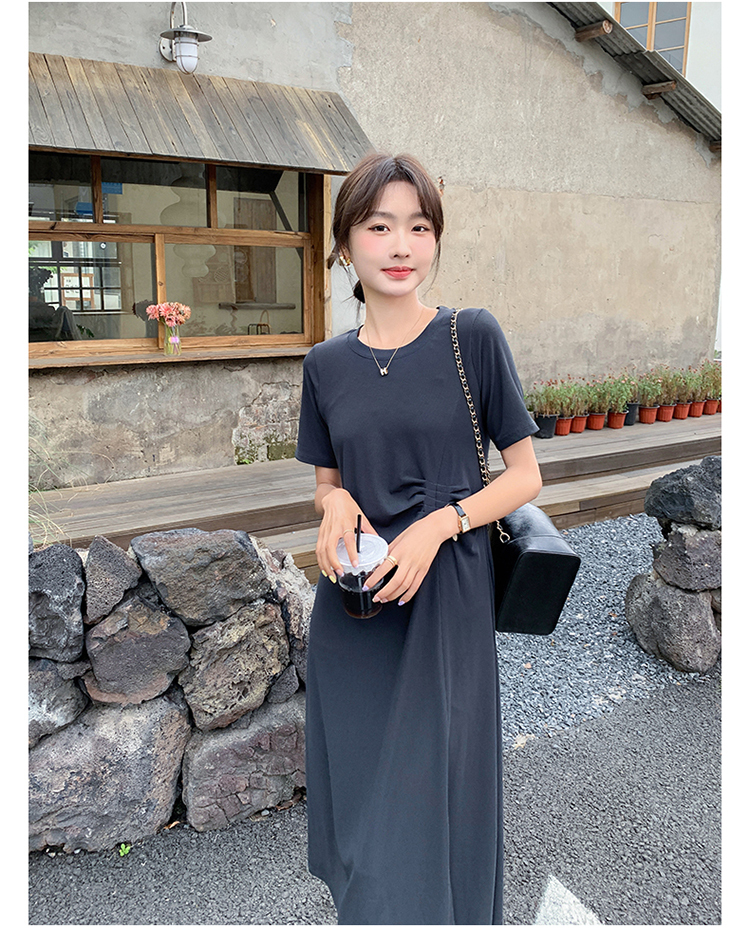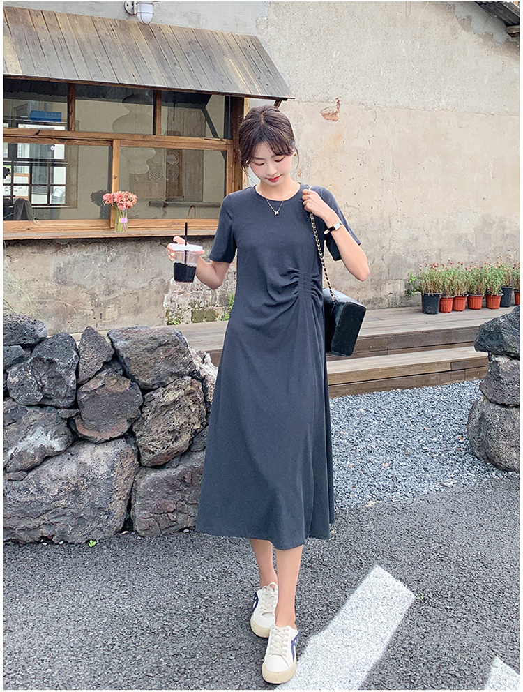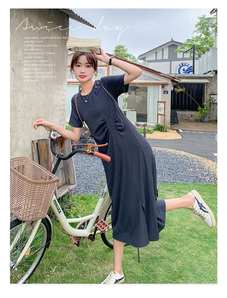 獨家訂製│韓系簡約舒適感純棉開叉抓褶漣衣裙(08H4459)