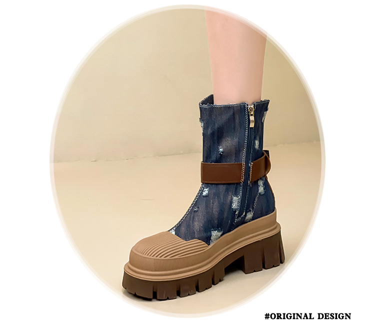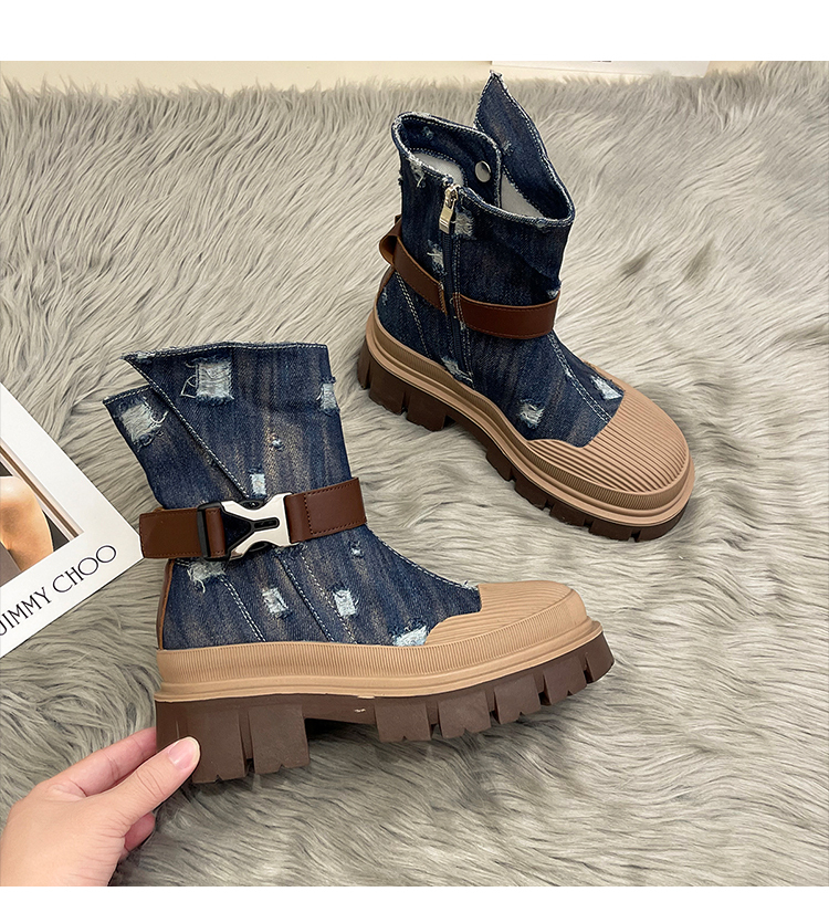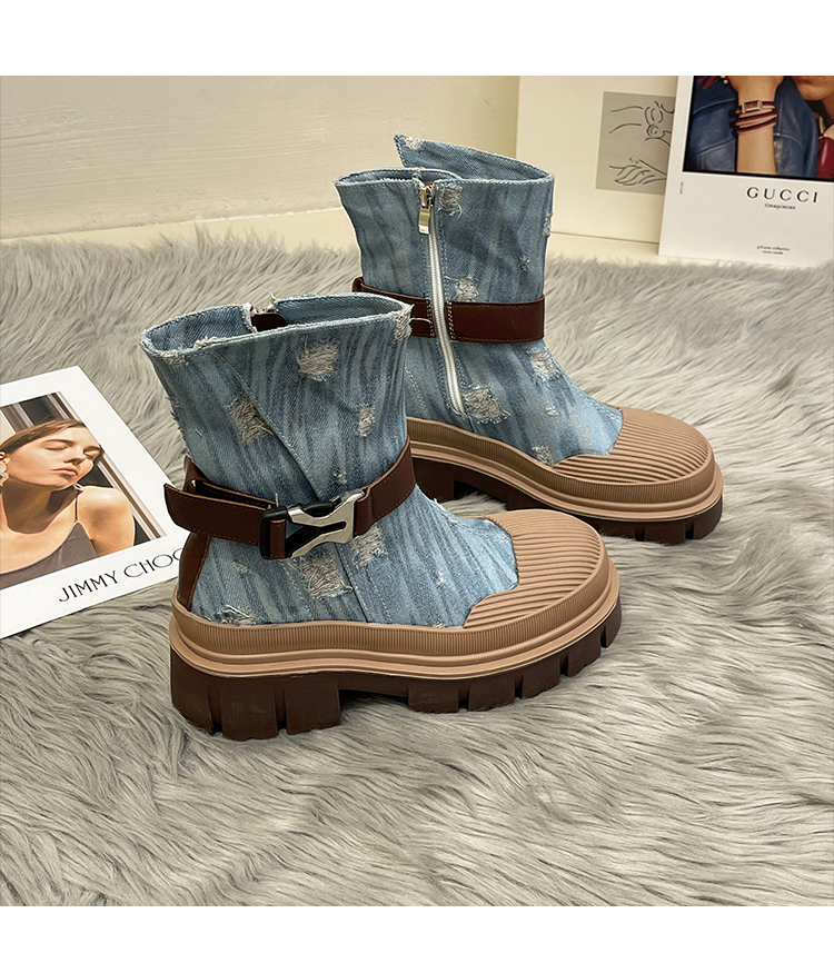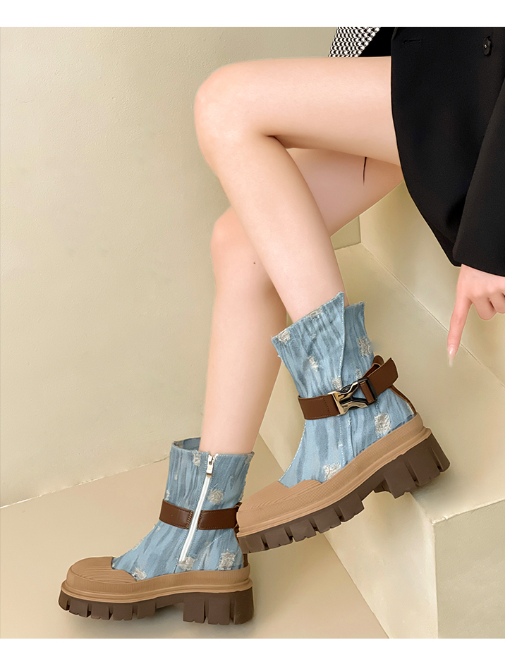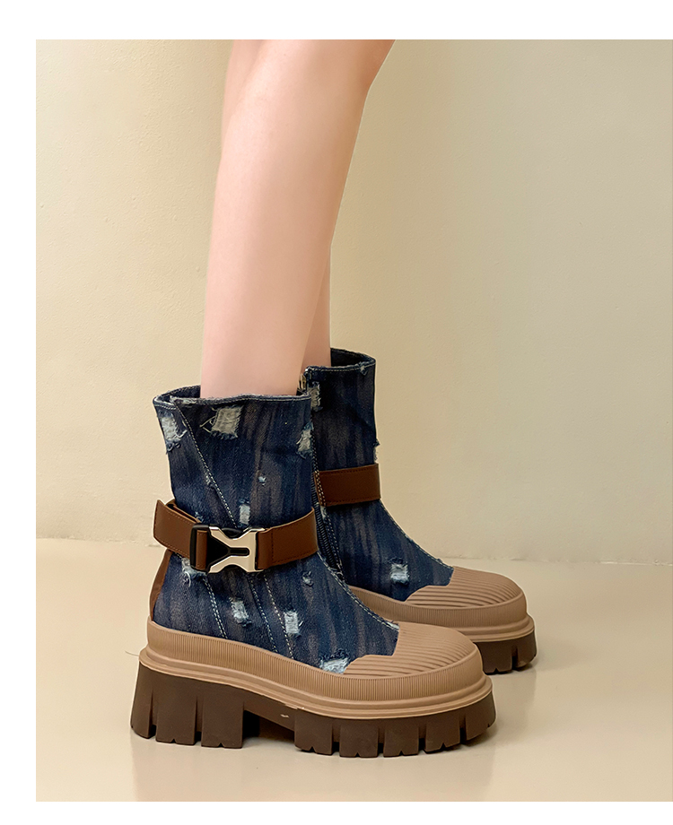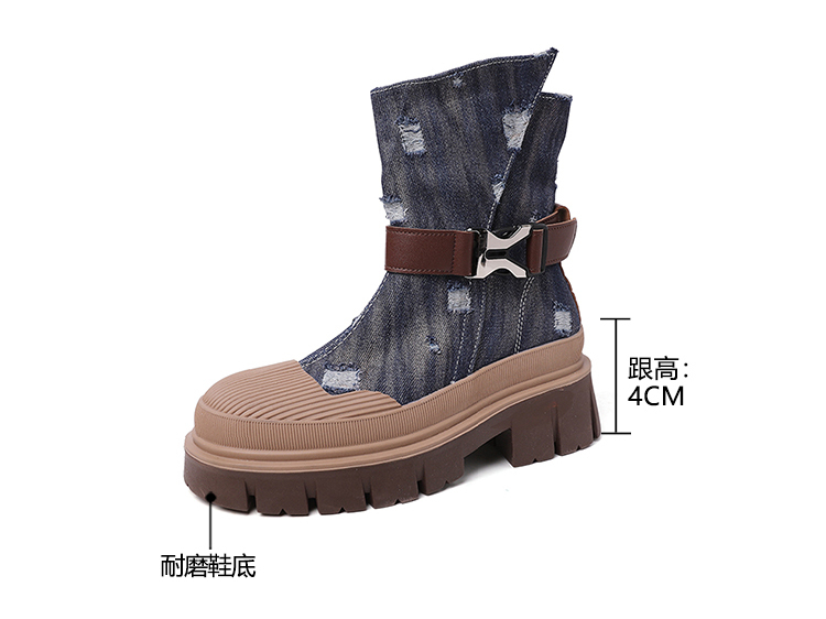 率性側扣拉鍊騎士刷破造型牛仔靴-3色(08H4507)