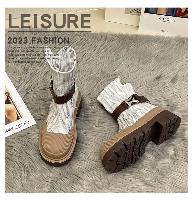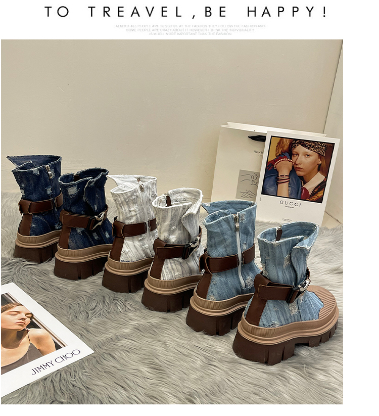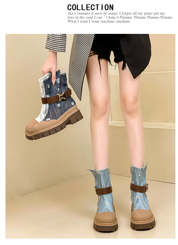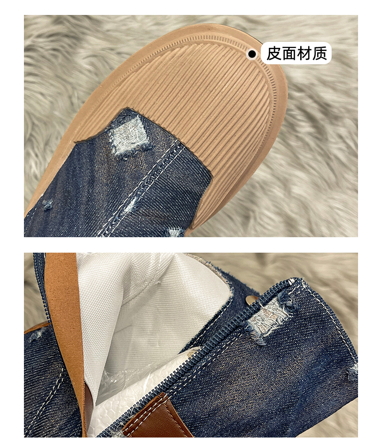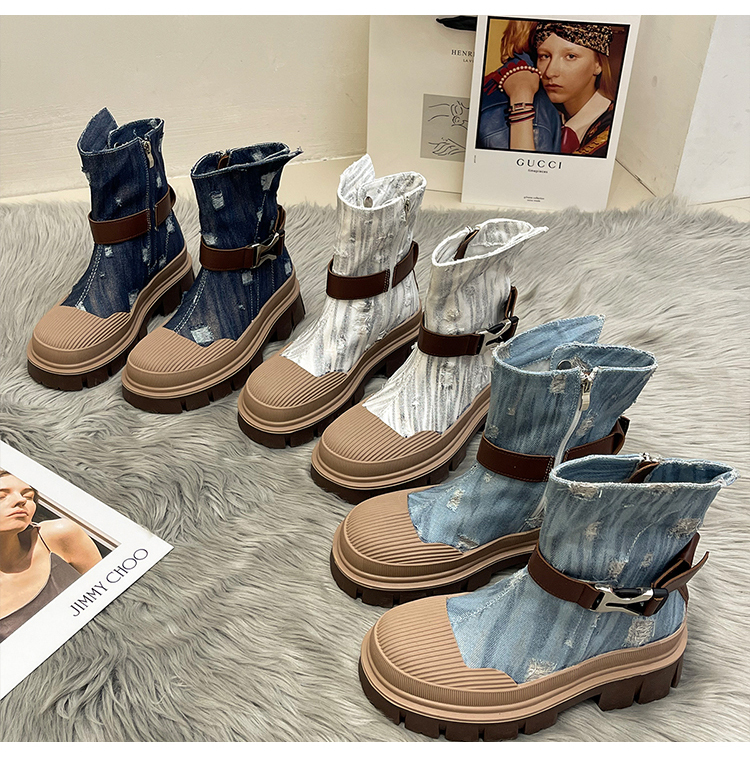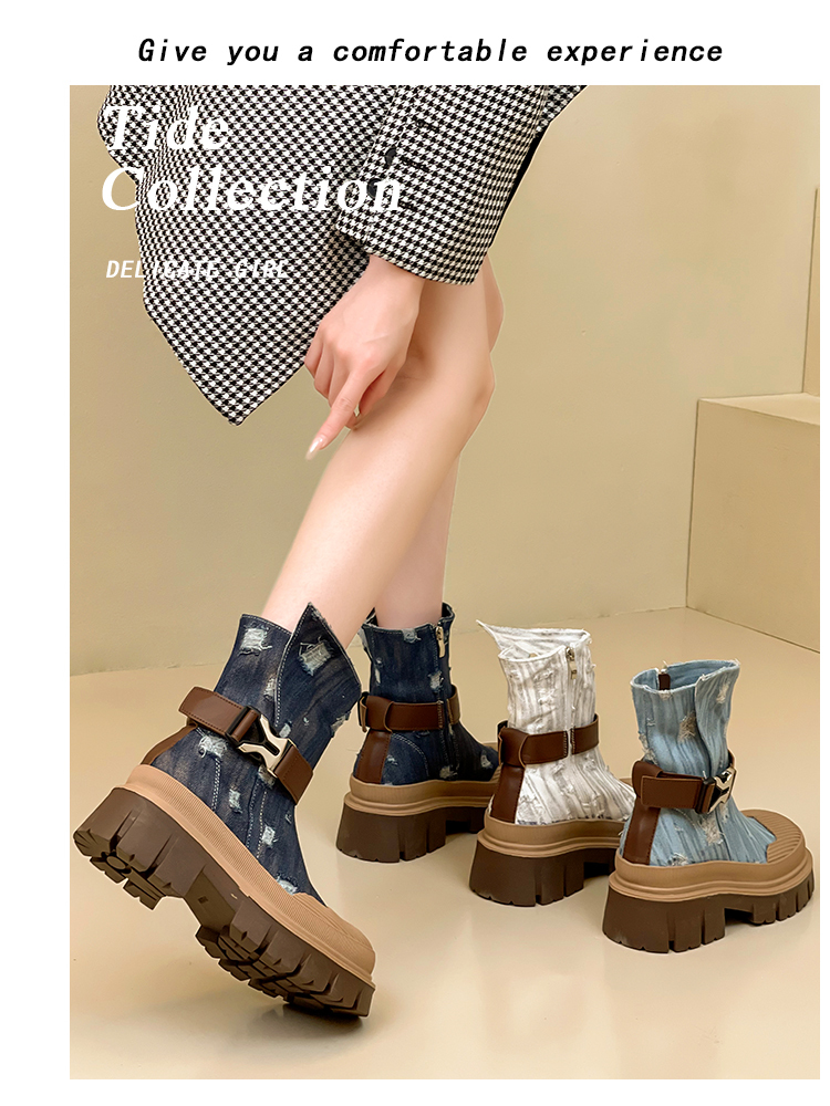 率性側扣拉鍊騎士刷破造型牛仔靴-3色(08H4507)