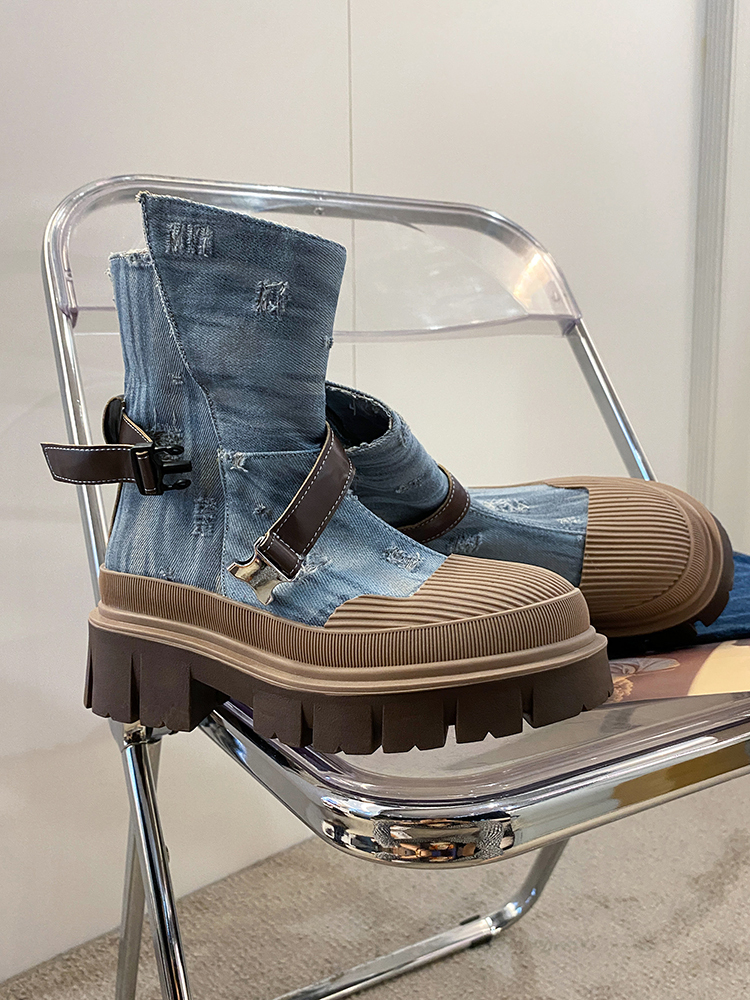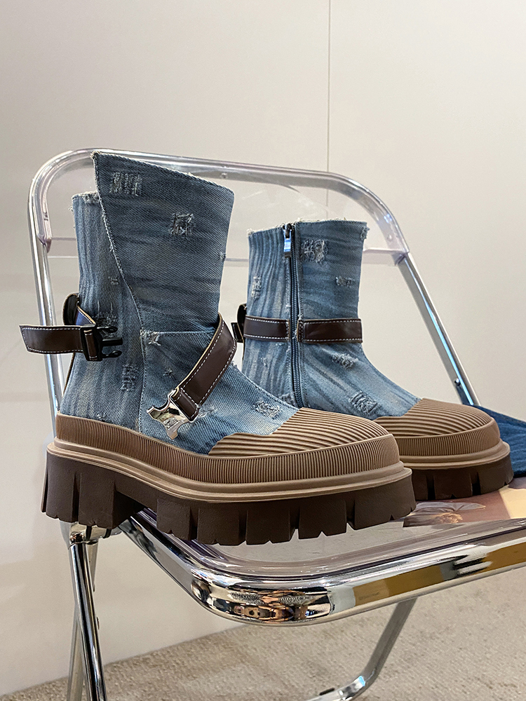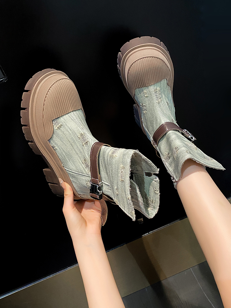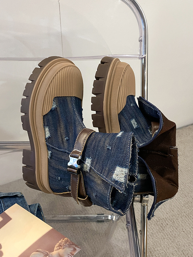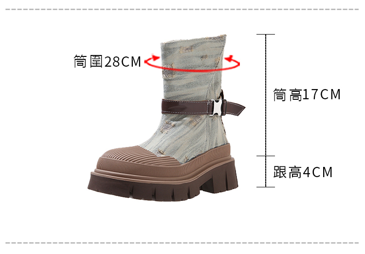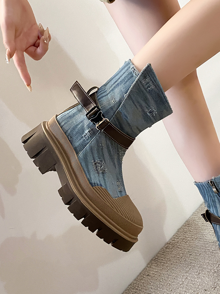 率性側扣拉鍊騎士刷破造型牛仔靴-3色(08H4508)