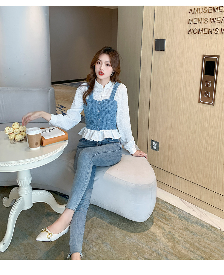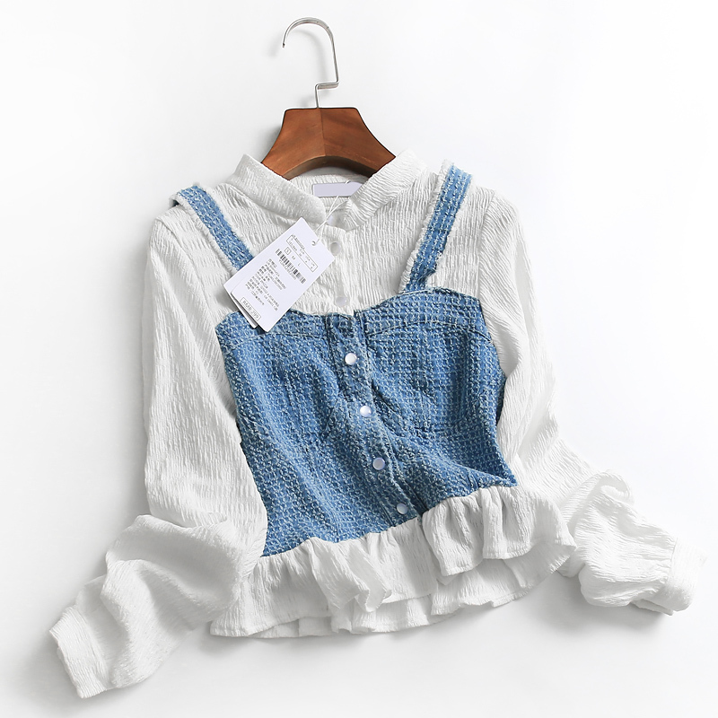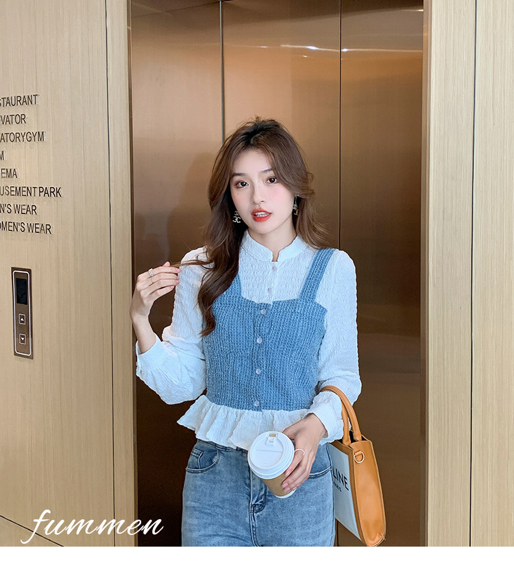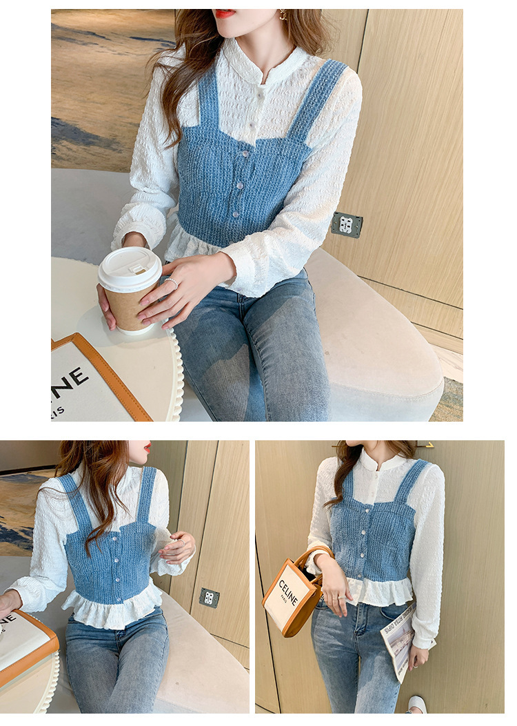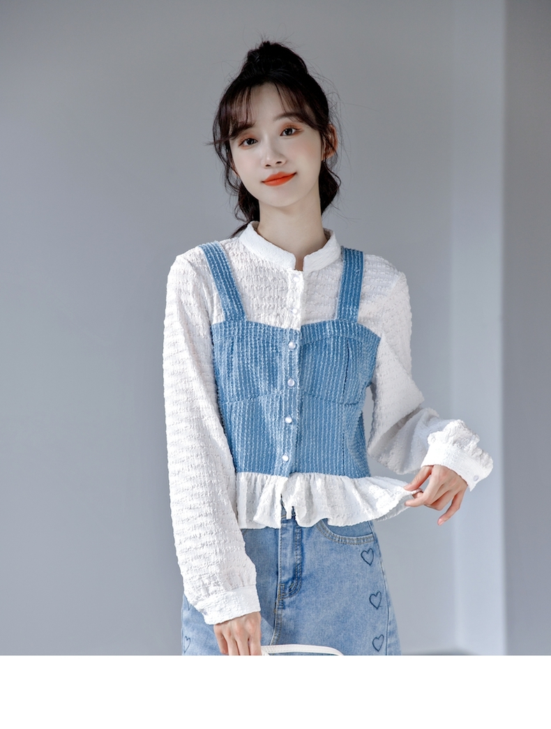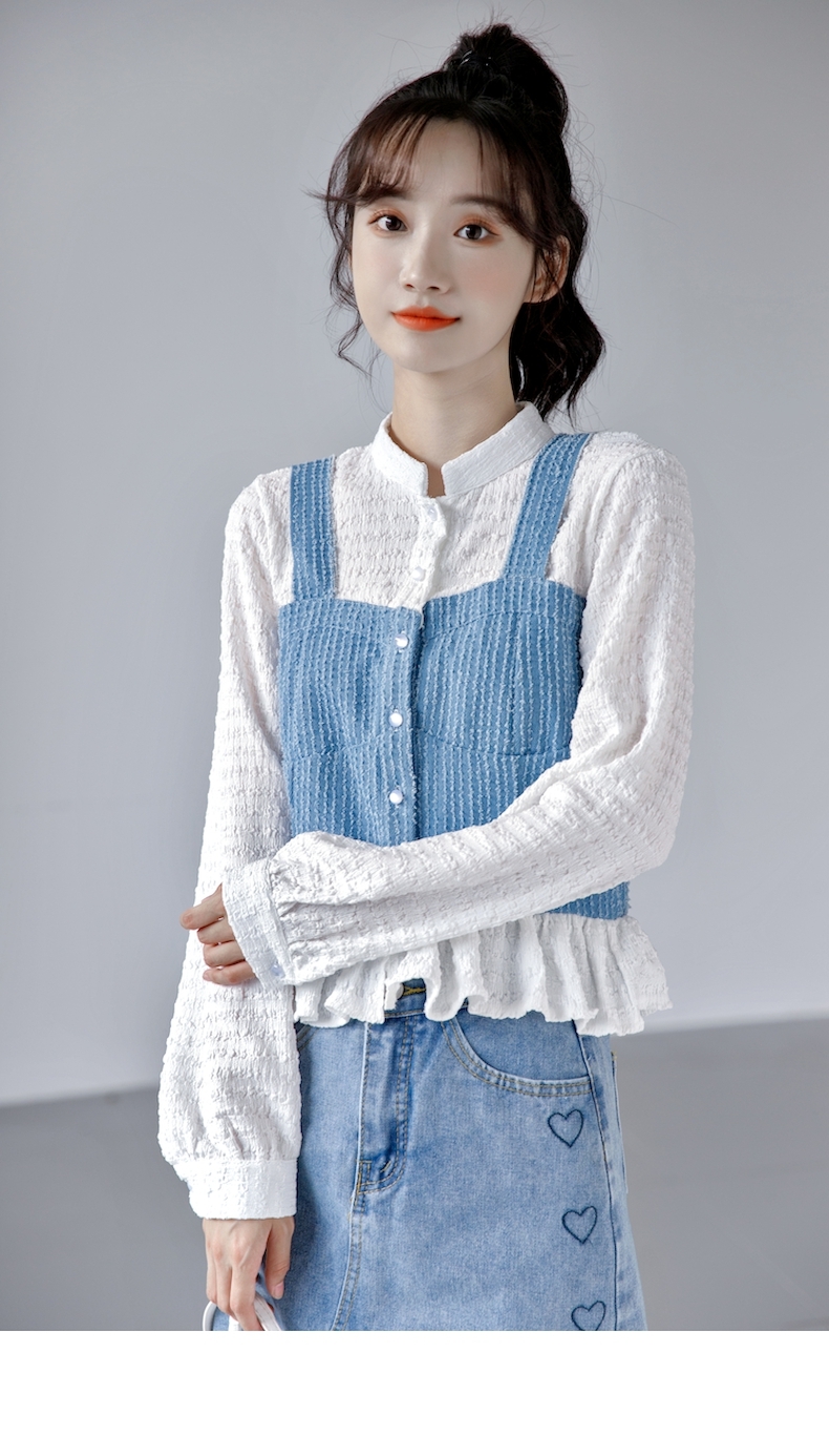 限量特惠|氣質甜美拼接撞色吊帶假兩件式襯衫(09DF236)