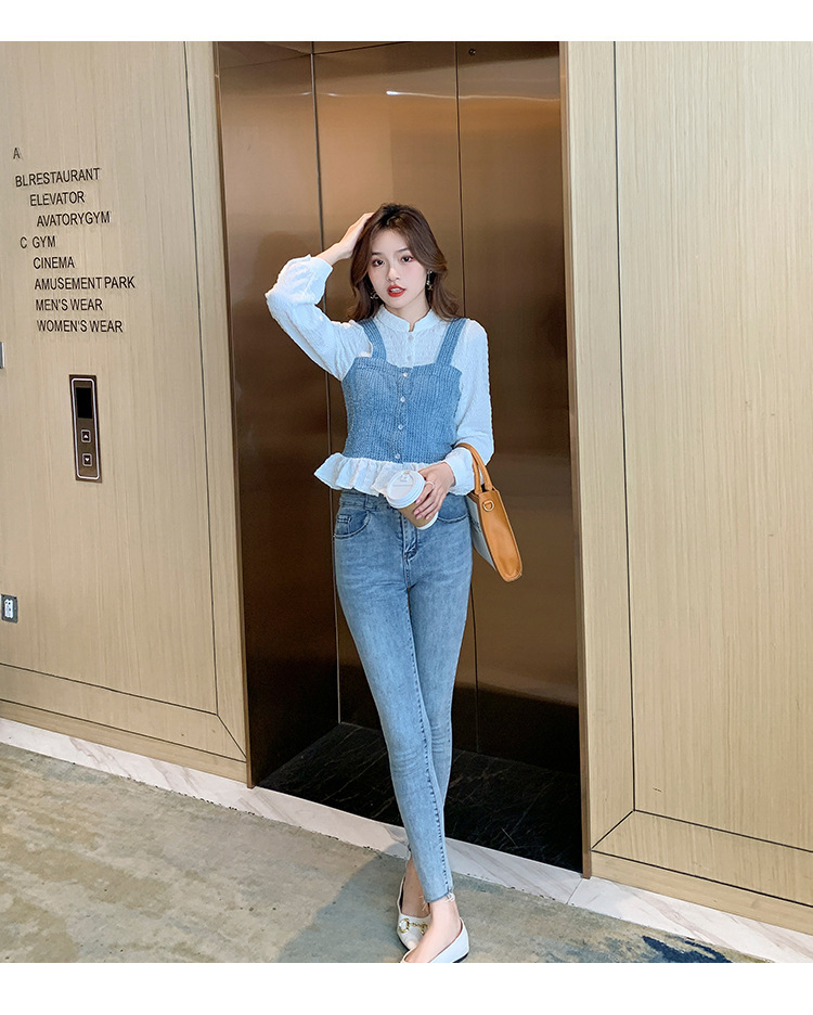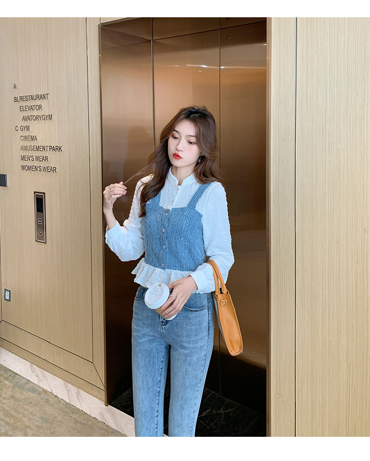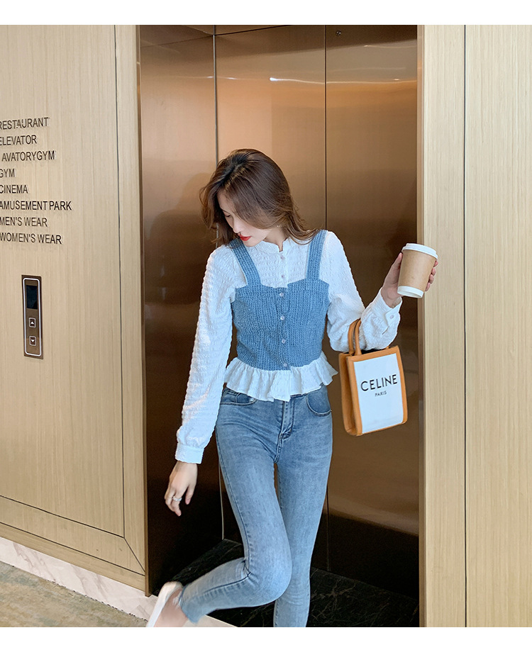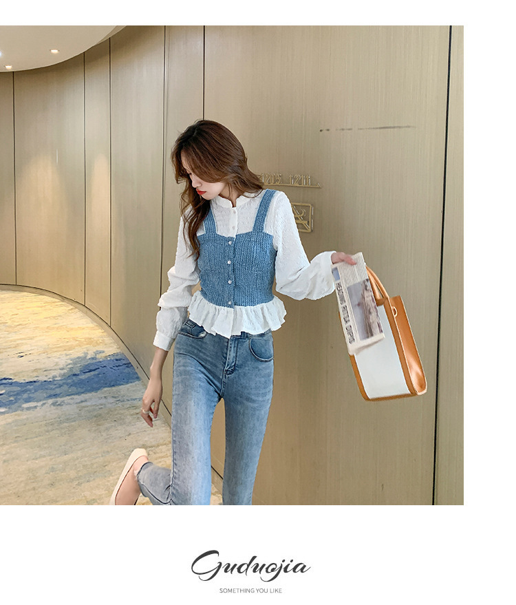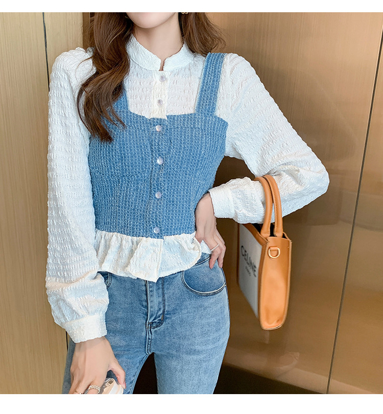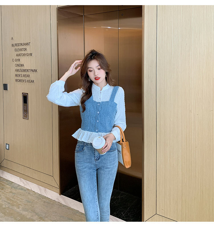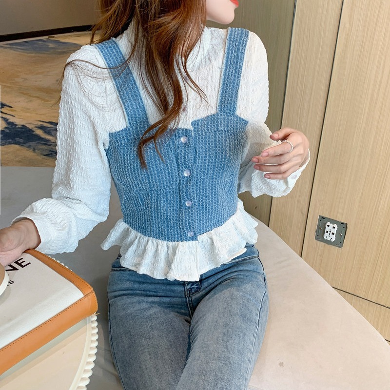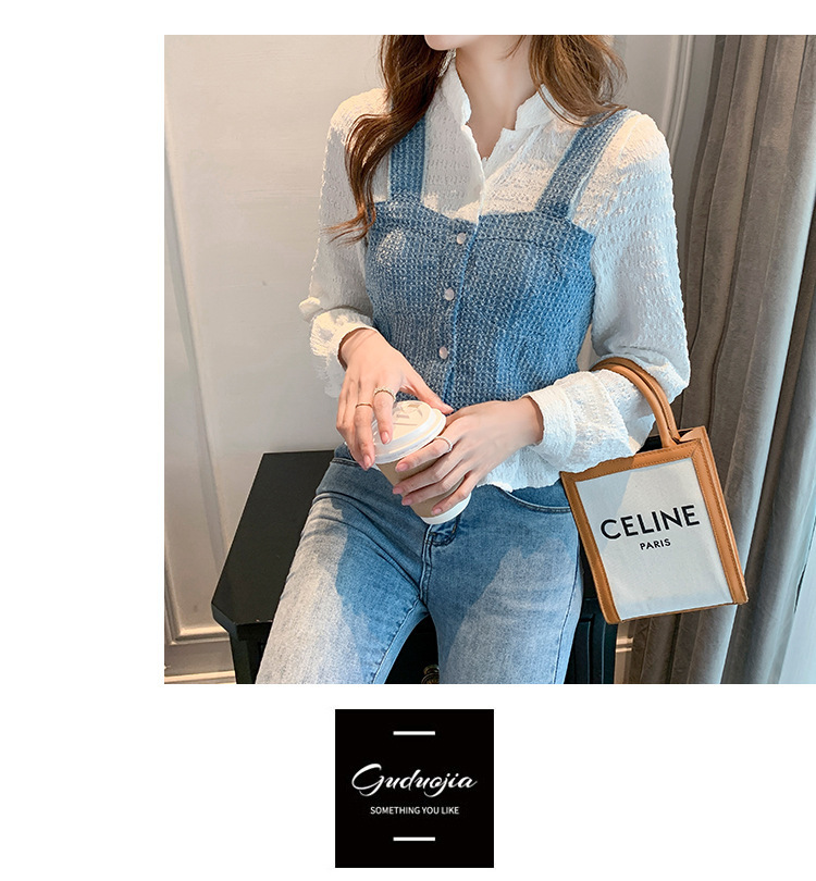 限量特惠|氣質甜美拼接撞色吊帶假兩件式襯衫(09DF236)