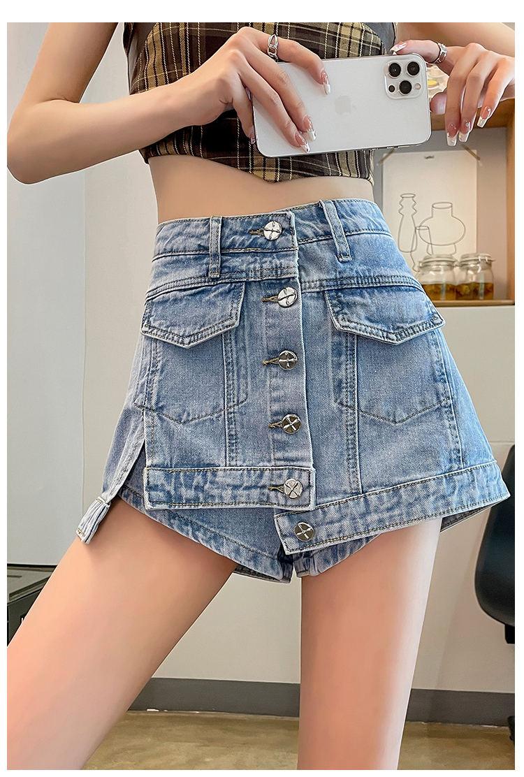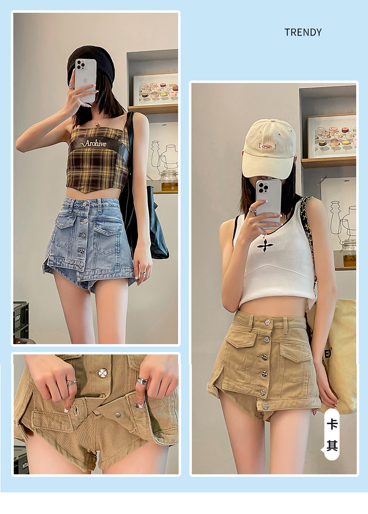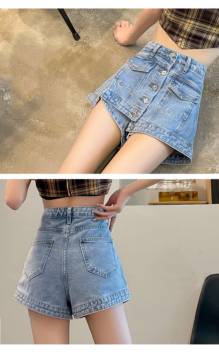 限量特惠|率性百搭拼接不規則造型假兩件式牛仔褲-2色(09H1506)