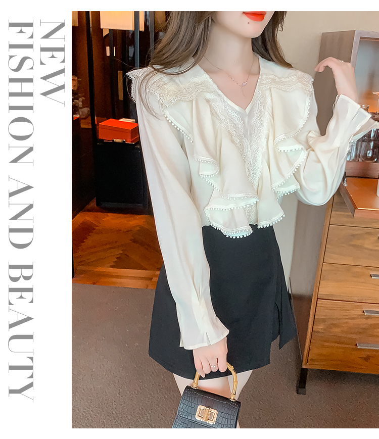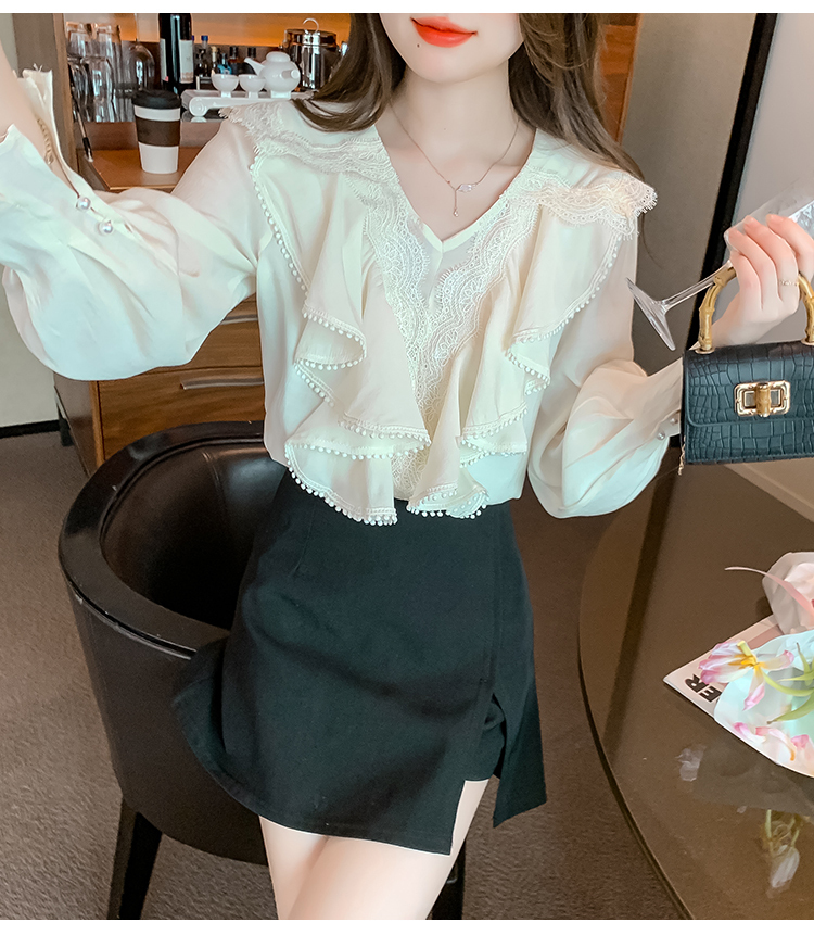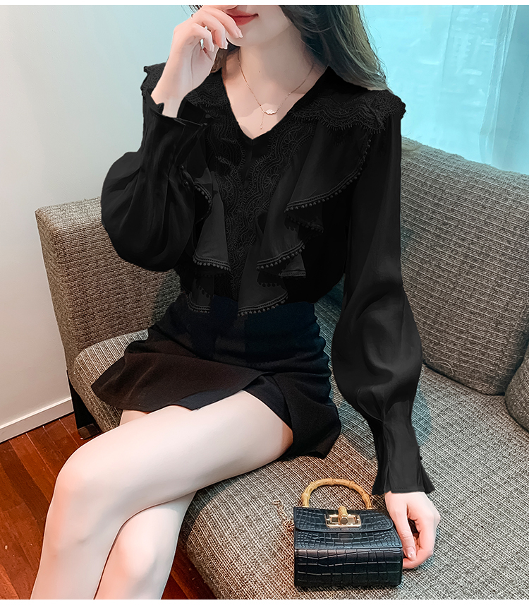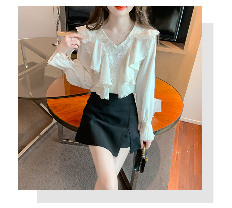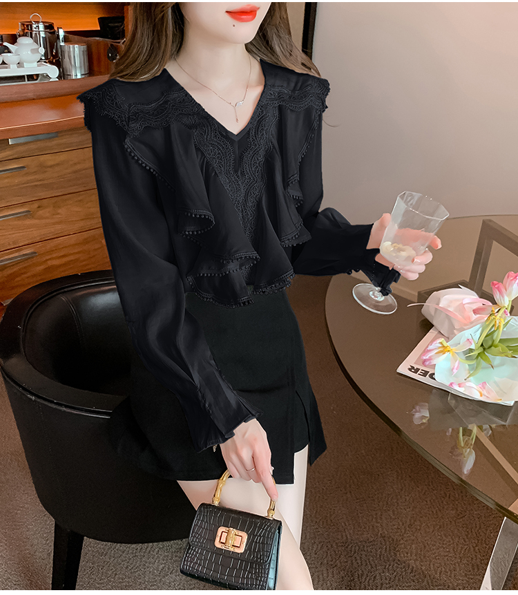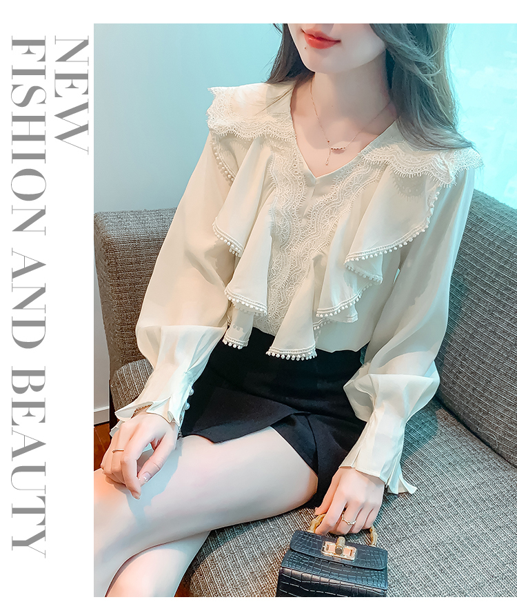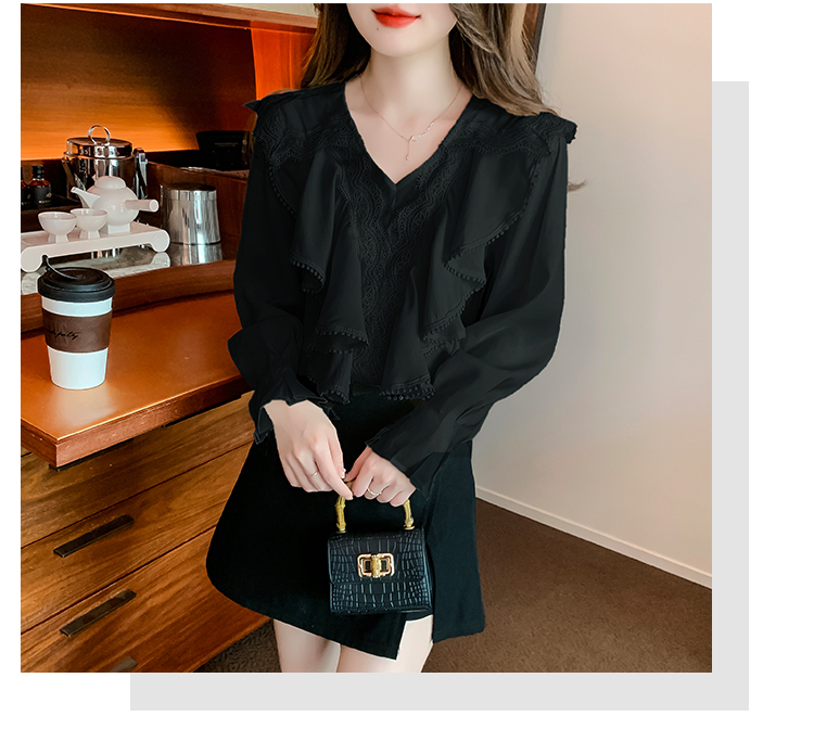 限量特惠|知性氣質荷葉邊拼接蕾絲雪紡衫-2色(09H4527)
